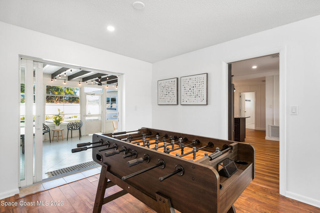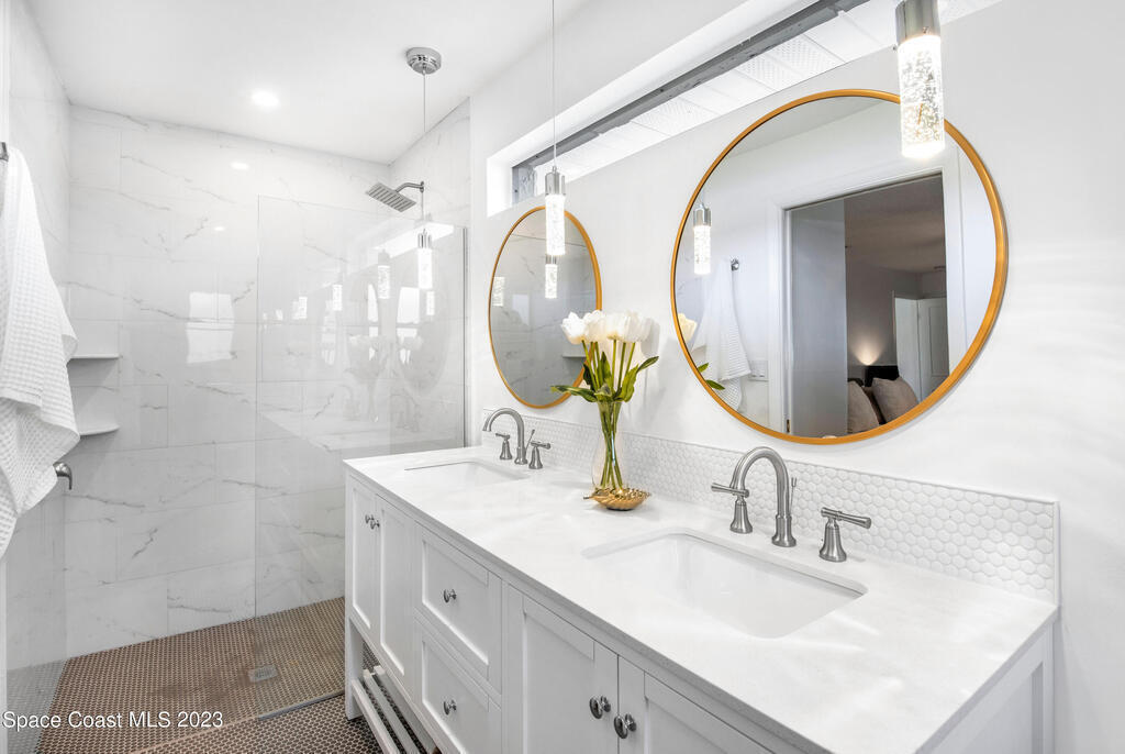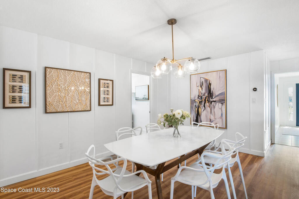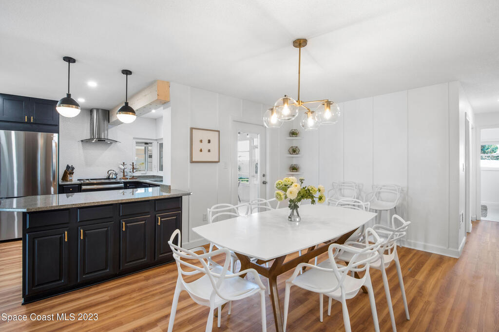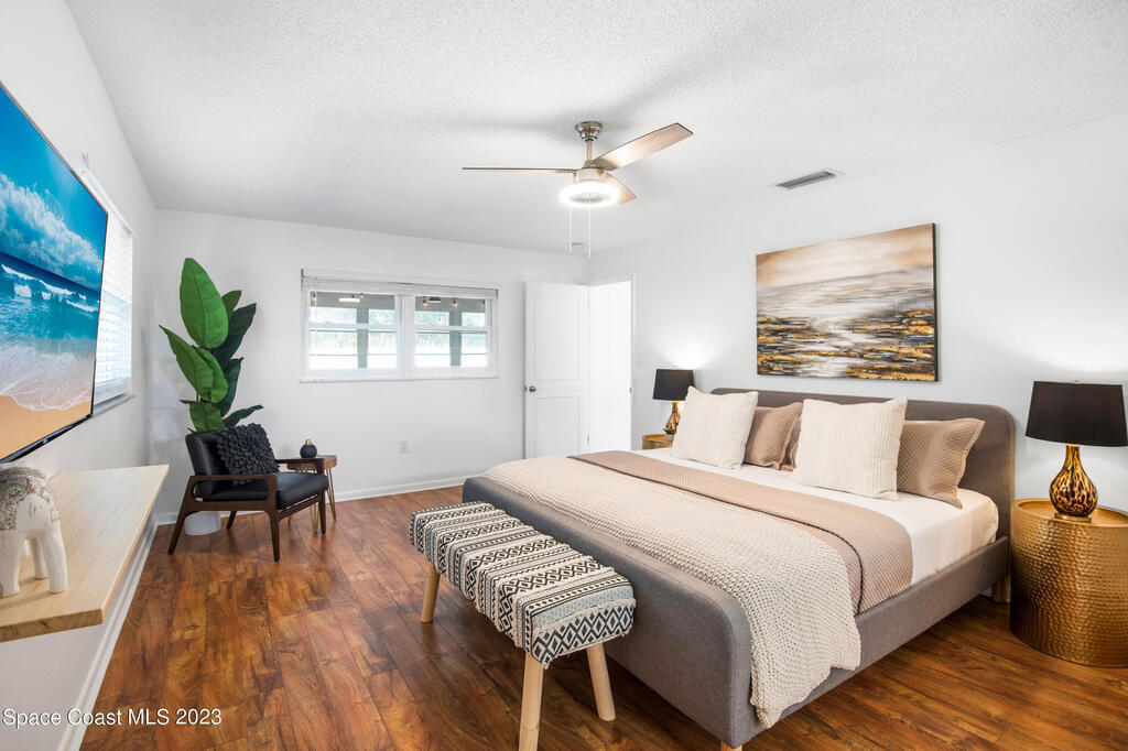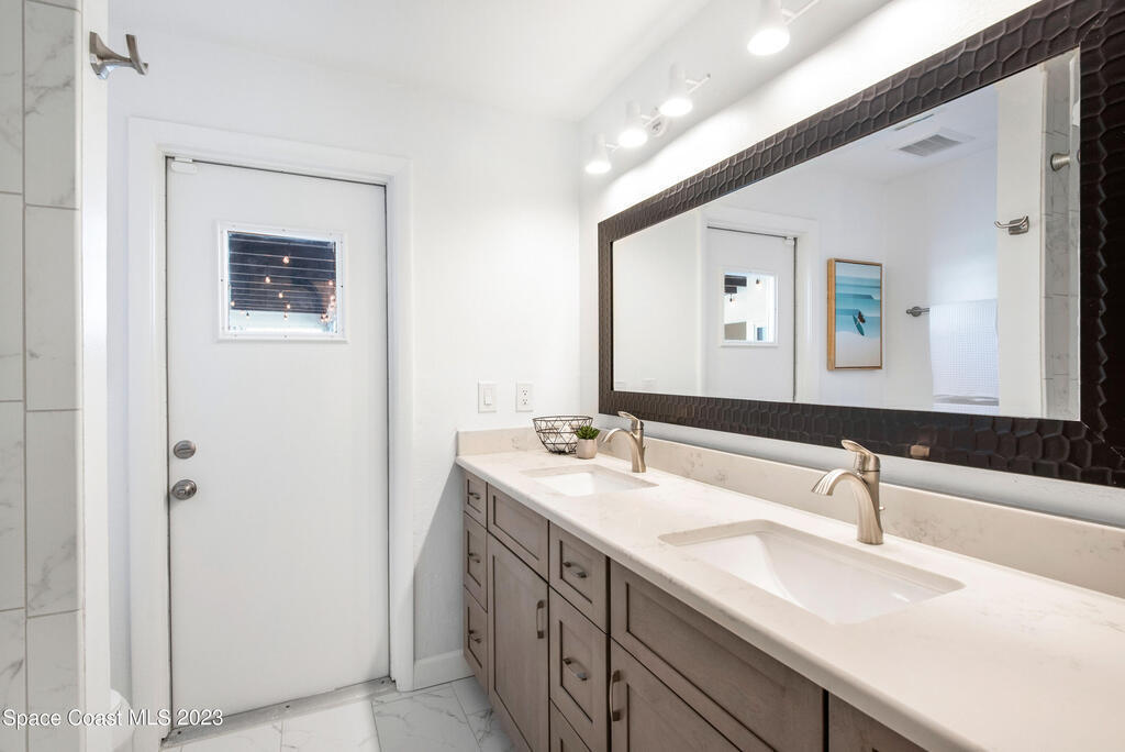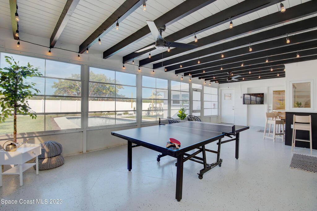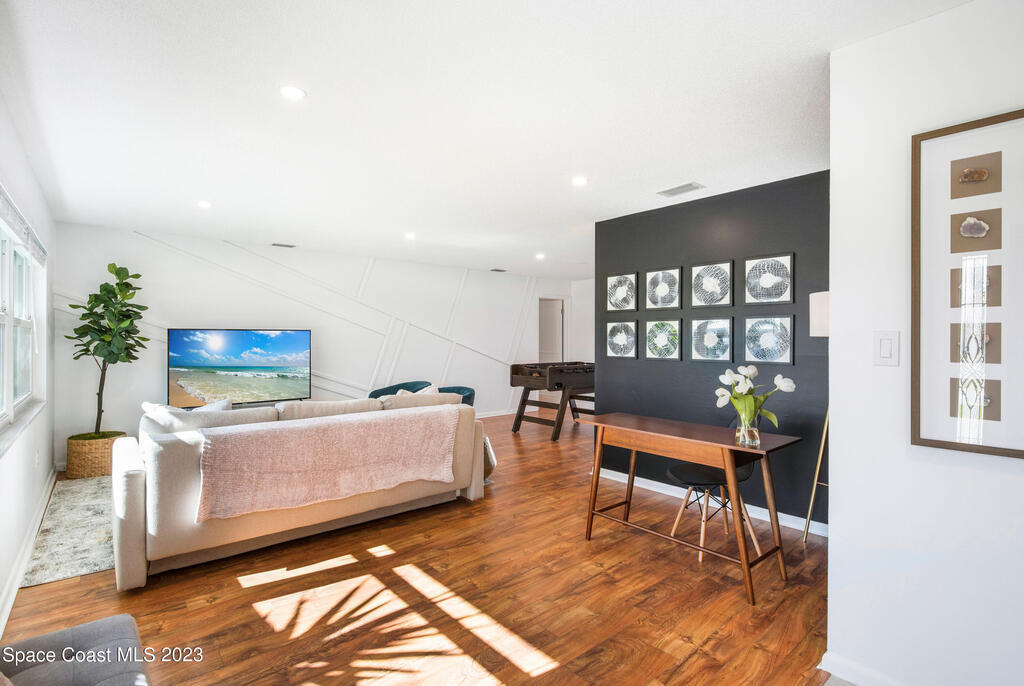 This renovated and meticulously maintained beauty provides access to the most desirable Cocoa Beach destinations. The kitchen flows effortlessly into the living room and features quartzite countertops, beautiful backsplash, stainless steel appliances, impact resistance windows & doors and amazing backyard views. Additional home highlights include: split floorplan with a private primary bedroom wing & en-suite, 2 full bathrooms and 4 bedrooms, 2 car garage, spacious and relaxing back yard entertainment paradise with pool heater/chiller system, outdoor dining area, and screened & conditioned game space. Home is equipped with RainSoft Water Treatment Systems (traditional. This is perfect for Cocoa Beach living that offers the opportunity for primary, second or turn key investment!