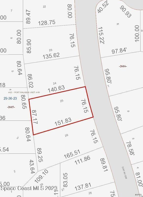 THIS OVERSIZED .26 ACRE LOT IS IN A QUIET SETTING THAT IS FULL OF POTENTIAL! THERE IS A HOUSE NEXT DOOR WHICH PUTS POWER NEARBY. THIS AREA IS JUST 7 MINUTES FROM THE BEAUTIFUL BAYSIDE LAKES DISTRICT, FEATURING A PUBLIX, DUNKIN', WALGREENS, TASTY EATERIES, MEDICAL SERVICES, AND MORE! BAYSIDE HIGH AND WESTSIDE ELEMENTARY SCHOOLS ARE A SHORT 6-MINUTE COMMUTE. THE NEW SOUTH I-95 INTERCHANGE IS 13 MINUTES AWAY, AND THE BUSY MALABAR ROAD CORRIDOR IS LESS THAN 15 MINUTES, OFFERING A LONG LIST OF STORES, RESTAURANTS, AND EVERYDAY CONVENIENCES. THIS SITE UTILIZES WELL WATER AND SEPTIC.