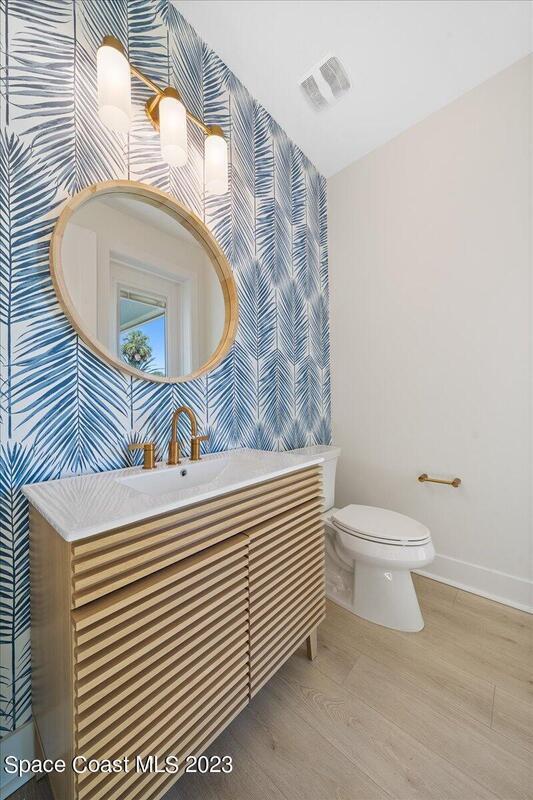 BRAND NEW HOME, Custom Built by Monarch Homes Located in a Gated boutique community with only 5 homes. This 4 Bedroom 2,5 Bath 3 Car Garage Beauty features a Designer kitchen, Gas Cooktop, Custom Wood cabinets with Crown Molding,Refrigerator allowance, Bahama Shutters, Beautiful Vinyl Plank Flooring, Hurricane Impact Rated Double Paned, Low E Vinyl Framed Windows and access to the Indian River. Located just 3 blocks from beach access, only 2.5 miles to Publix shopping, minutes from Downtown Melbourne Beach. Zoned for A rated schools.