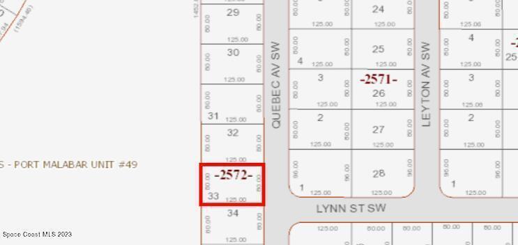 Vacant lot near the new and popular Bayside Lakes area. Build your home today or save as a vacant land real estate investment. Located in a growing area SouthWest Palm Bay. Port Malabar Unit 49. Only 2 miles to area schools. 4 mile to Publix Supermarket. 15 miles to Melbourne Airport. Two lots on Quebec (MLS 974860 & 974875) and one on Leyton (MLS 974858) available as a package for $65,000.