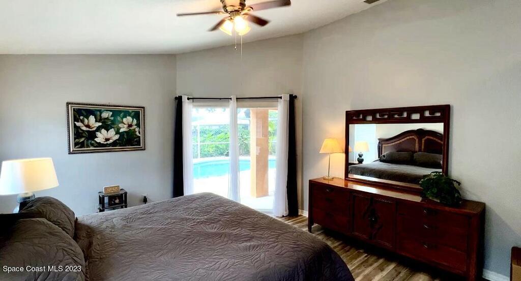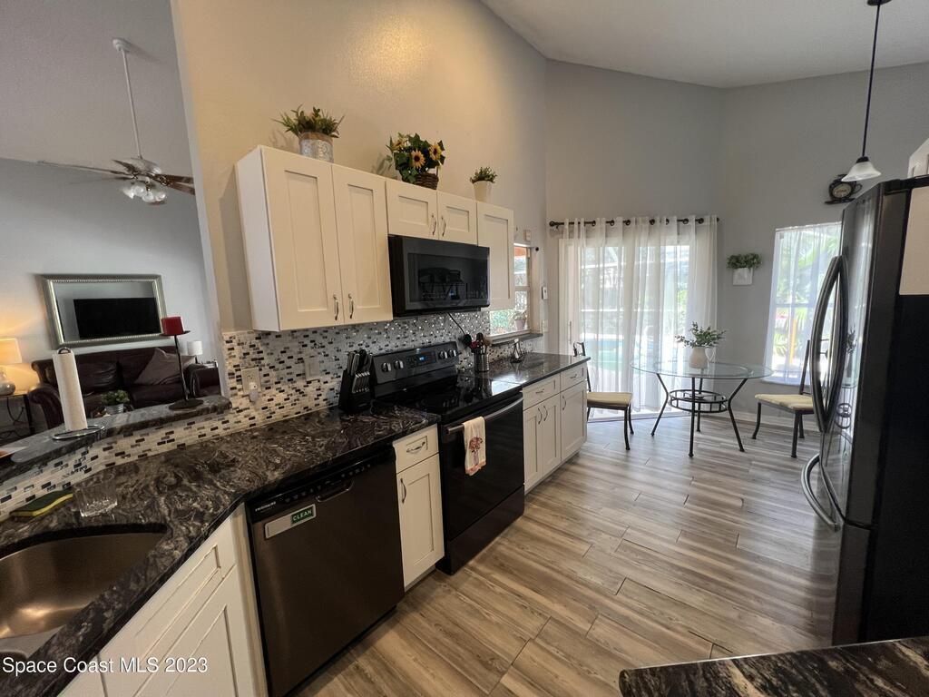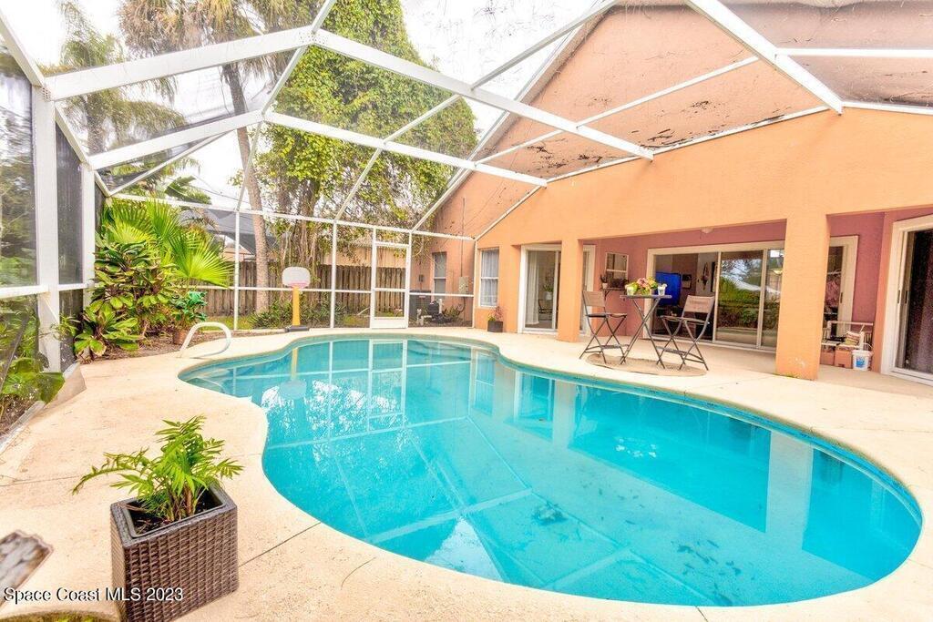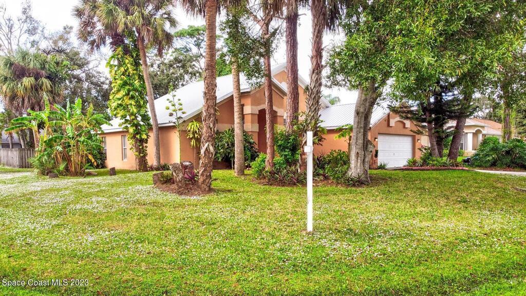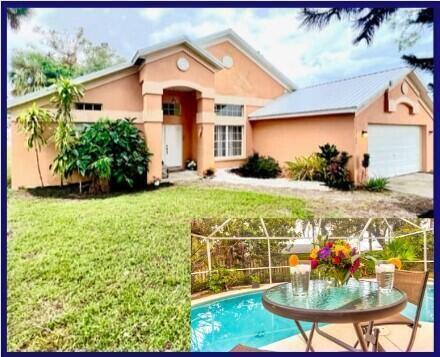 Imagine coming home to this 3 /2 Custom built gem, tucked away on a private corner lot. Walk past the pond and fountain to enter the double doors. Inside, you will find vaulted ceilings highlighting the bright and airy split floor plan. The updated kitchen is complete with granite counter tops. Relax in your private screen enclosed pool area with access to the kitchen, living and primary owner's suite. Large 2 car garage with built in storage on a .26 acre lot complete with lush landscaping, including Banana and Mango Trees. All the privacy and convenient location with No H.O.A. fees! 2023 Metal roof. Schedule your private tour today.