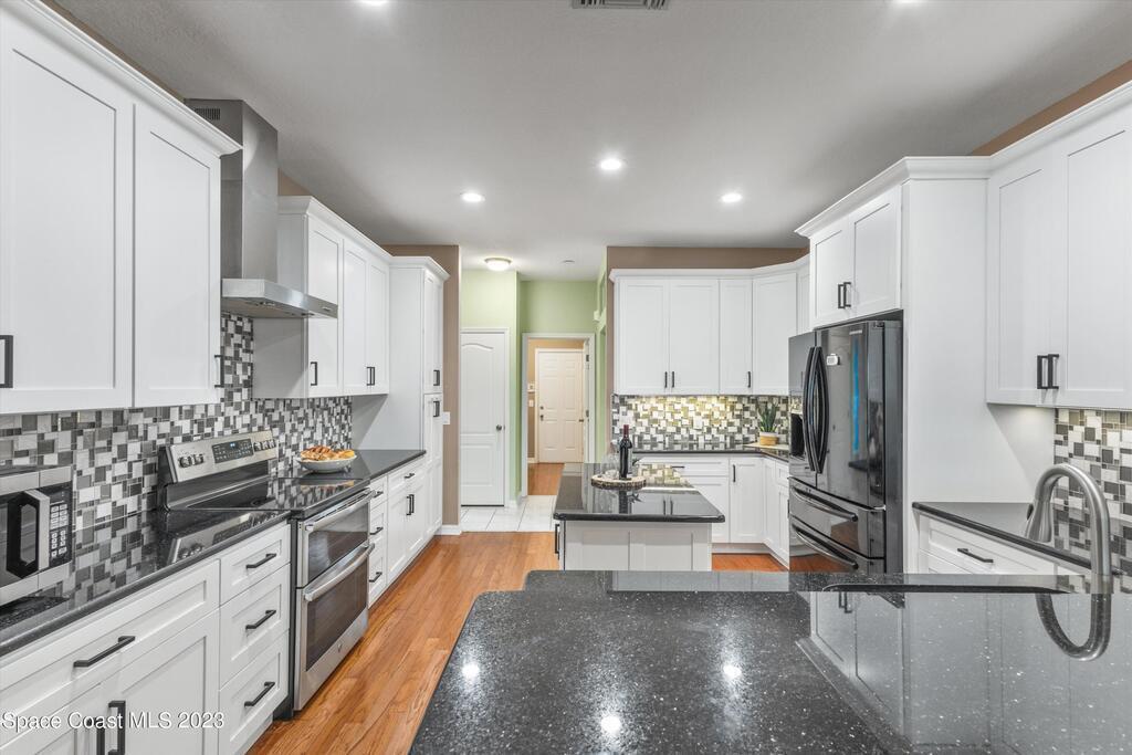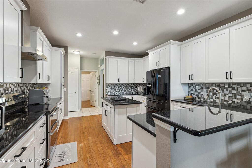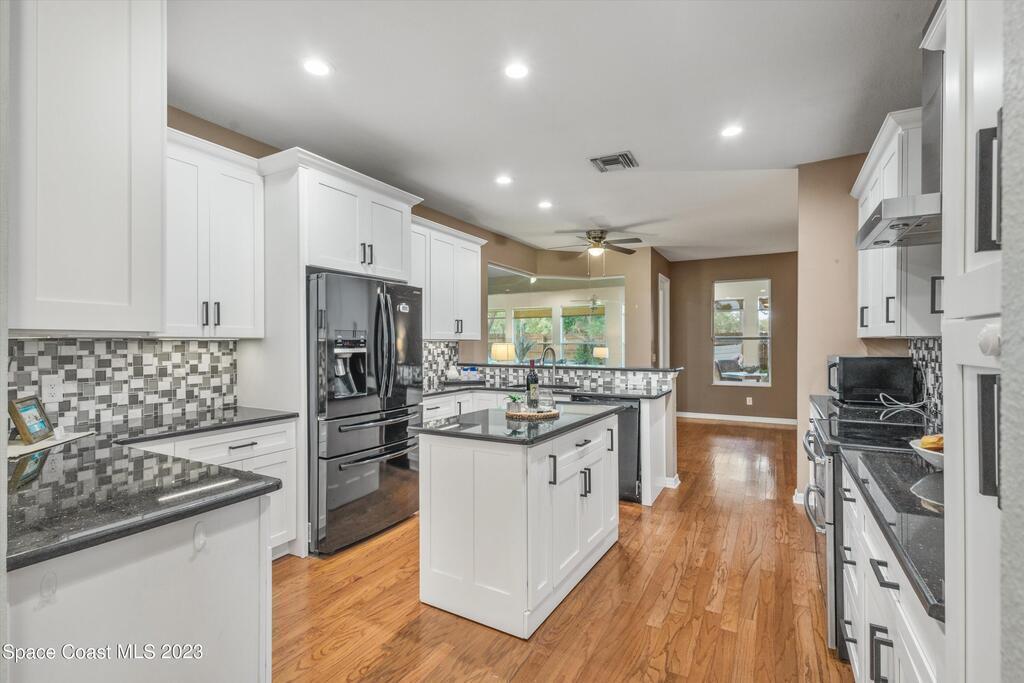 PRICE IMPROVEMENT ON THIS STUNNING Four -bedroom, 3-bath, office/den, 2 car garage on a spacious corner lot, with over 3200 sq ft of luxuriousliving space. The beautiful black and white kitchen with glass back splash and a breakfast nook . French doors leads to a private primary bedroom with alarge walk-in closet, & bath with double vanity, walk-in tile shower and soaking tub. The 3 other bedrooms are spacious. The amazing under air addition is perfect for pool table, yoga room and separate area for home schooling. Fully fenced back yard .39 acre. Recent updates include solar electric system 11.47kW) that is owned, roof replaced in 2016, hot water heater in 2019, gutter guards in 2019, A/C in 2013, and the home has hurricane shutters.