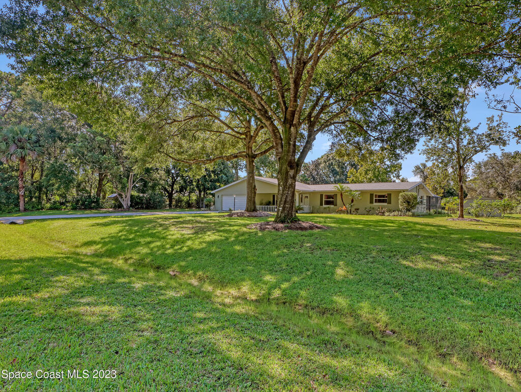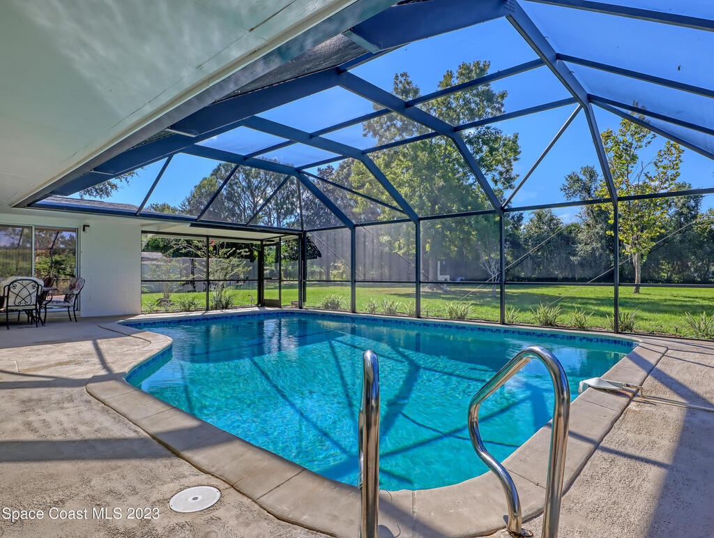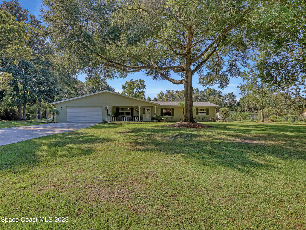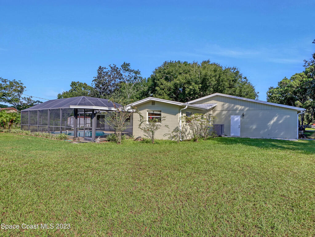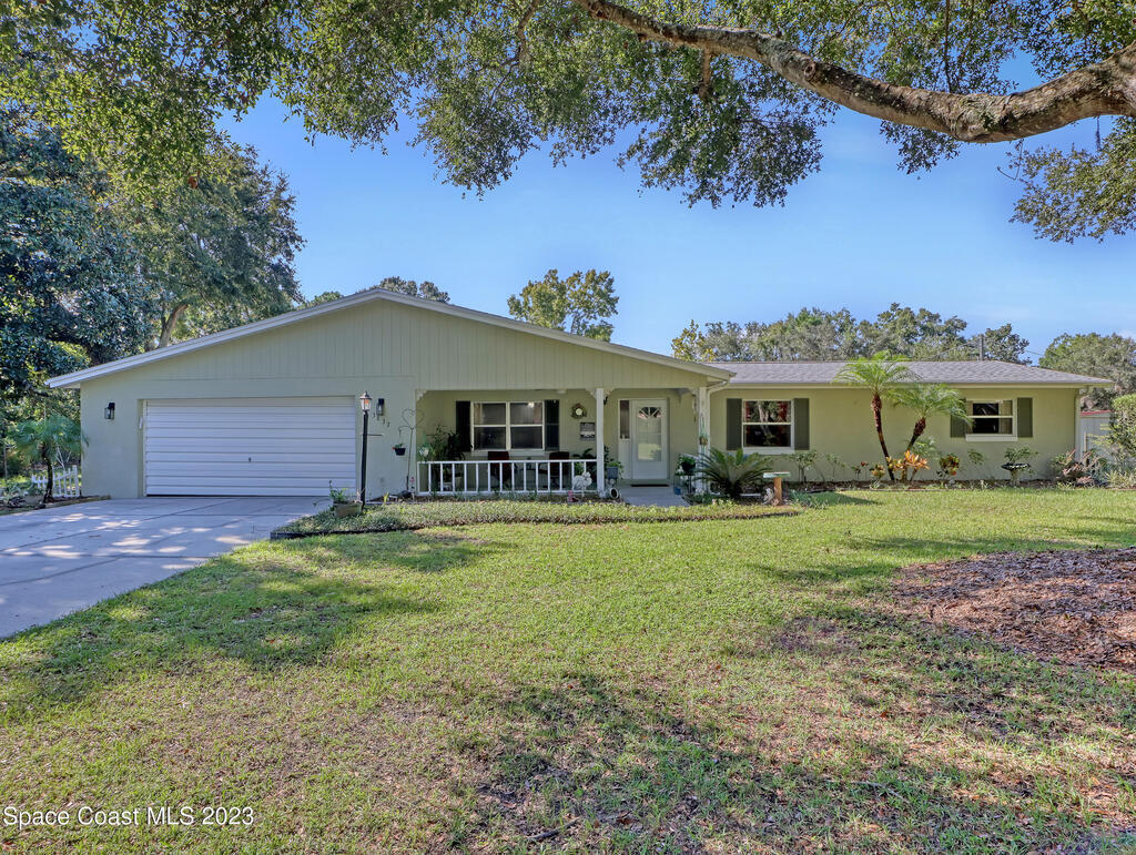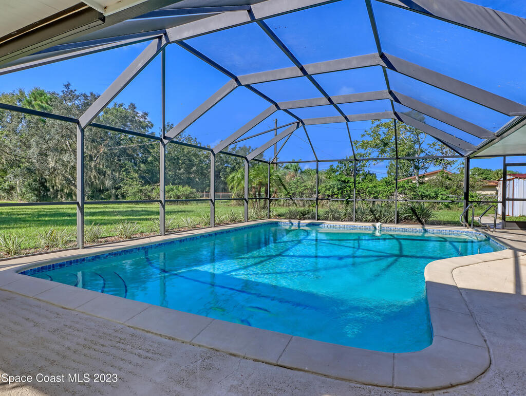 Tranquility awaits! This Mims home is located on a quiet, paved road. Upon pulling into your driveway, you will be greeted by mature trees and a large front porch. This home has been extremely well-maintained. The house has been freshly painted inside, the roof is less than a year old, HVAC is 5 years old, and the pool screen has been recently replaced. The pool area is an entertainer's dream! The patio, pool and over an acre of land are perfect for hosting family and friends.