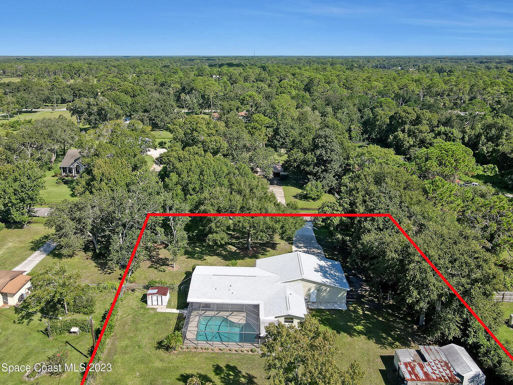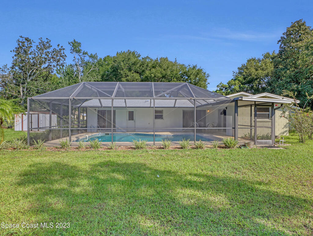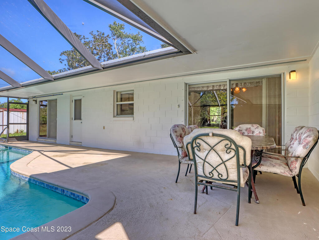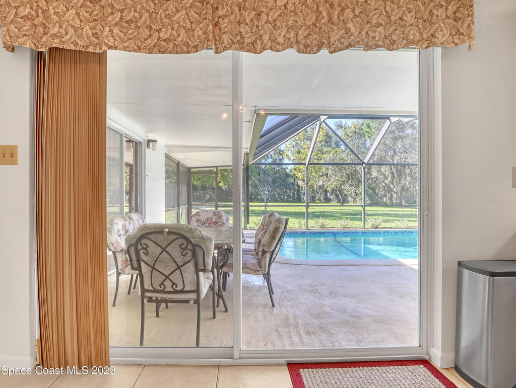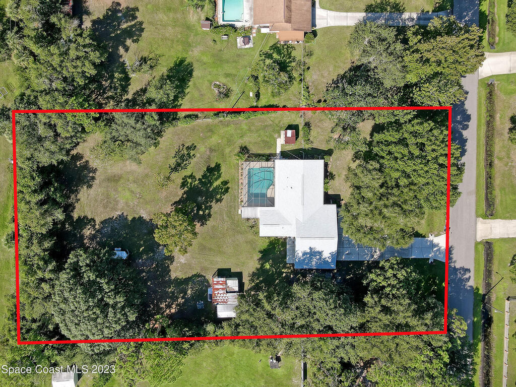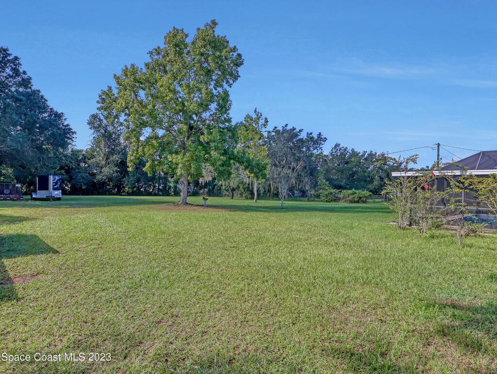 Tranquility awaits! This Mims home is located on a quiet, paved road. Upon pulling into your driveway, you will be greeted by mature trees and a large front porch. This home has been extremely well-maintained. The house has been freshly painted inside, the roof is less than a year old, HVAC is 5 years old, and the pool screen has been recently replaced. The pool area is an entertainer's dream! The patio, pool and over an acre of land are perfect for hosting family and friends.