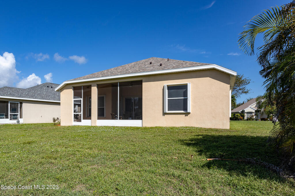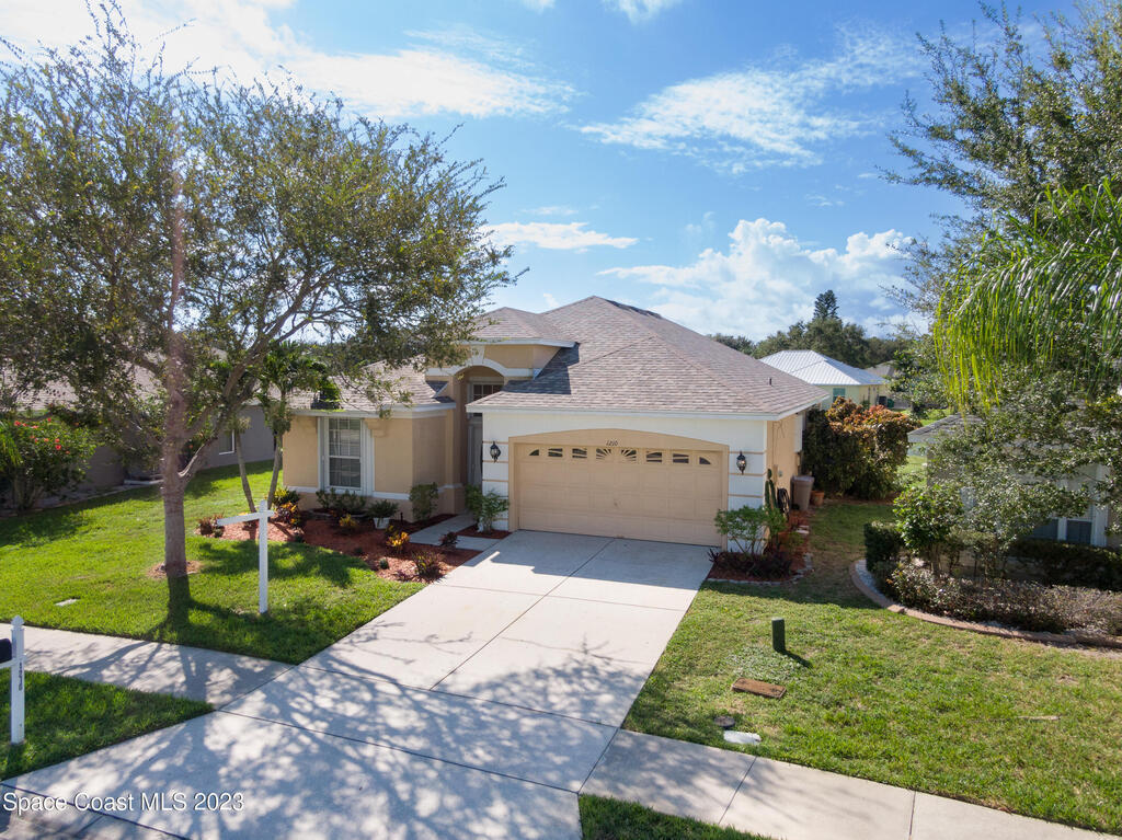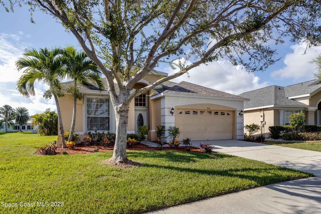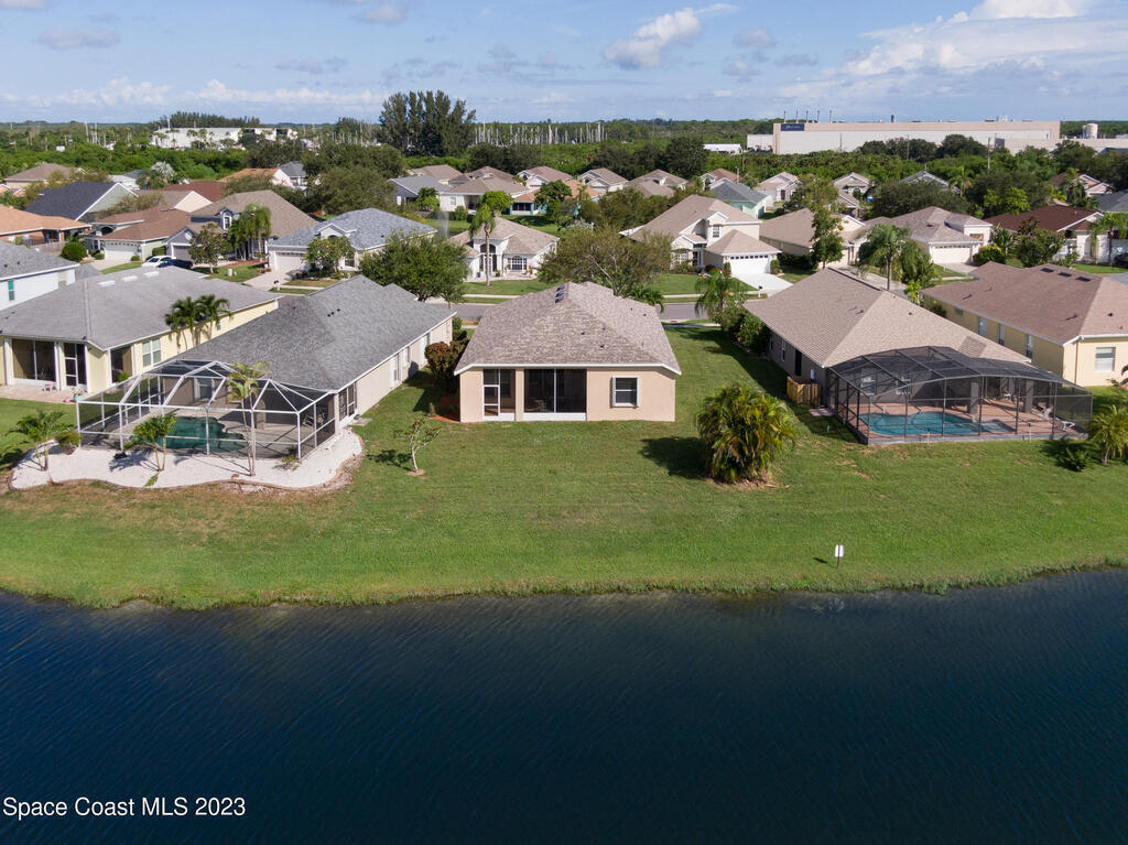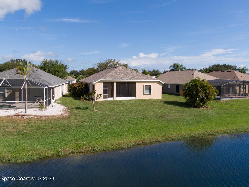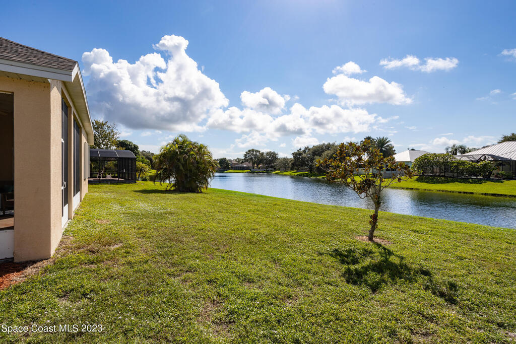 Do not miss this beautiful three bedroom two bath concrete block home in desirable Merritt Island. High ceilings, lots of light, lanai overlooking the lake make this home a must see!This open floorplan home is conveniently located to the Space Center, beach, shopping and schools. It features a two-car garage, walk in main shower, oversized and screened lanai overlooking the lake. The home is walking distance to community pool, and Kelly Park where you can launch your boat onto the Banana River. Home has been recently painted and is ready to move in with a quick closing! It features new stainless steal appliances, a pantry, granite countertops, and an eat in kitchen, easy to close custom shutters for ultimate protection along with:Newer: Roof Oct '22, AC May '2019