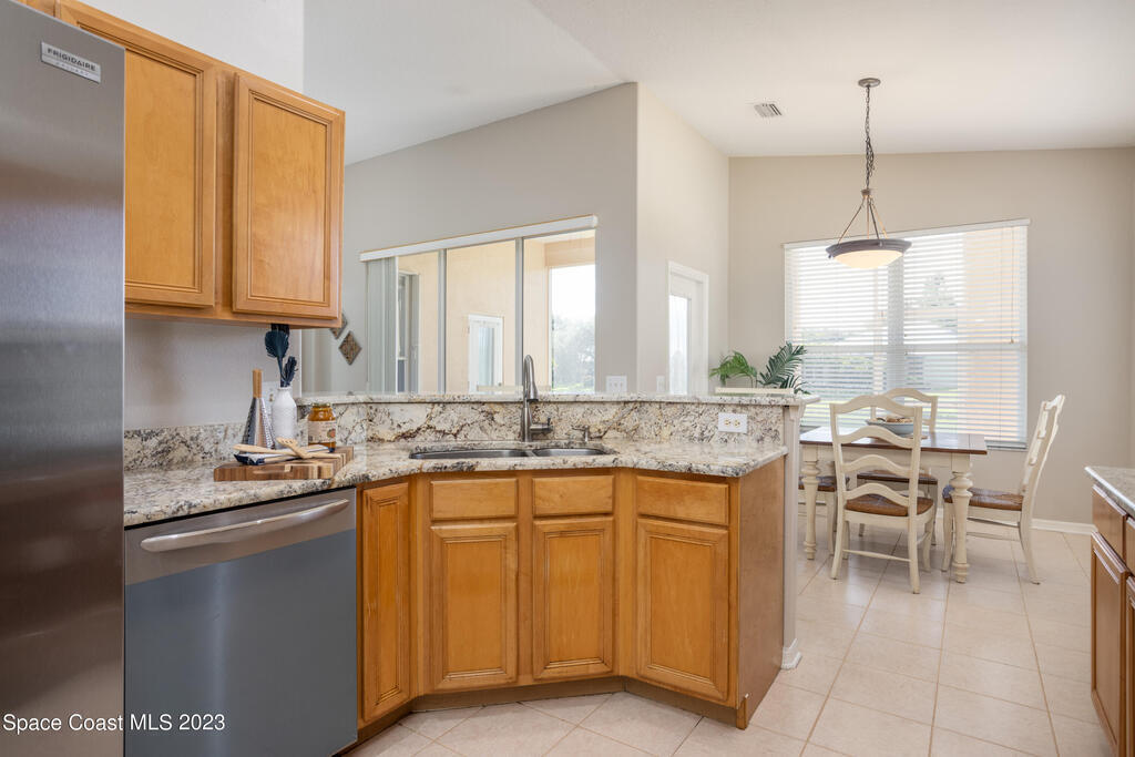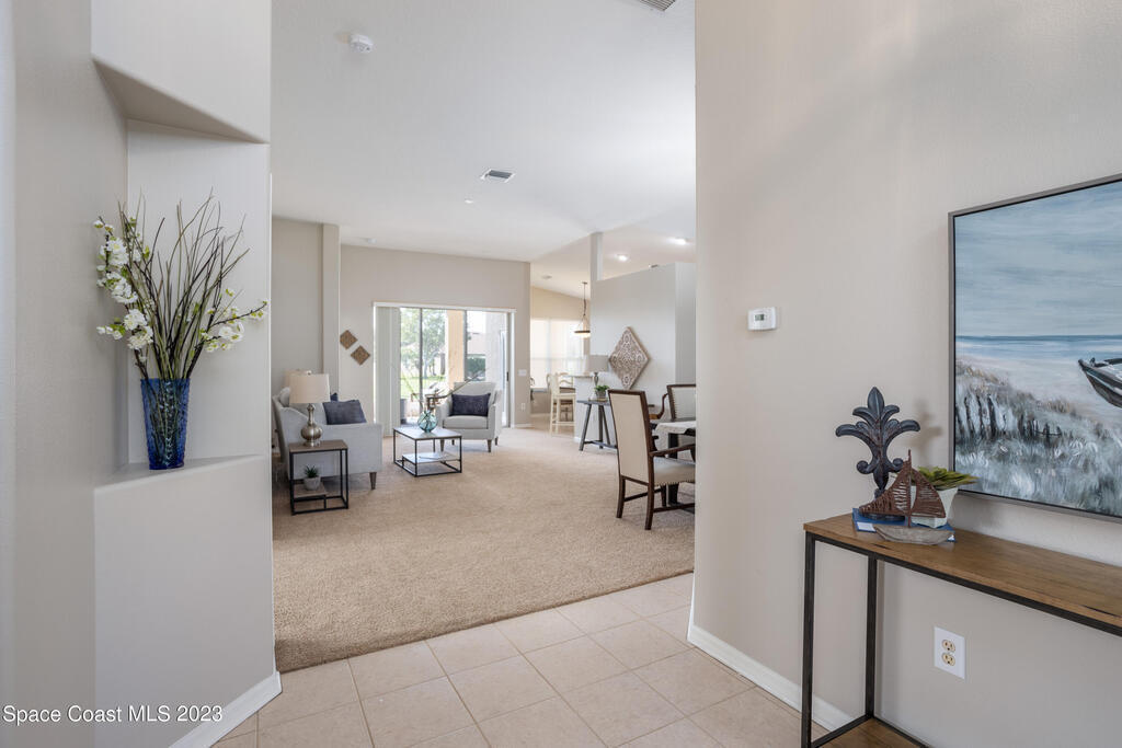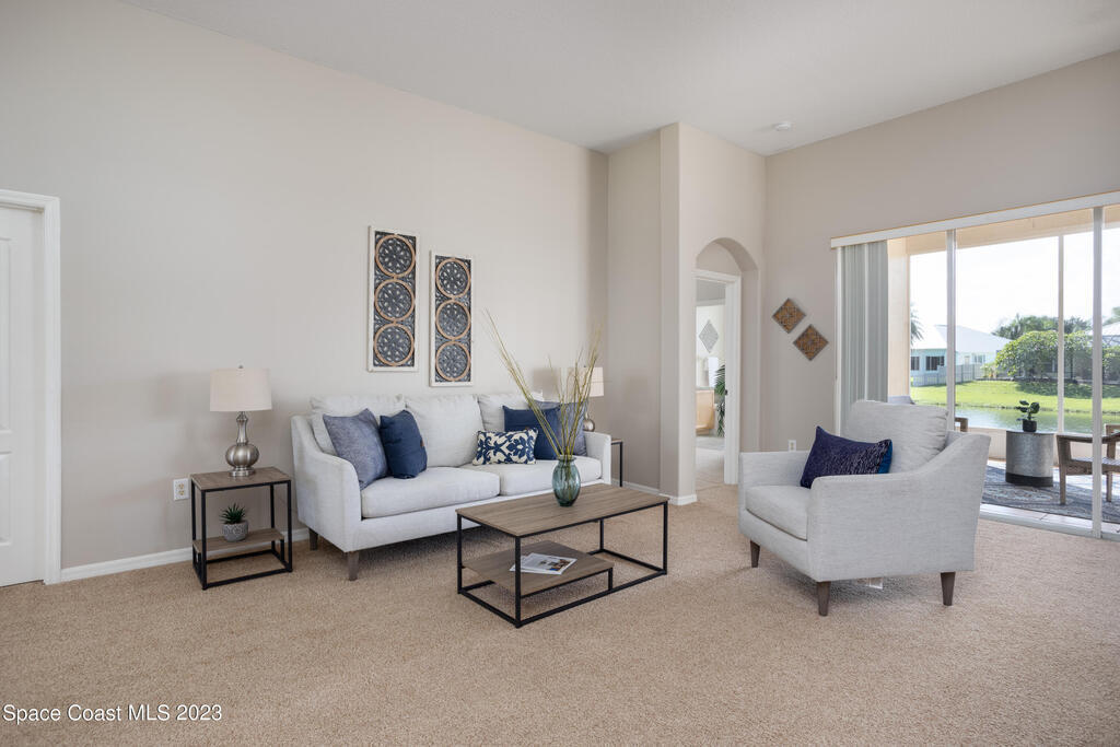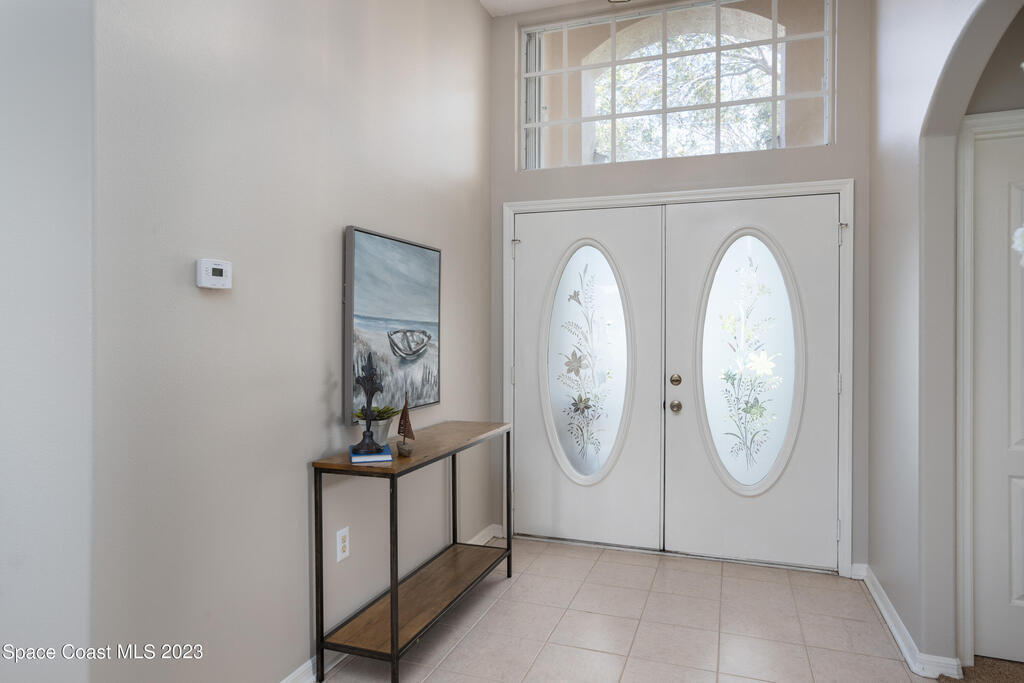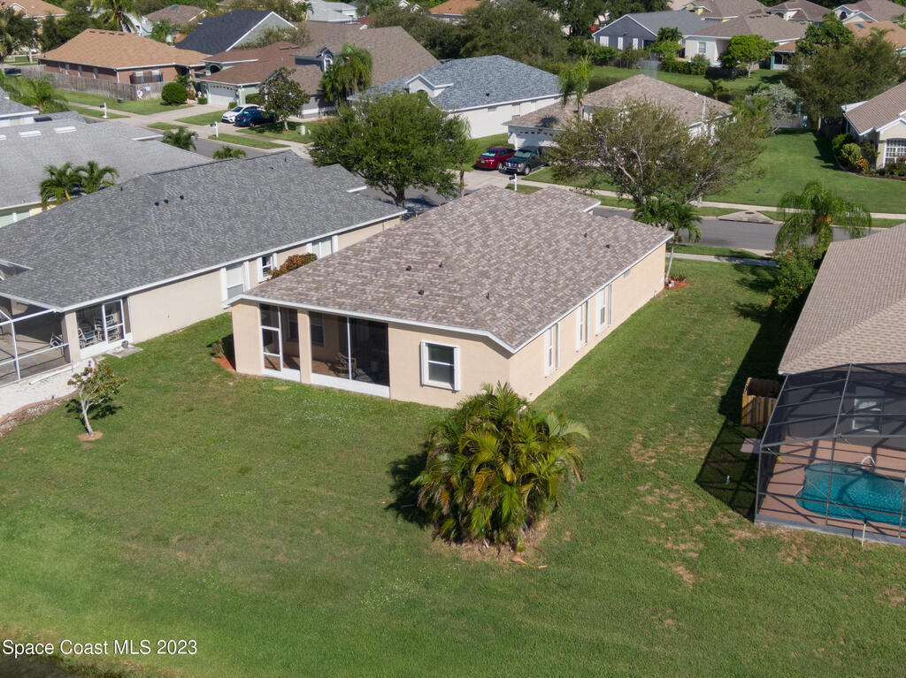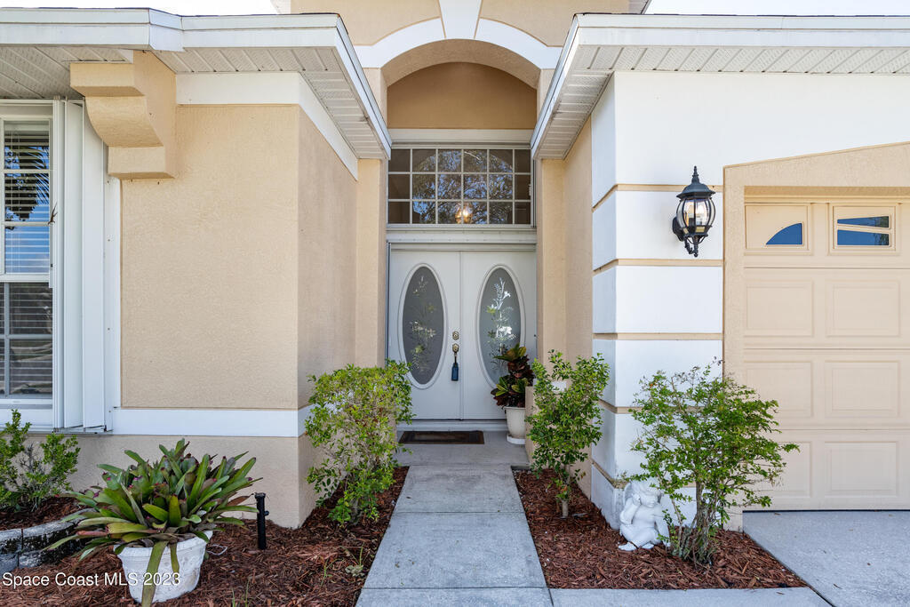 Do not miss this beautiful three bedroom two bath concrete block home in desirable Merritt Island. High ceilings, lots of light, lanai overlooking the lake make this home a must see!This open floorplan home is conveniently located to the Space Center, beach, shopping and schools. It features a two-car garage, walk in main shower, oversized and screened lanai overlooking the lake. The home is walking distance to community pool, and Kelly Park where you can launch your boat onto the Banana River. Home has been recently painted and is ready to move in with a quick closing! It features new stainless steal appliances, a pantry, granite countertops, and an eat in kitchen, easy to close custom shutters for ultimate protection along with:Newer: Roof Oct '22, AC May '2019