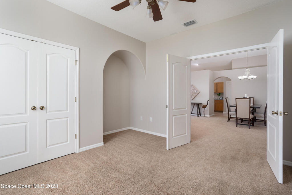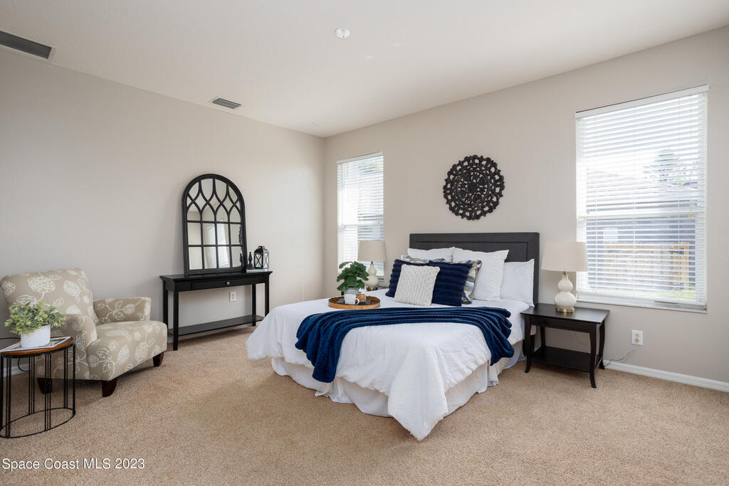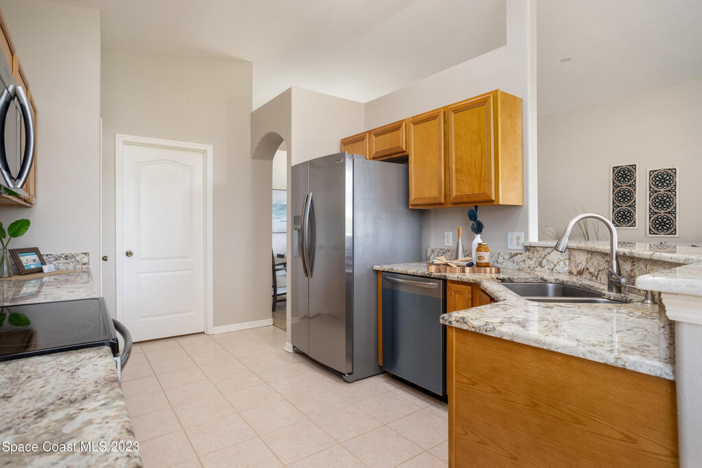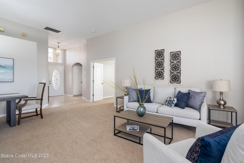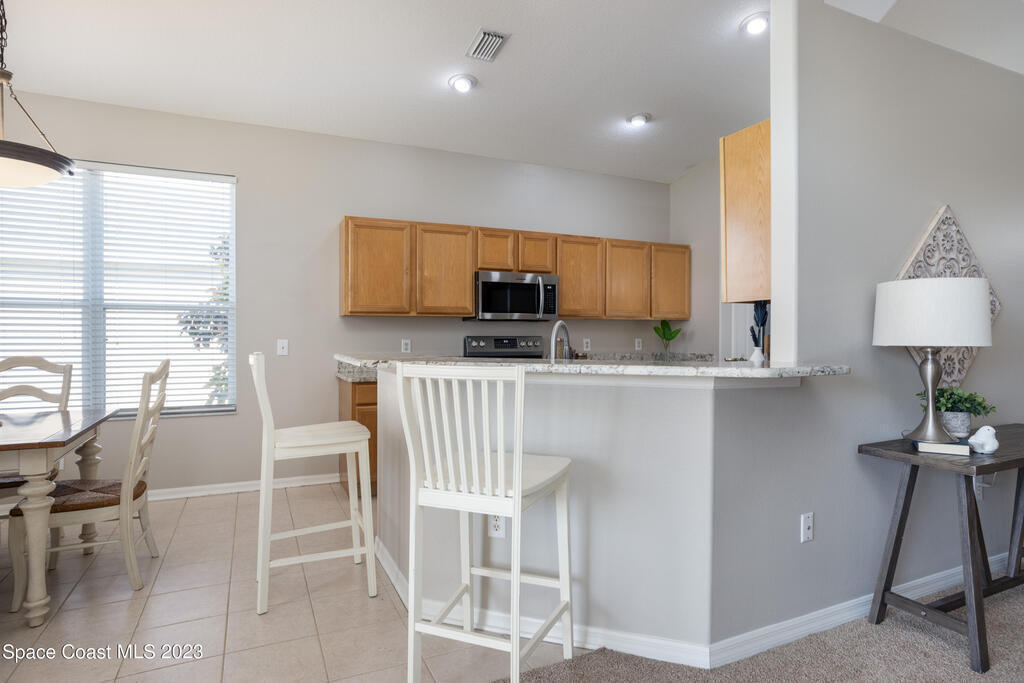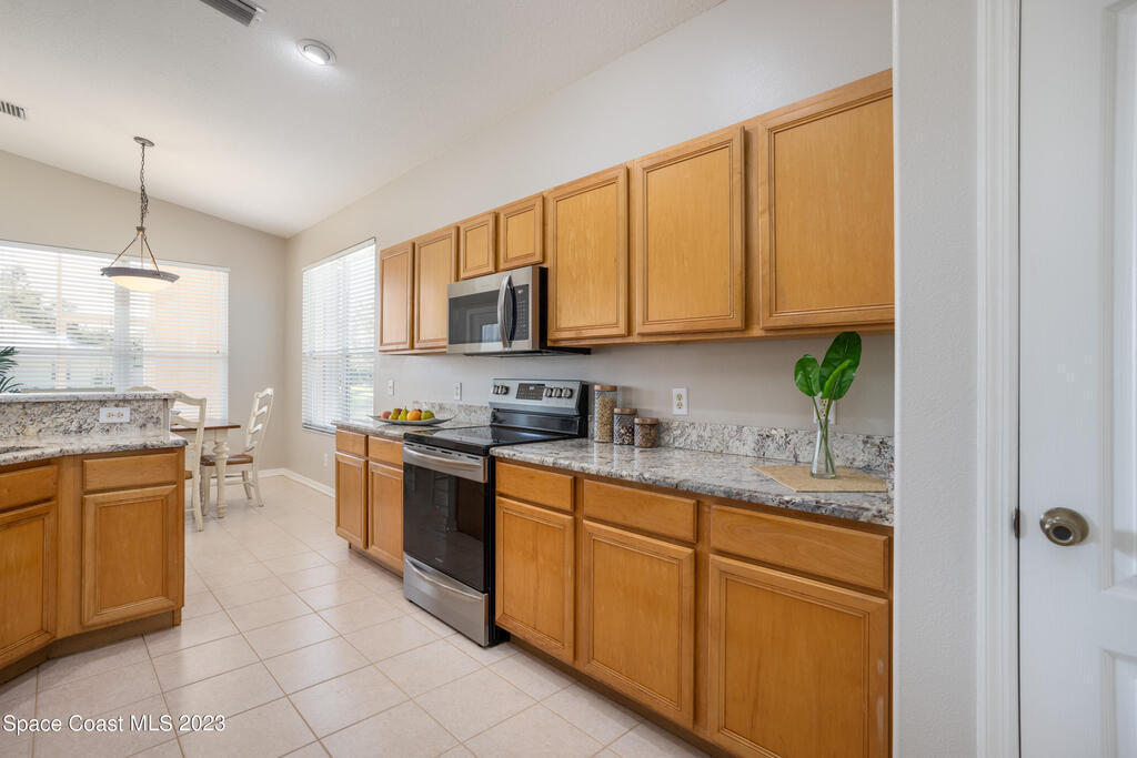 Do not miss this beautiful three bedroom two bath concrete block home in desirable Merritt Island. High ceilings, lots of light, lanai overlooking the lake make this home a must see!This open floorplan home is conveniently located to the Space Center, beach, shopping and schools. It features a two-car garage, walk in main shower, oversized and screened lanai overlooking the lake. The home is walking distance to community pool, and Kelly Park where you can launch your boat onto the Banana River. Home has been recently painted and is ready to move in with a quick closing! It features new stainless steal appliances, a pantry, granite countertops, and an eat in kitchen, easy to close custom shutters for ultimate protection along with:Newer: Roof Oct '22, AC May '2019