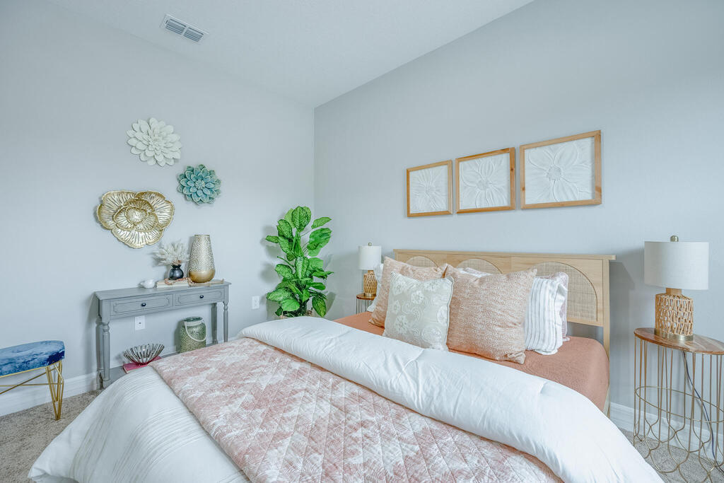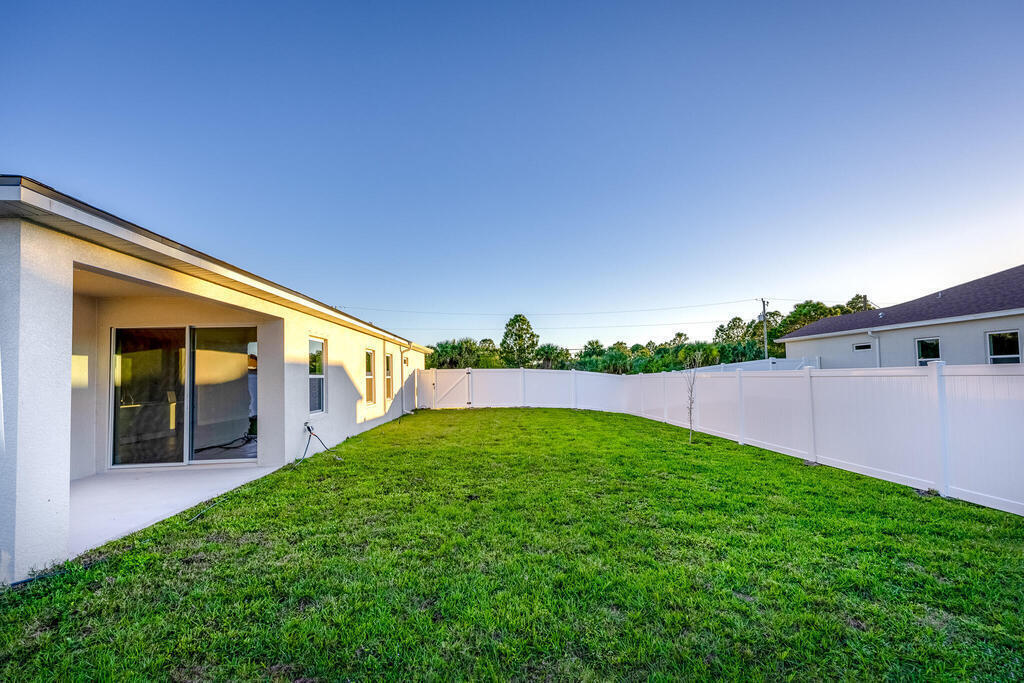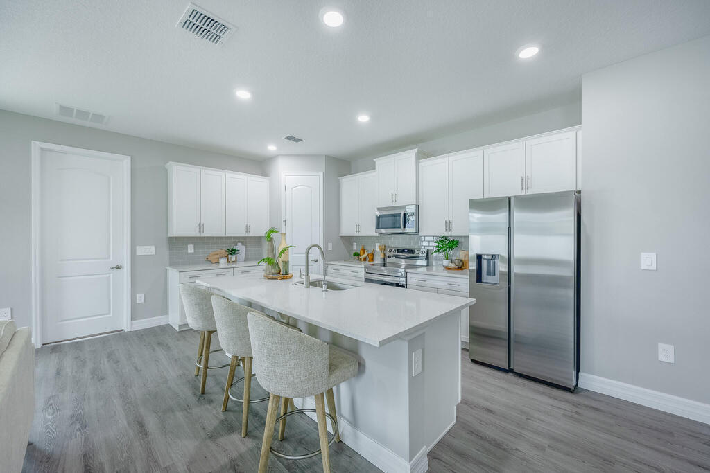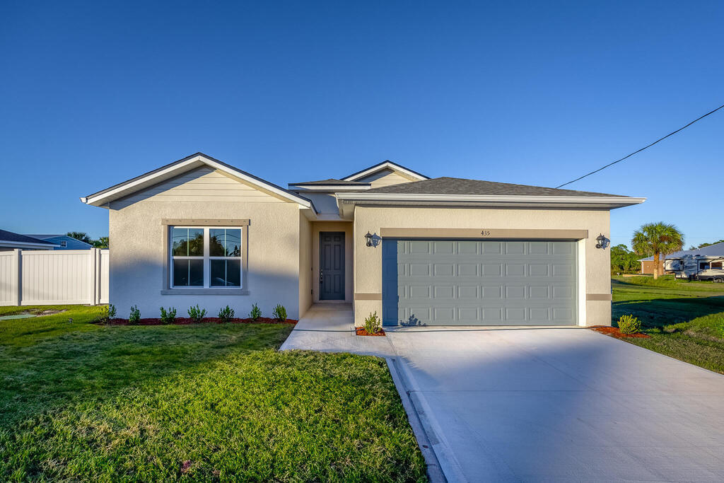 This brand new with a vinyl fence is MOVE IN READY! The modern design concept boasts 4 bedrooms & 3 full baths. High ceilings in the living area and a covered lanai just outside offer perfect spots for gathering with friends and family. The spacious Master Bedroom with tray ceiling, double walk-in closets & an en-suite bath is sure to impress with a huge walk in shower and dual vanities with quartz counters. Top of the line options include stainless-steel Samsung appliances, shaker cabinets, Mohawk RevWood flooring, ring doorbell and 8'doors throughout. Plus No HOA fees! Contact Builders' agent for details on $$$ incentives for your Closing Costs and 3-2-1 Interest Rate reduction.