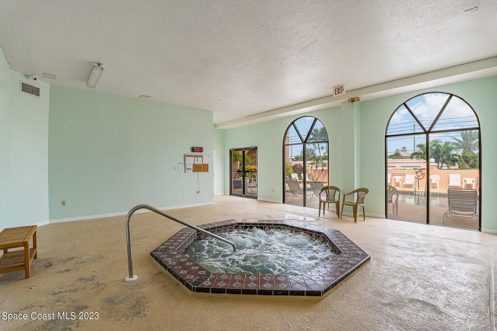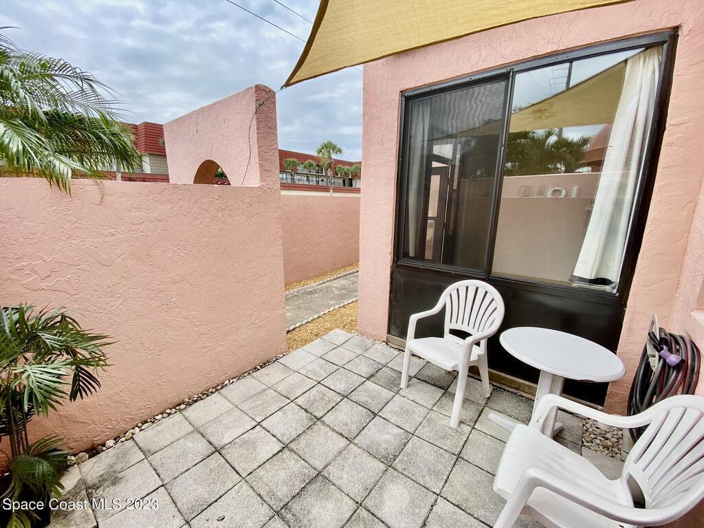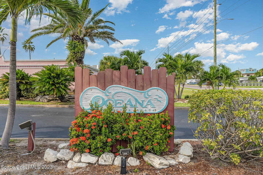 Accepting Back ups! Welcome to the neighborhood!! This condo offers privacy with a private courtyard!Easy Walk to the beach from this beautiful freshly painted condo, AC New Dec 2022!! move in ready. The enclosed patio with newer windows allows for more living square footage under air. Blinds are new including blind for skylight! Only 7 blocks from downtown Cocoa Beach, fine dining, coffee shops, bakeries, Iconic beachfront dining! All this and nestled between the ocean and the river! Just steps to the ocean and 2 blocks to the community boat ramp, park, tennis courts, community center and pickle ball. The benefits don't stop there, a beautiful pool, hot tub and sauna are also part of this beautiful complex. Oceana Condo Association is fiscally responsible and the complex is well maintained!!! Great reserves, budget available for review. Updated electrical, hot water heater. Washer and Dryer in the unit! Easy access from Brevard Ave, just north of 8th Street South