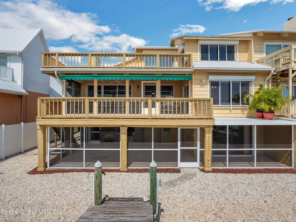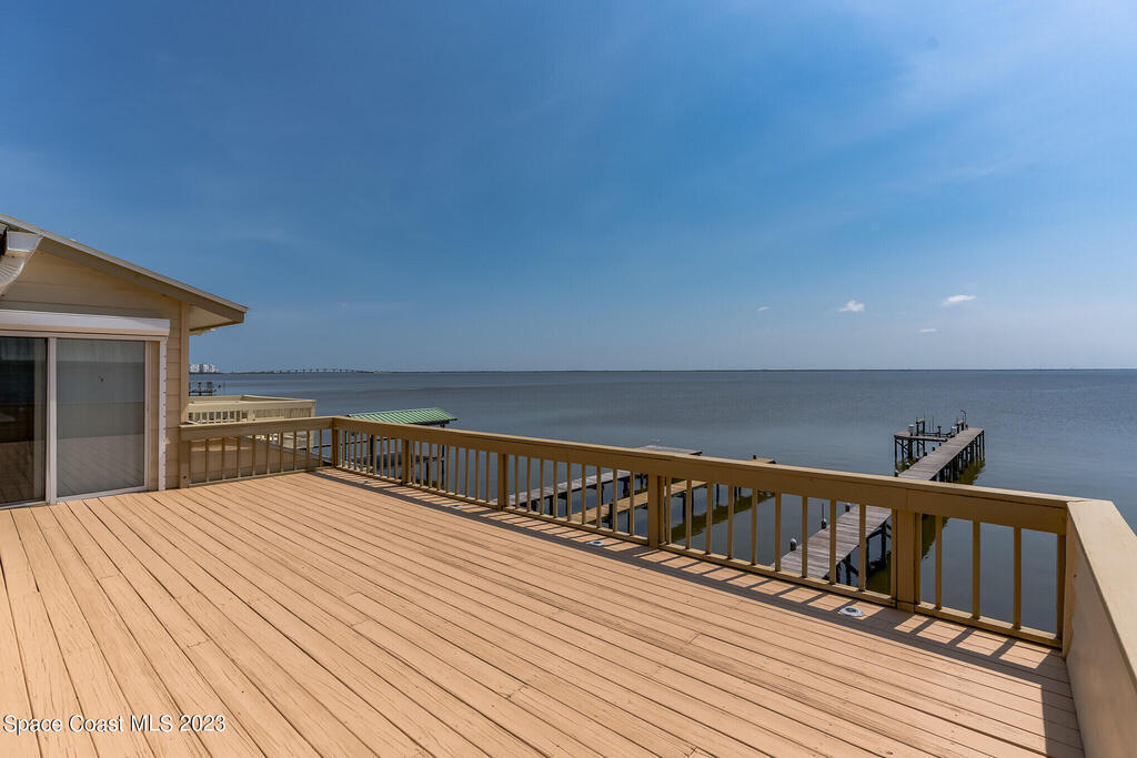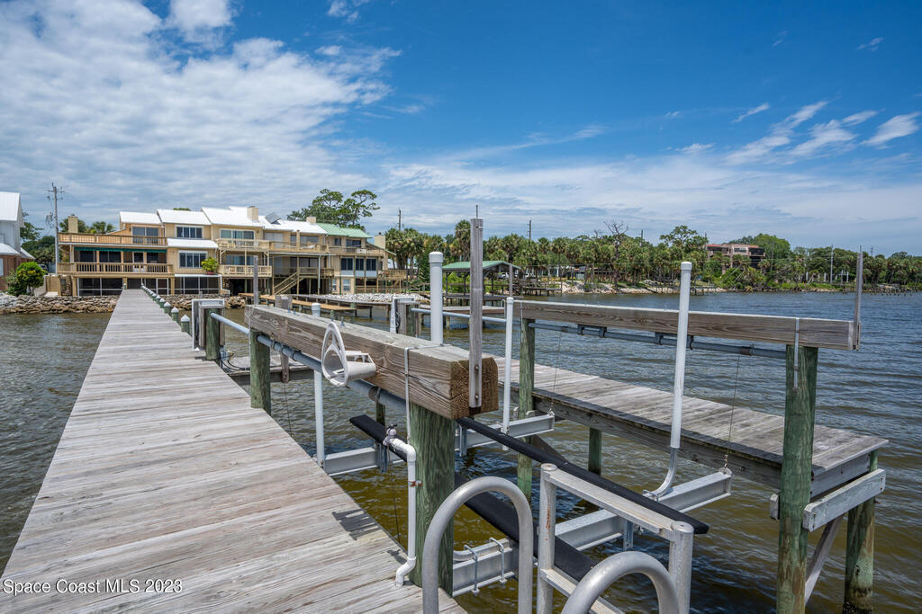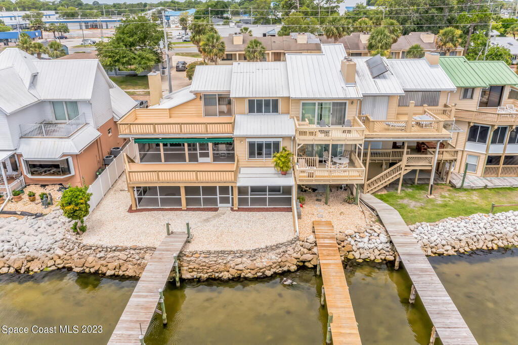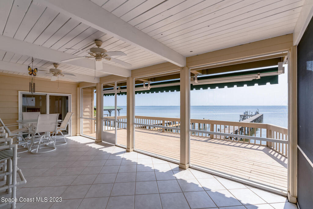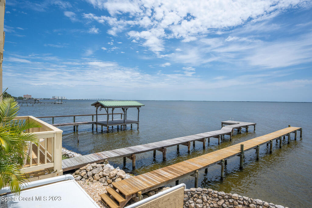 Great deal on a riverfront property!Enjoy beautiful views of sunrises and rocket launches on your personal dock right on the Indian River. Three porches maximize your views from each story. Enjoy true indoor/outdoor entertaining from the Dining and Living Rooms. Both have sliding glass doors that open onto the screened in porch which leads out to an open air balcony overlooking the river. Living Room has vaulted ceilings and gas fireplace. The kitchen is a chef's dream with double ovens, flat top range, built in microwave and a sink with a view of the water! The main floor Master Bedroom is spacious with ample closet space and an onsuite bathroom with jetted tob/shower combo and double sink vanity. Three bedrooms upstairs, two with porch access. Private Dock with boat lift.