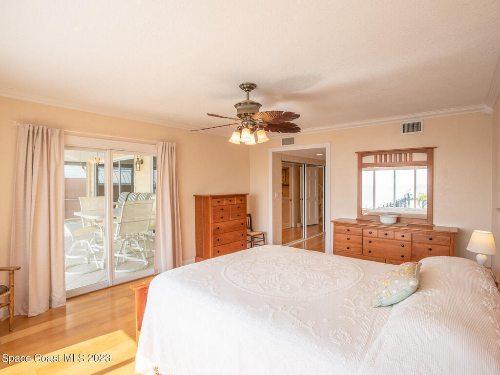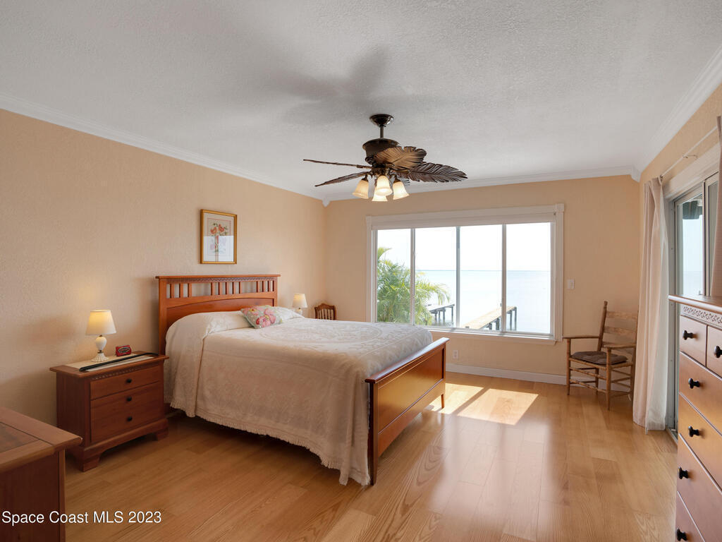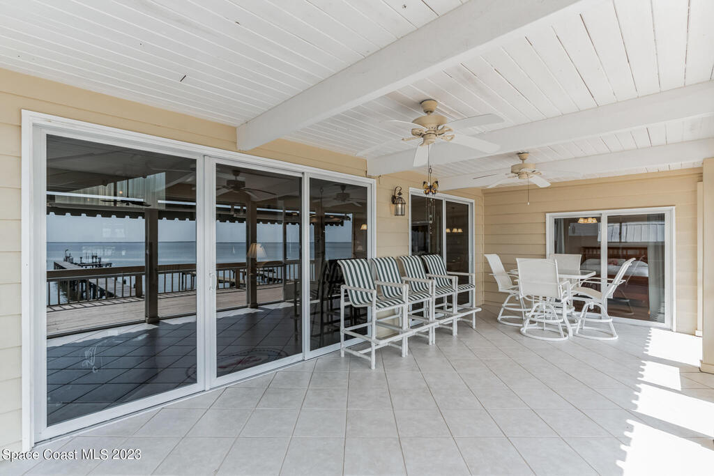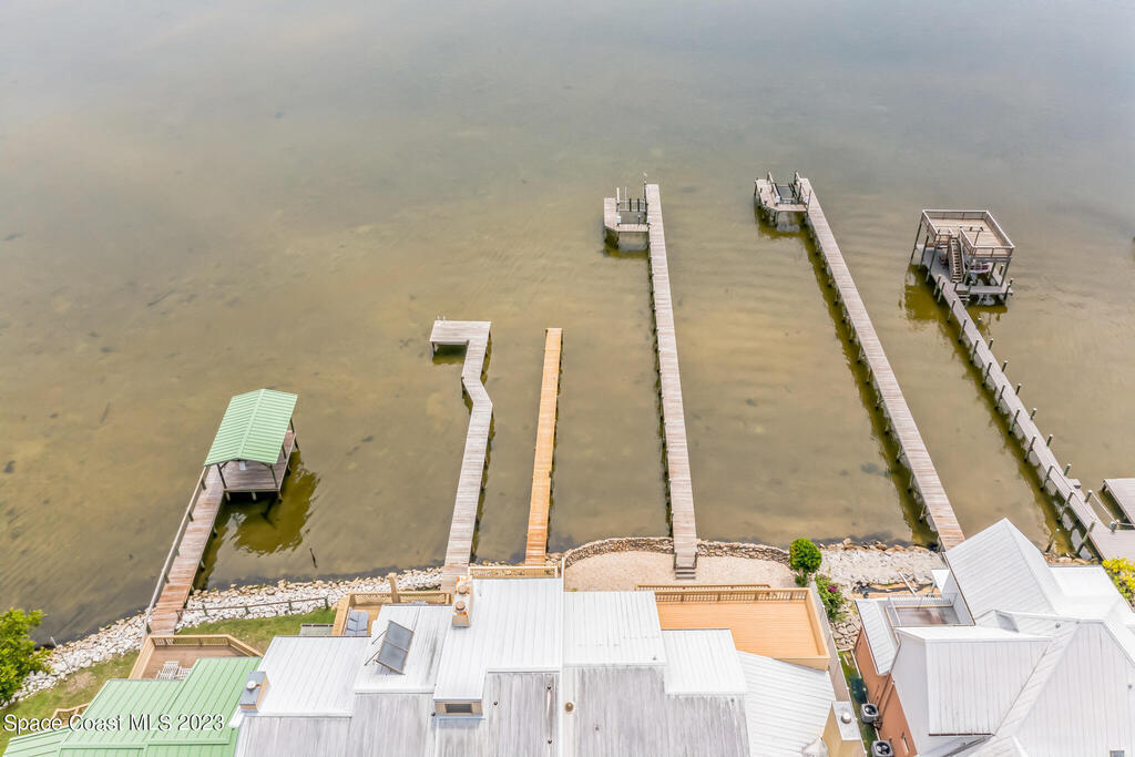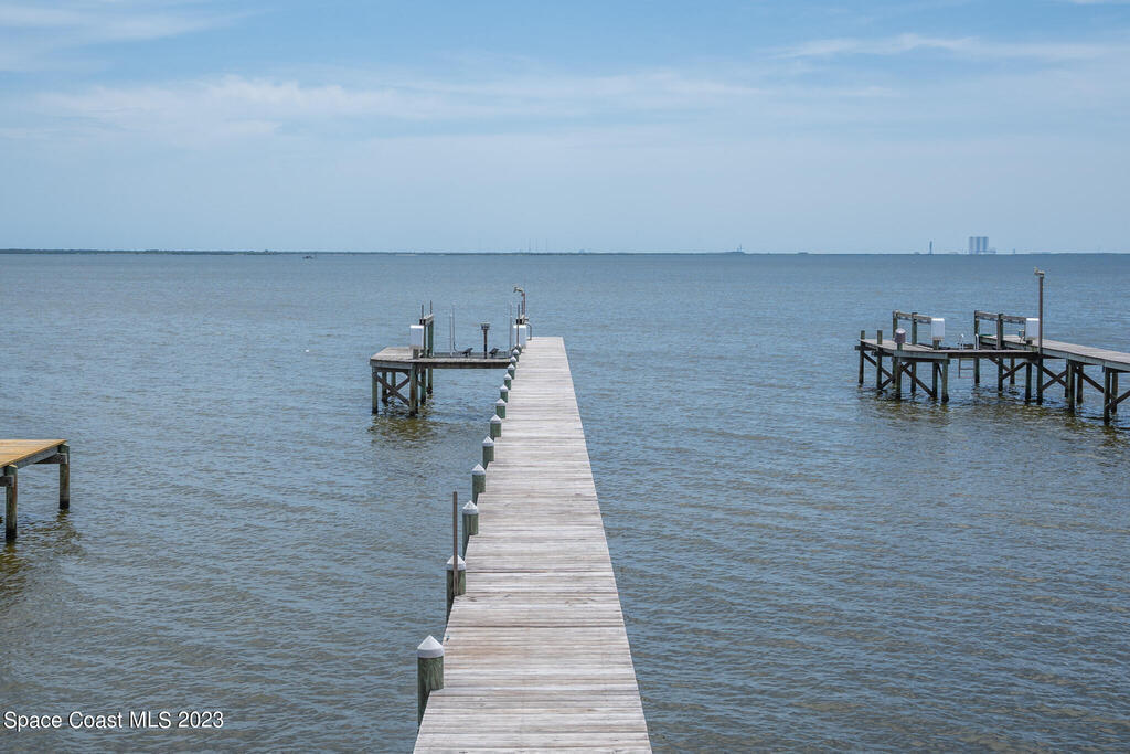 Great deal on a riverfront property!Enjoy beautiful views of sunrises and rocket launches on your personal dock right on the Indian River. Three porches maximize your views from each story. Enjoy true indoor/outdoor entertaining from the Dining and Living Rooms. Both have sliding glass doors that open onto the screened in porch which leads out to an open air balcony overlooking the river. Living Room has vaulted ceilings and gas fireplace. The kitchen is a chef's dream with double ovens, flat top range, built in microwave and a sink with a view of the water! The main floor Master Bedroom is spacious with ample closet space and an onsuite bathroom with jetted tob/shower combo and double sink vanity. Three bedrooms upstairs, two with porch access. Private Dock with boat lift.