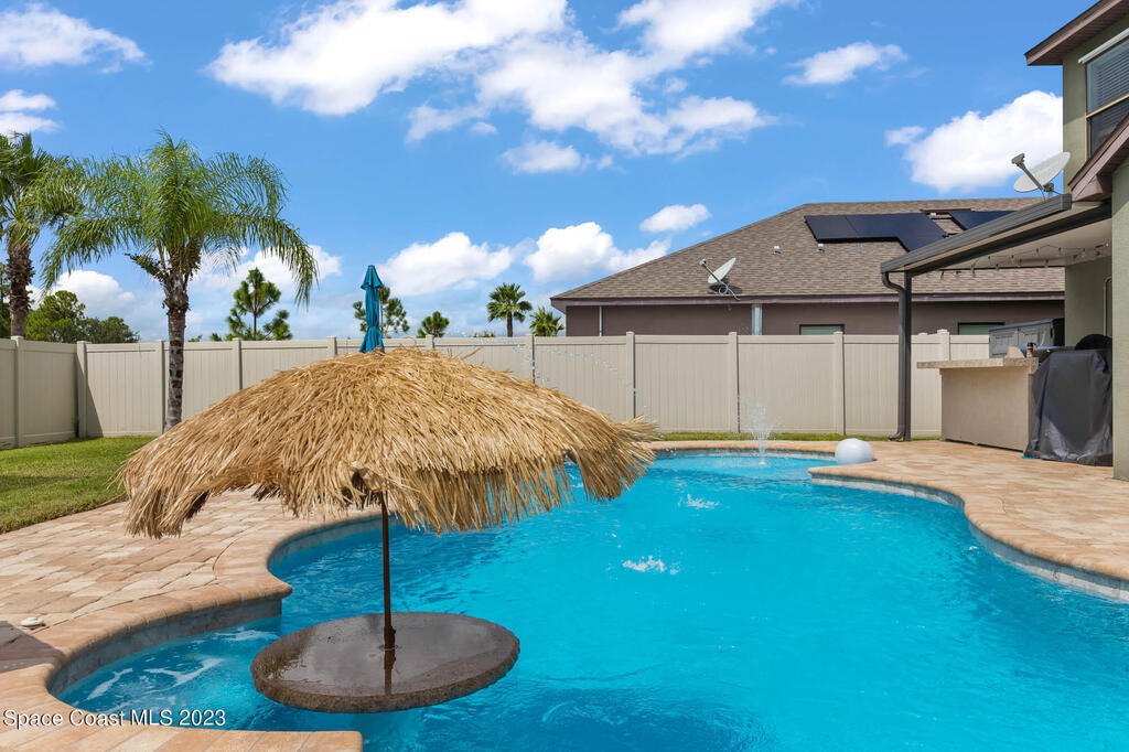 Back on the market. Welcome to your new home in the sought after community of Sawgrass Lakes. This beautiful 2 story almost 3000 square foot home offers 4 bedrooms, 2.5 baths with an upstairs loft and a 2 car garage. This gorgeous kitchen has stainless steel appliances, granite counter tops, a breakfast bar and plenty of cabinet space. The backyard is a tropical paradise with a saltwater pool, fire pit and an amazing outdoor summer kitchen and it is fully fenced in. Your friends and family will love this outdoor space during gatherings. Home is centrally located close to shopping, schools, and I-95. Come see this forever home for yourself.