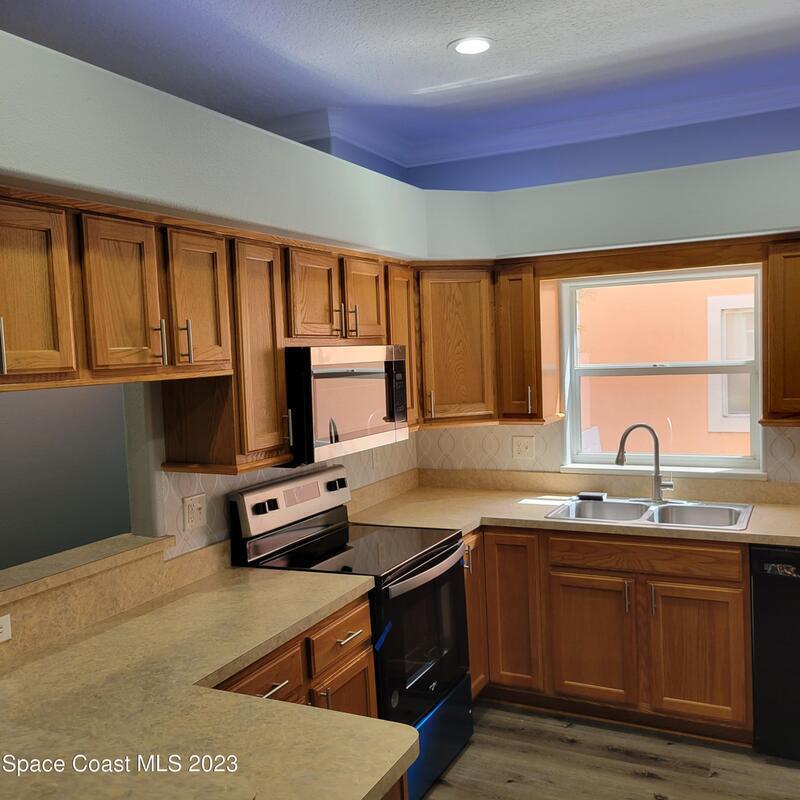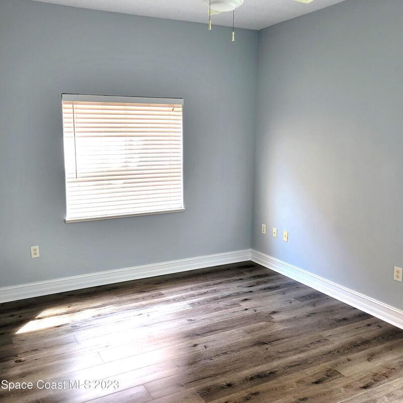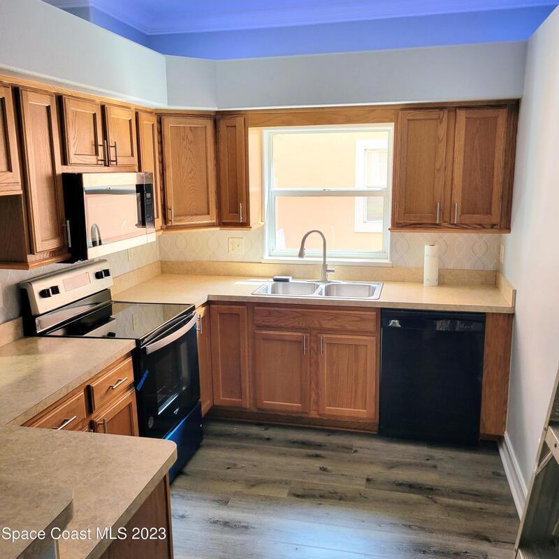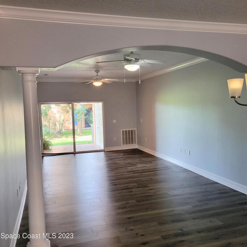 N/W -1st FL Corner Condo residence: You will appreciate the quality of upgrades just completed. Lowest price per sq ft in Brevard. Private 1 car garage and assigned parking, both close to unit. 9' 4 '' high ceilings detailed with crown molding. Kitchen includes wood cabinetry, recessed & tape lighting, pantry, NEW Stainless-steel range, refrigerator and microwave. New LVP flooring throughout, completely repainted, even the garage. Columns and arches detail separation of living dining rm. Spacious owner suite with walk in closet and spacious ensuite offering garden tub and enormous Walkin shower double vanity. Covered patio, Washer and dryer included. New lighting and Plumbing fixtures. Secluded Community featuring Large Pool & entertaining area, Gazebo and minutes to all the Island offers..