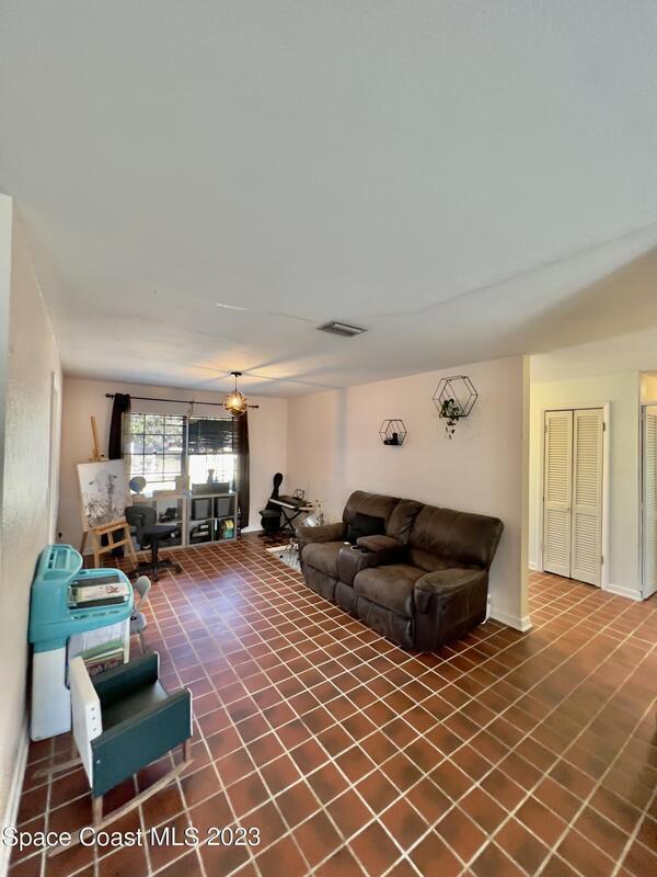 Solidly built 4 bedroom 2 bath masonry concrete home - located on a quiet corner cul-de-sac lot. Just shy of 2000 Sq ft under air. Expansive two car garage with enough room for projects or extra storage space. Large front yard and partially fenced back yard make great areas to enjoy the outdoors. Centrally located in Titusville, close to shopping, the space center, beaches & theme parks.