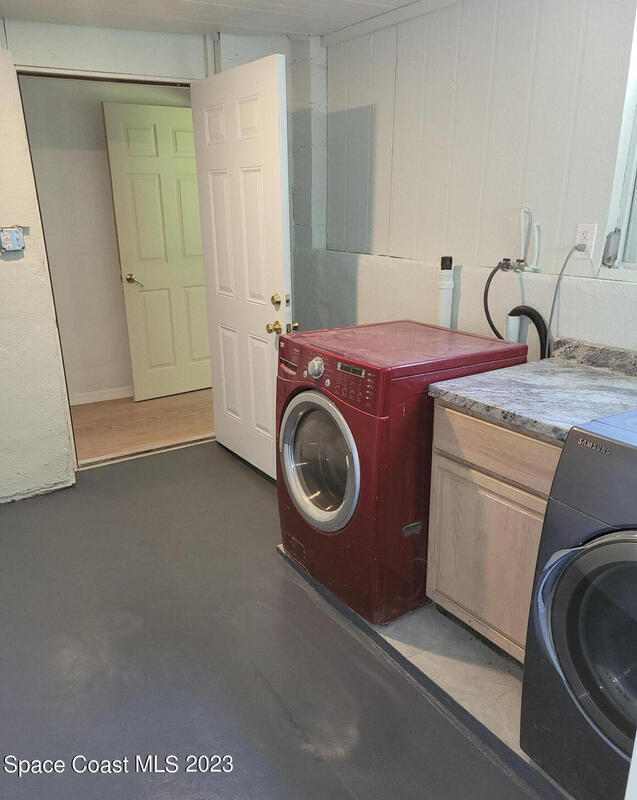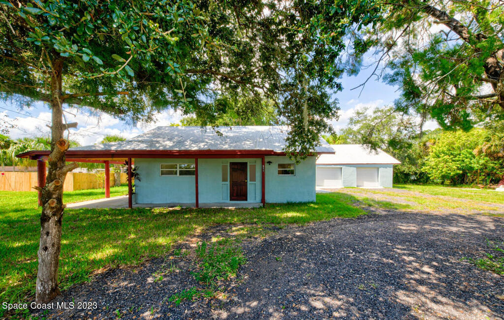 ((REPRICED TO SELL)) This Cocoa home with a HUGE Garage has 2 Bedrooms / 2 Full Baths -1333 sqft. of living with an expansive 3 Car Garage (approx. 1500+ sqft.) that resides on a .33 acre lot. Many updates have been made- including a large tiled walk-in shower off the primary bedroom, which also boasts a generously sized closet. The kitchen features newer cabinets and countertops that open up to the living and dining area. New electrical panels, main wiring, mini split AC and has been updated with Pex & PVC piping.. There's plenty of property to expand and plenty of parking with the circular drive. Close proximity to schools and just 20 mins. to the beach. Plus only 45 minutes to Orlando. ps...I will replace the whole roof with adjusted sales price, but only with contract :).
