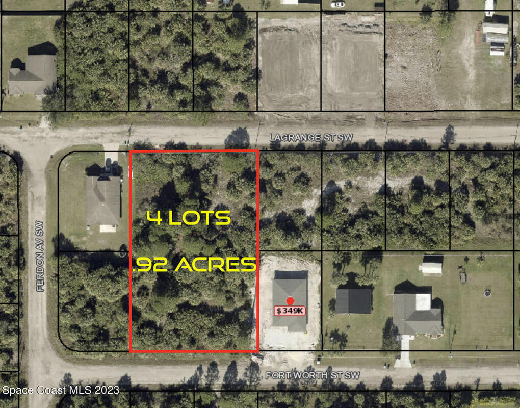 VERY RARE CHANCE TO OWN A FULL 4 LOT BLOCK (2 front + 2 behind) or leave it combined to make almost an acre. BRAND NEW ROADS!!! Perfect for a family compound or generational living! AMAZING OPPORTUNITY FOR A BUILDER LOOKING FOR EFFICIENCY! Very nice new builds all around this lot that are keeping values high!Amazing homesites ready to build multiple homes or one amazing site for privacy, toys, kids or pets. Perfect for a big family or homebuilding looking to save on having multiple homesites at the same location. Very rare find for buildable land ready to go in Palm Bay!