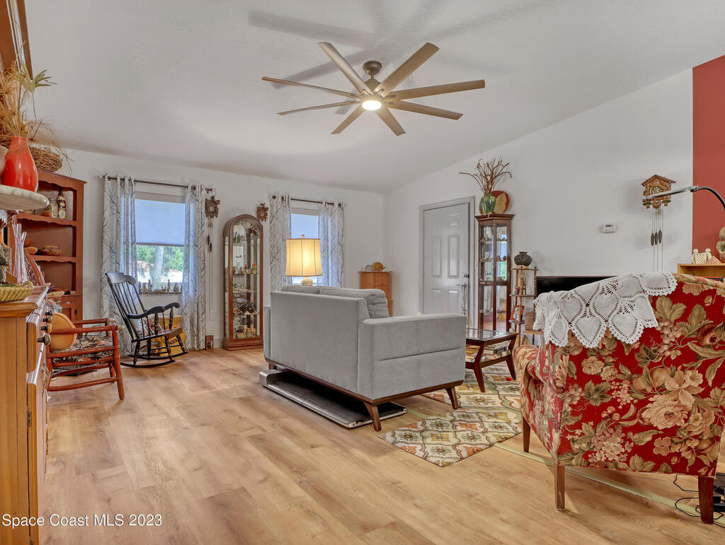 Welcome to your new home sweet home in the community of Port St. John! Nestled in a peaceful neighborhood, this beautifully renovated home with 2 bedrooms, 2 bathrooms, an additional room, perfect for an office, study, or whatever your heart desires. Home includes a new roof, freshly painted exterior and interior and a spotless garage with brand new insulated garage door, and an array of recent upgrades from all new flooring and baseboards and new modern light fixtures. Just a short drive from I95, it offers easy access to the Space Coast area's top employers. Plus, you're only 20 minutes away from the beautiful beaches.Disney and Universal theme parks are just a 45-minute drive away, making day trips a regular occurrence. Book your showing today!