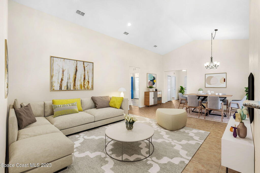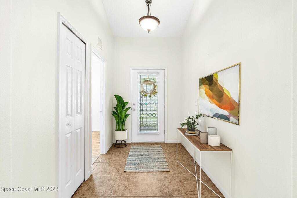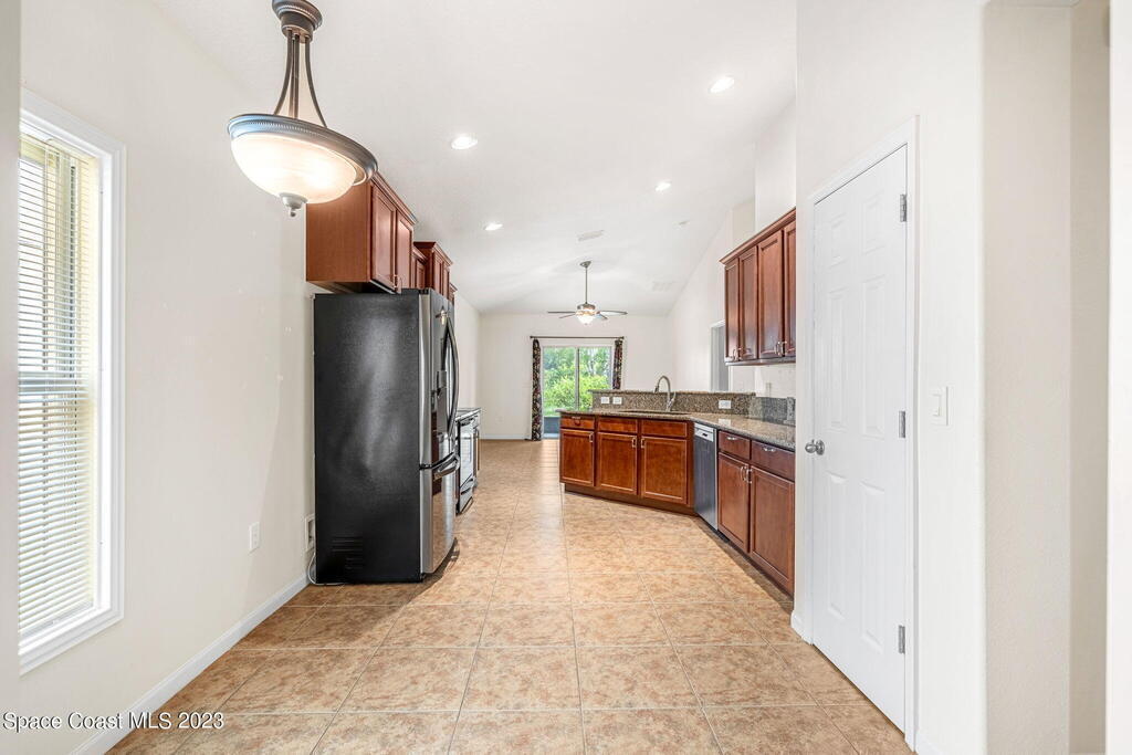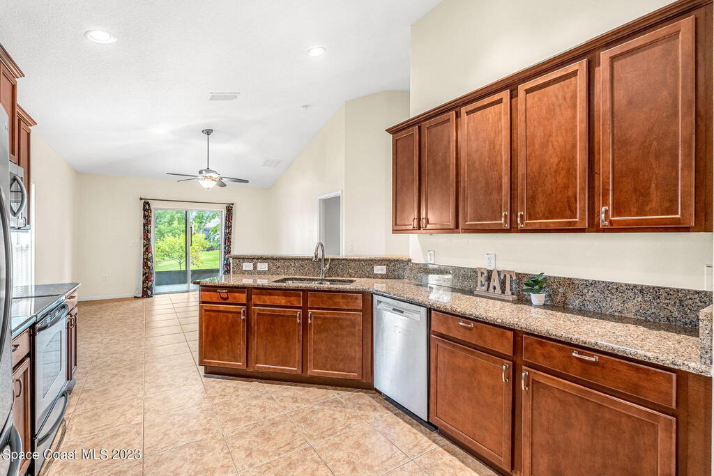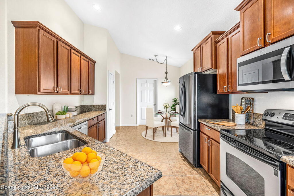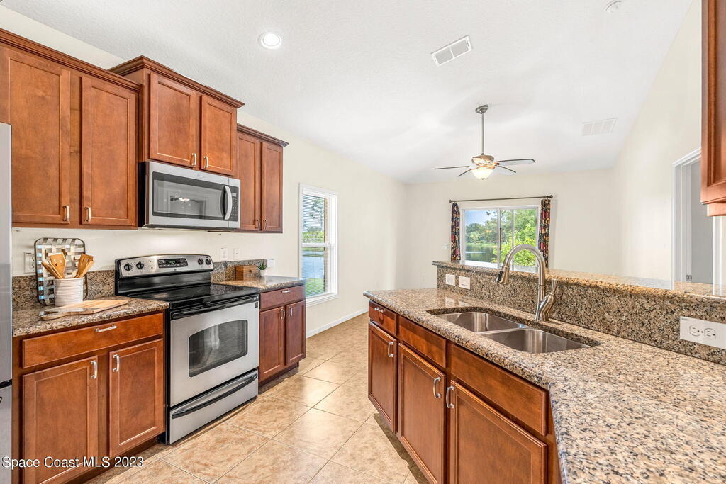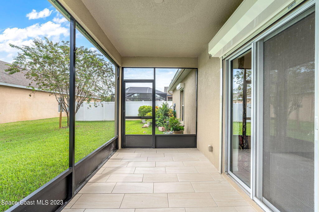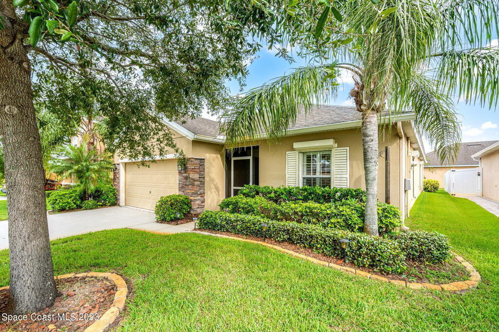 Enjoy the incredible sunset views and watch the rockets take off while overlooking the water from your screened Lanai! As you step inside this 4BD/2BA, you'll be greeted by many desirable features, such as the spacious foyer, vaulted ceilings, Tile, & vinyl/laminate flooring throughout- No Carpet! The Spacious Kitchen is a chef's delight w/ SS Appliances, Granite Countertops, tons of counter space & storage, plus a Breakfast Bar and nook. For those seeking peace of mind during Florida's stormy seasons, you'll find roll-down hurricane shutters, a valuable addition that provides security & protection. The curb appeal of this residence is nothing short of inviting, w/ exterior stone accents & established landscaping. It's a home that draws you in from the moment you arrive, promising warmth