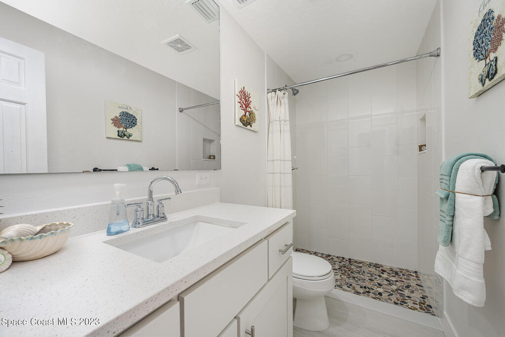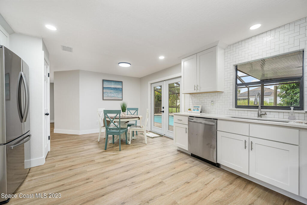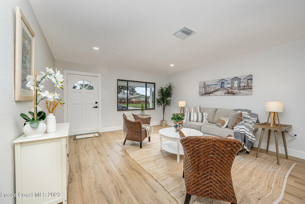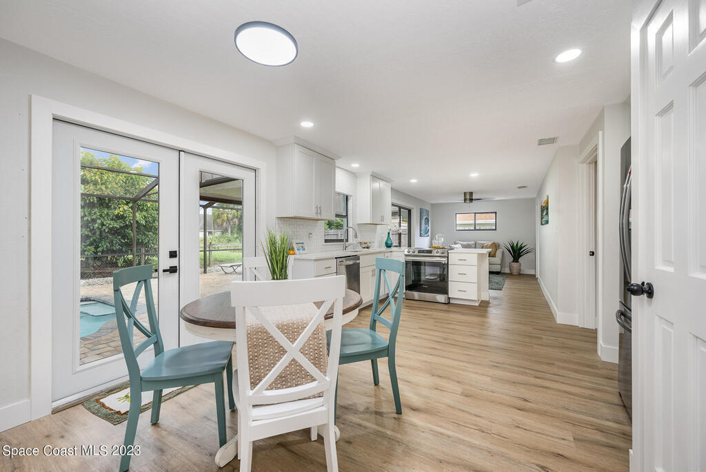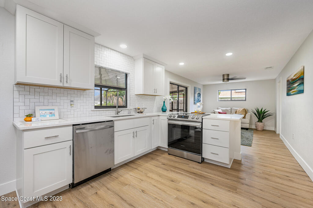 Welcome to 899 Jefferson Rd. Georgetown neighborhood one of the quietest streets in Rockledge. Block 4/2 pool home is beautifully & tastefully completely remodeled. Move in ready. Roof 2020, nearly new A/C w/ new duct work. Shaker white plywood cabinets w/ quartz countertops set off by all new appliances. New LVP flooring throughout entire home, new 5 1/4 baseboards & trim, new solid wood doors, freshly painted inside & outside, all new wall & ceiling texture, new lighting, new tiled bathrooms w/ new plumbing. New pool pavers & covered lanai to relax. NO HOA. 10-15 minutes to all of the restaurants & shops of Viera. Airport 45 min. & beach 20 min. Come see today, this home will not disappoint.