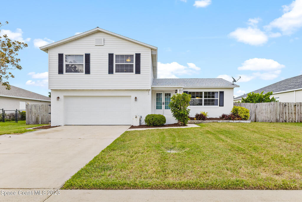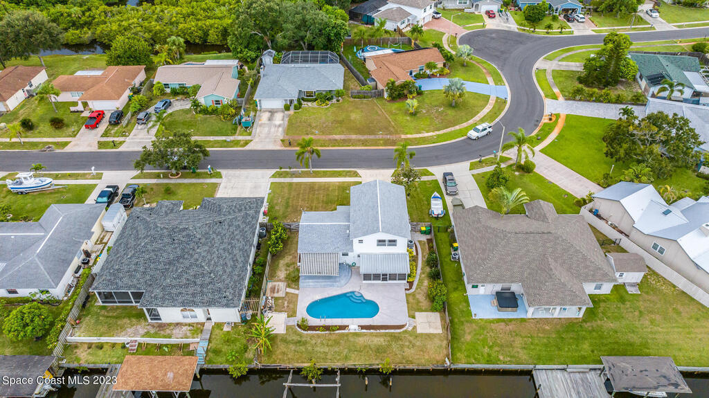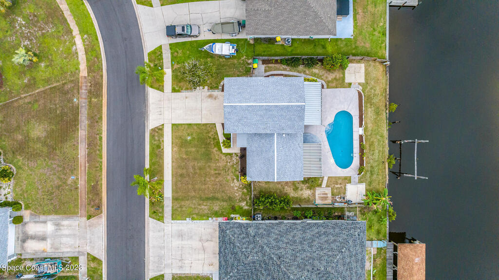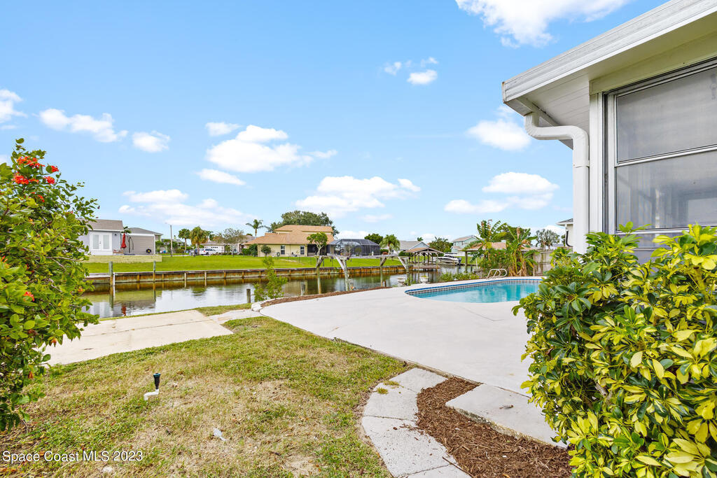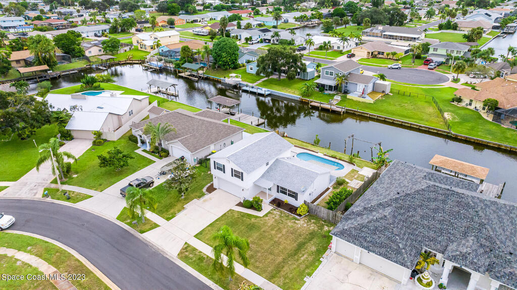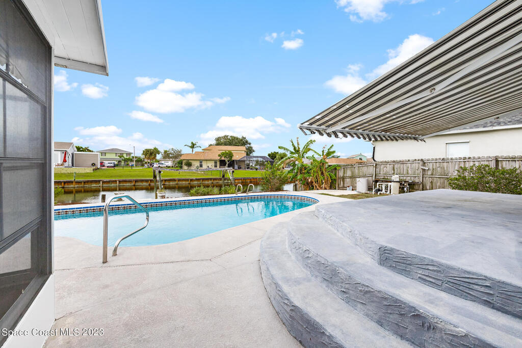Come live the FLORIDA dream on the water! Step into this beautiful canal front pool home. Minutes to Port Canaveral, SPACEX and BLUE ORIGIN. NO cast iron pipes here, ROOF 6 yrs old. Freshly painted inside and out, new carpet in the bedrooms. This 4 bedroom 3 full baths split level gives you lots of space to spread out, with possible 5th bedroom utilizing the downstairs family room and full bath with sliders to the screen enclosure. Slider in dining room gives you the cool breeze coming off the canal. Enjoy your morning coffee on the pool patio watching the dolphins and manatees swim by. This home is located in the back of the neighborhood for added privacy.