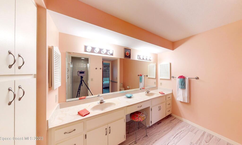 One-Of-A-Kind 3 Bedroom/3 Bath Condo In Highly Desirable Greenwood Village. Two (2) Master Bedroom Suites, Wood Plank-Look Ceramic Tile Throughout, Except Carpeted In Bedrooms. Updated Kitchen With Quartz Countertops/Newer Appliances. One New Complete AC System. Interior Laundry Room With Full Size Washer/Dryer. Two Large Screened Porches Backing To Green Space/Pool, Etc. PRIVATE TWO (2) CAR GARAGE PLUS TWO (2) ASSIGNED PARKING SPACES! Complex Features: GATED ENTRANCE, HEATED POOL, HOT TUB, SAUNA/STEAM ROOMS, EXERCISE ROOM, TENNIS COURTS, LIBRARY, PARTY ROOM & MORE. CABLE TV/DVR/INTERNET INCLUDED IN CONDO FEE! Location Affords Convenient Access To I-95, Shopping, Melb-Orlando Int'l Airport, Major Employment Centers, Indian River and Beaches. Full Furnishings (Many Antiques) Available!