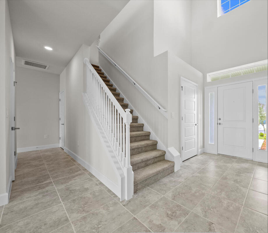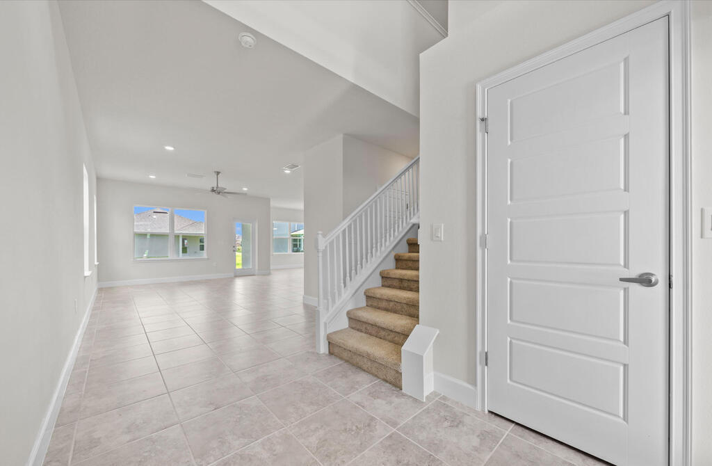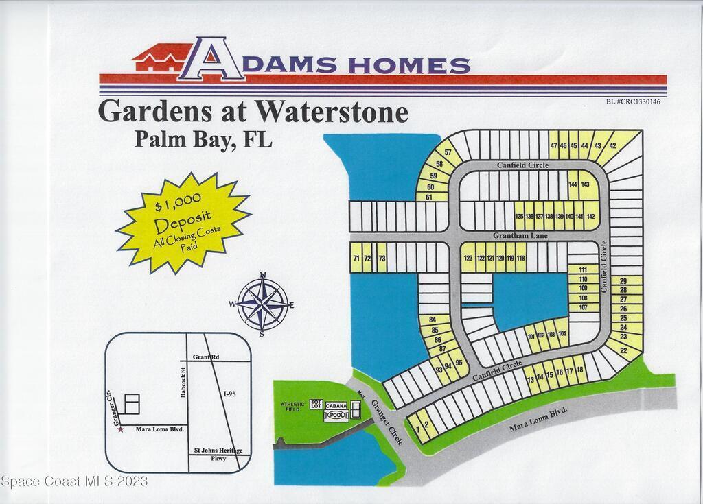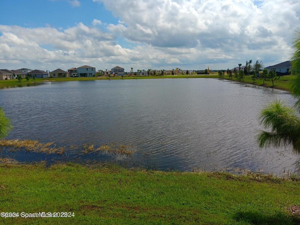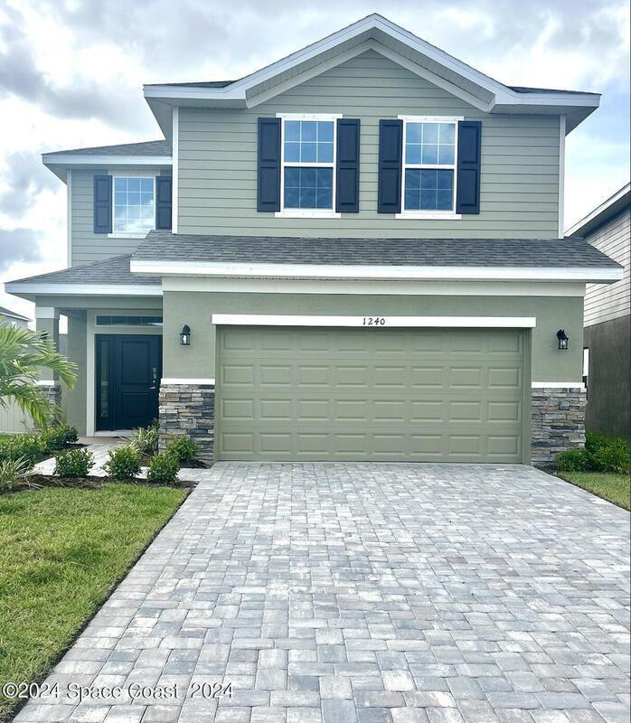 Express Move-In Homes, 3.99% interest rate plus appliances if closes in 30 days! Estimated payment FHA P&I $1,888.91/Mth. Only $1,000 deposit required, and all closing costs paid (excluding escrow accounts), saving you up to $7,500 with our approved lender! NEW CONSTRUCTION. NO CDD! This beautiful water lot home in the gated community of Gardens at Waterstone. This home features wood cabinets with bump,vcrown molding, and stainless steel appliances. The owner's suite includes a bath with double vanity sinks, a fiberglass 5' walk-in shower, and an enclosed toilet. Tile floors are throughout the living areas. Additional features include ceiling fans, coach lights, an irrigation system, 5 1/4'' baseboards, Moen brushed nickel fixtures, 5-panel doors, a spacious loft, and a covered lanai. Paver driveways and stone accents included! Real estate agents must register buyers at the model home at 1000 Canfield Circle Palm Bay, Fl 3290