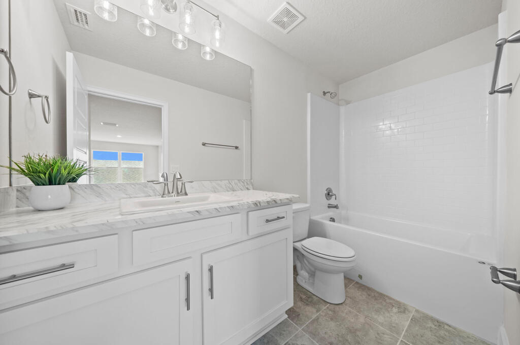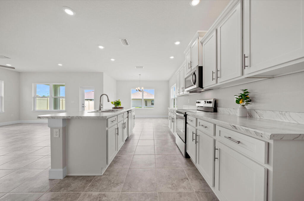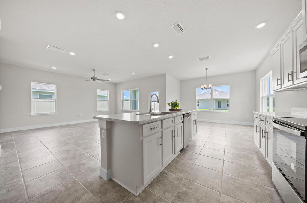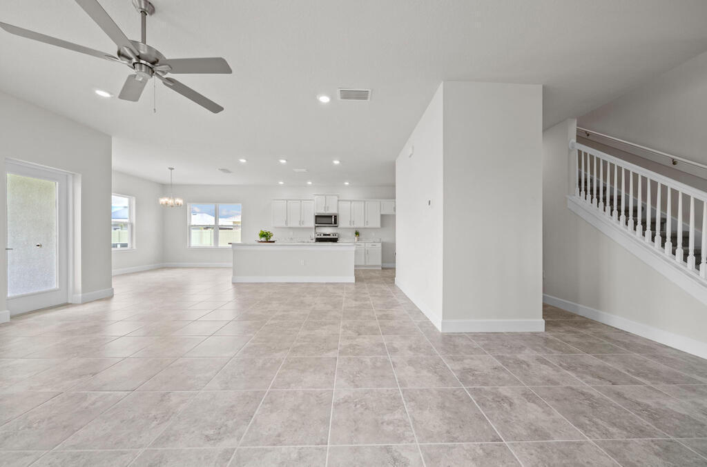 Express Move-In Homes, 3.99% interest rate plus appliances if closes in 30 days! Estimated payment FHA P&I $1,888.91/Mth. Only $1,000 deposit required, and all closing costs paid (excluding escrow accounts), saving you up to $7,500 with our approved lender! NEW CONSTRUCTION. NO CDD! This beautiful water lot home in the gated community of Gardens at Waterstone. This home features wood cabinets with bump,vcrown molding, and stainless steel appliances. The owner's suite includes a bath with double vanity sinks, a fiberglass 5' walk-in shower, and an enclosed toilet. Tile floors are throughout the living areas. Additional features include ceiling fans, coach lights, an irrigation system, 5 1/4'' baseboards, Moen brushed nickel fixtures, 5-panel doors, a spacious loft, and a covered lanai. Paver driveways and stone accents included! Real estate agents must register buyers at the model home at 1000 Canfield Circle Palm Bay, Fl 3290