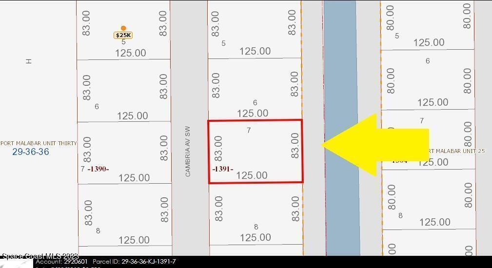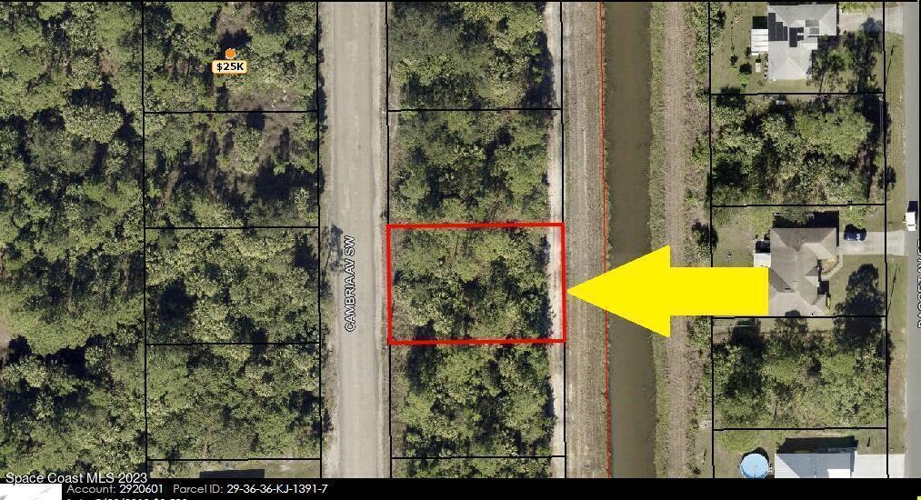 0.24 acre buildable single family residential lot available in Port Malabar Unit #30 of Palm Bay. Located in the southwest section with a drainage right-of-way easement in the back of the lot, this lot is just 2.2 miles - 5 minutes to Westside Elementary School, 4.1 miles - 8 minutes to the Publix Supermarket, 15 miles - 28 minutes to Melbourne Airport, and 16.9 miles - 31 minutes to the beaches of Indialantic. From exit #173 of I-95 go west on Malabar Road NE for .2 miles, left on San Filippo Drive SE for 7.3 miles, and left on Cambria Avenue.