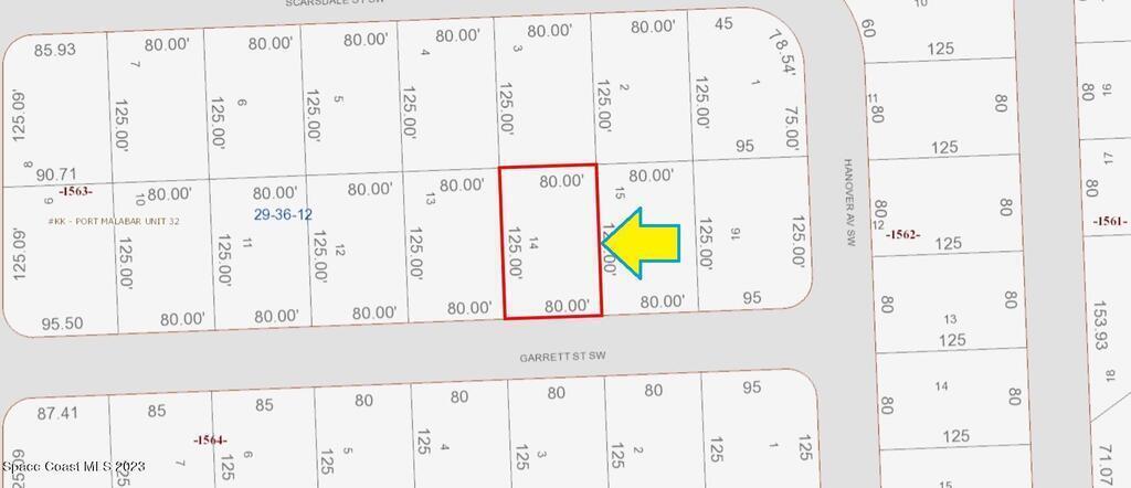 0.23 acre buildable residential lot available in Port Malabar Unit 32 of Palm Bay. Located in the southwest section, this lot is just 2 miles - 5 minutes to Bayside High School, 2.9 miles - 7 minutes to the Winn Dixie Supermarket, 12.3 miles - 25 minutes to Melbourne Airport, and 15.4 miles - 32 minutes to the beaches of Indialantic. From exit #176 of I-95 go west on Palm Bay Road for .7 miles, left on Minton Road for 2.5 miles, right on Malabar Road for 1.0 mile, left on Garvey Road for 2.0 miles, and left on Garrett Street. The lot will be on your left.