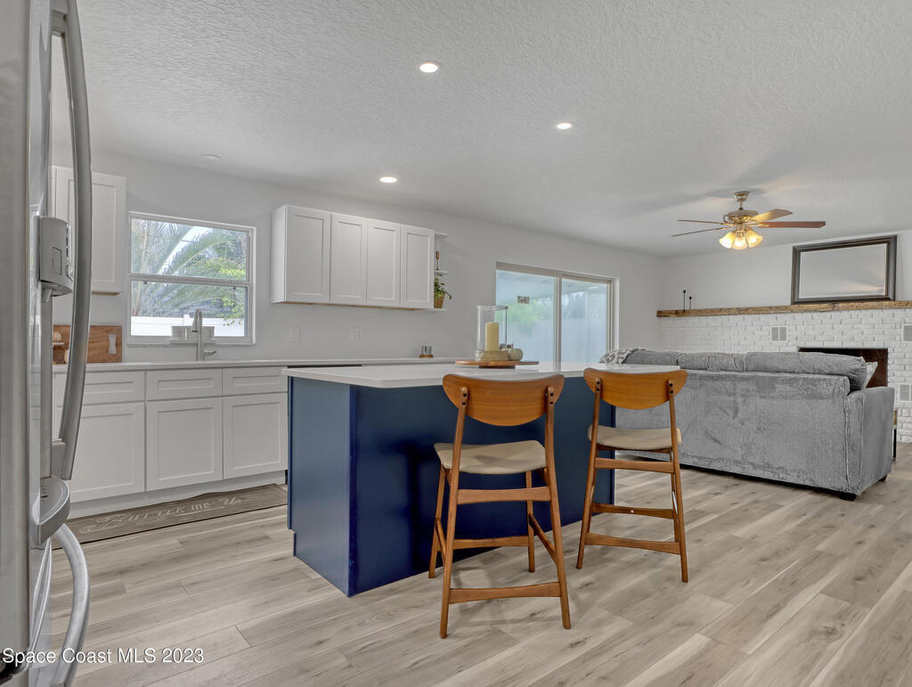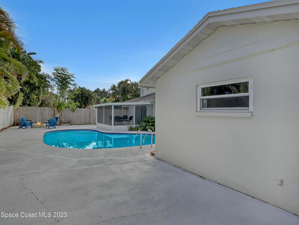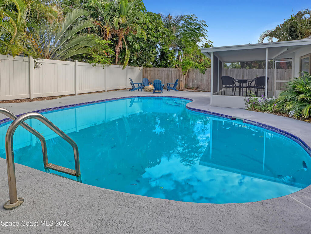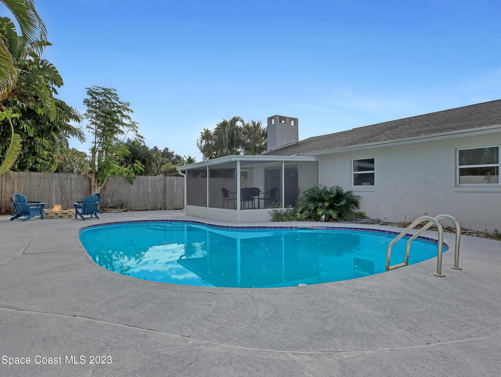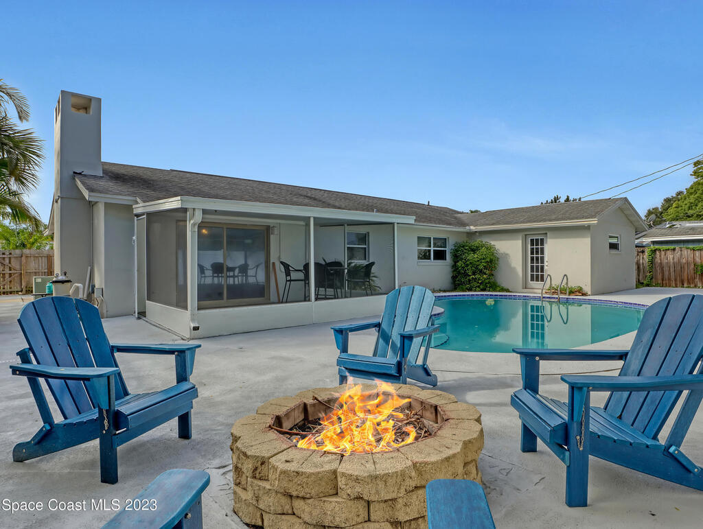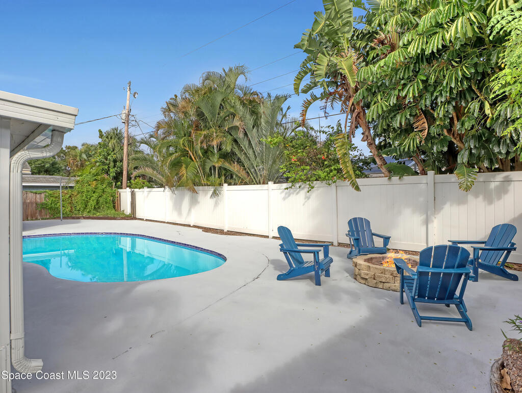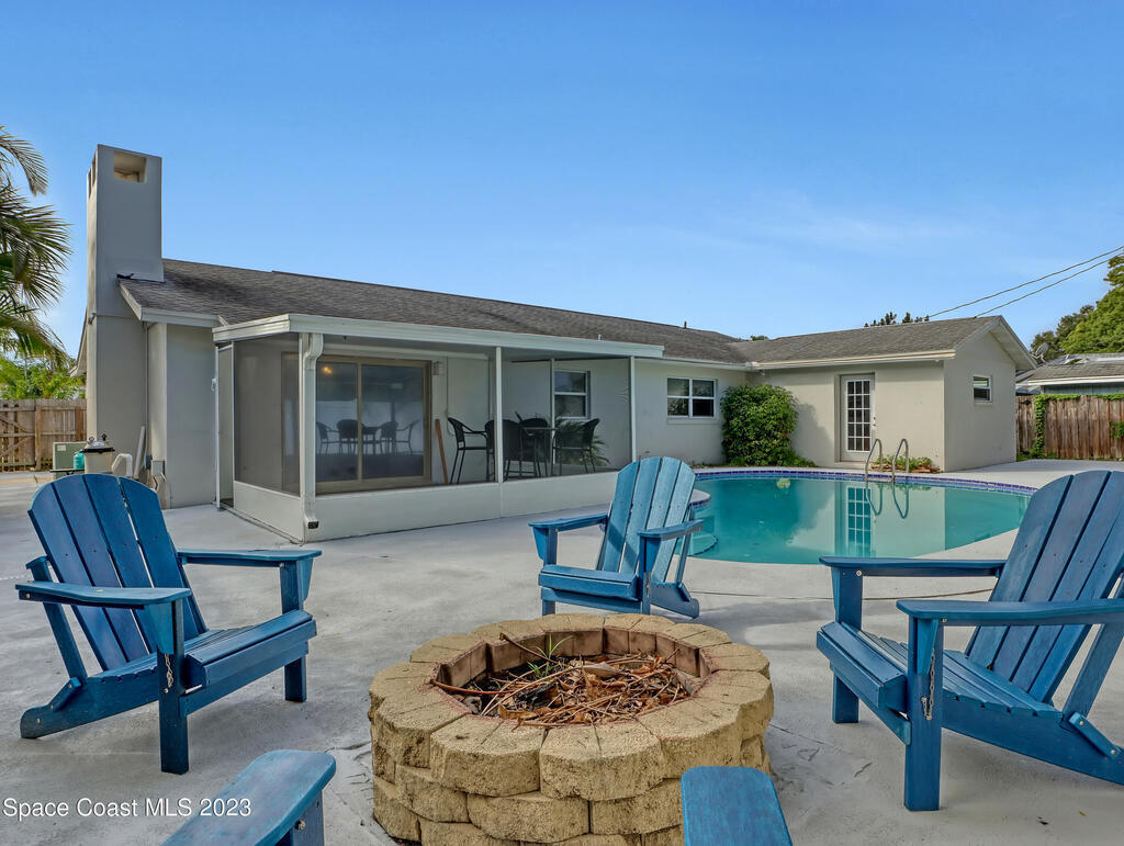 Beautifully updated pool home in the heart of Merritt Island. Gorgeous kitchen with white shaker cabinets with granite counter-tops, huge island and stainless-steel appliances. The kitchen is open into the family room which features an amazing wood burning fireplace and views of the backyard and pool. There is a large living room that is perfect for a growing family. The primary bedroom has a walk-in closet, office and bathroom with double sinks, jetted tub, and shower. The backyard is completely fenced and features a fire pit for outdoor entertainment.