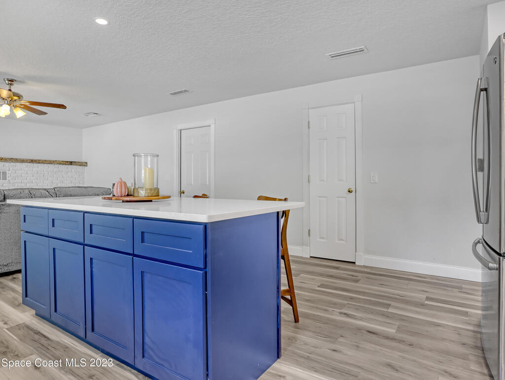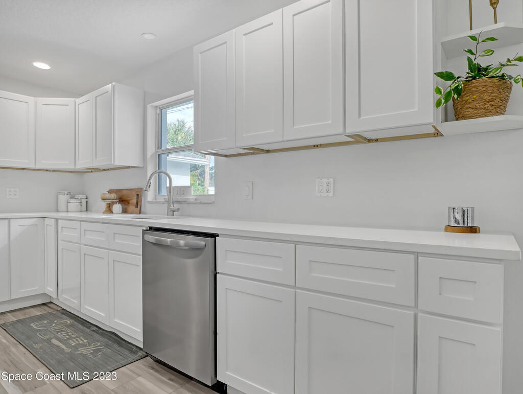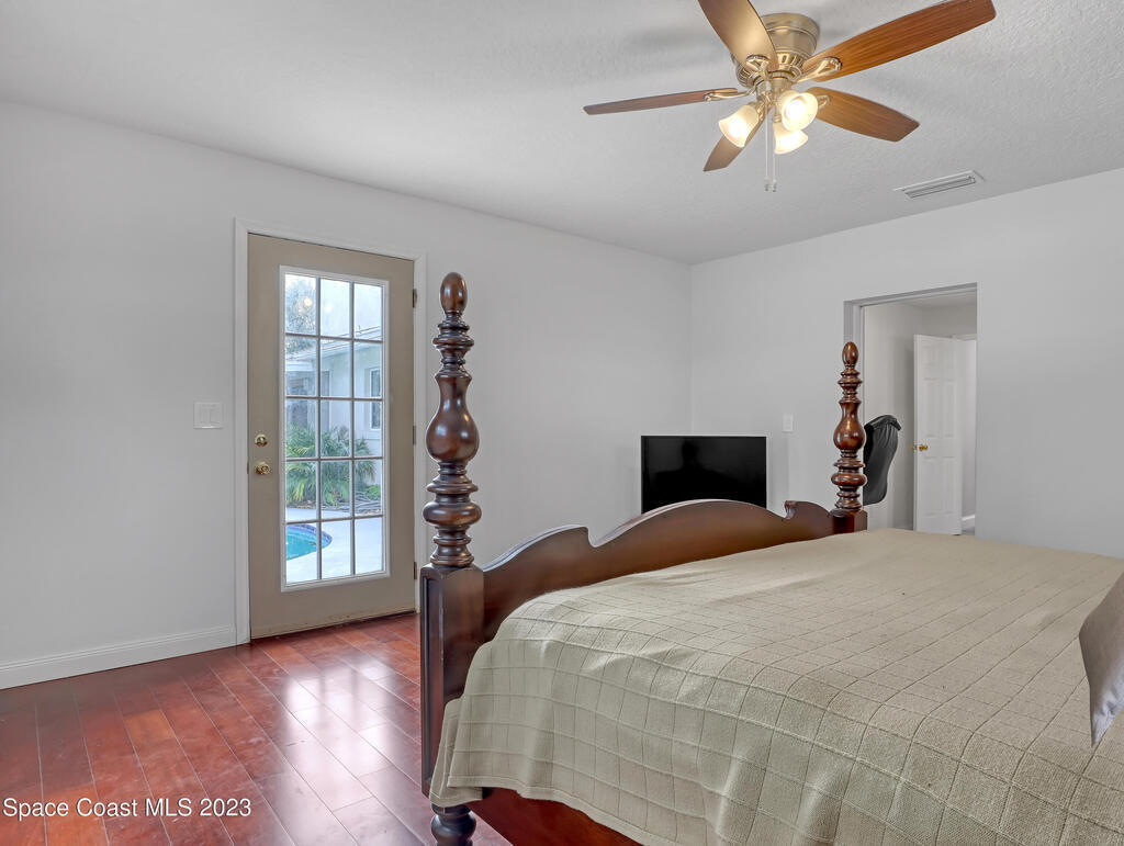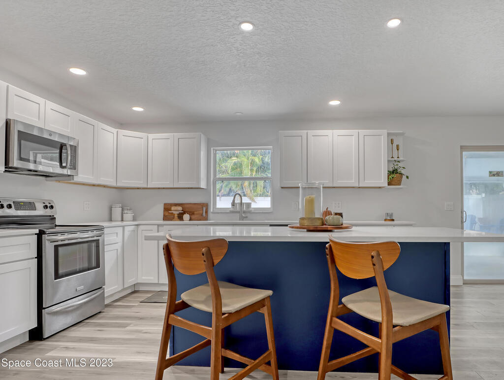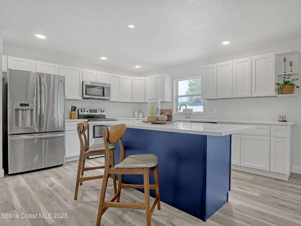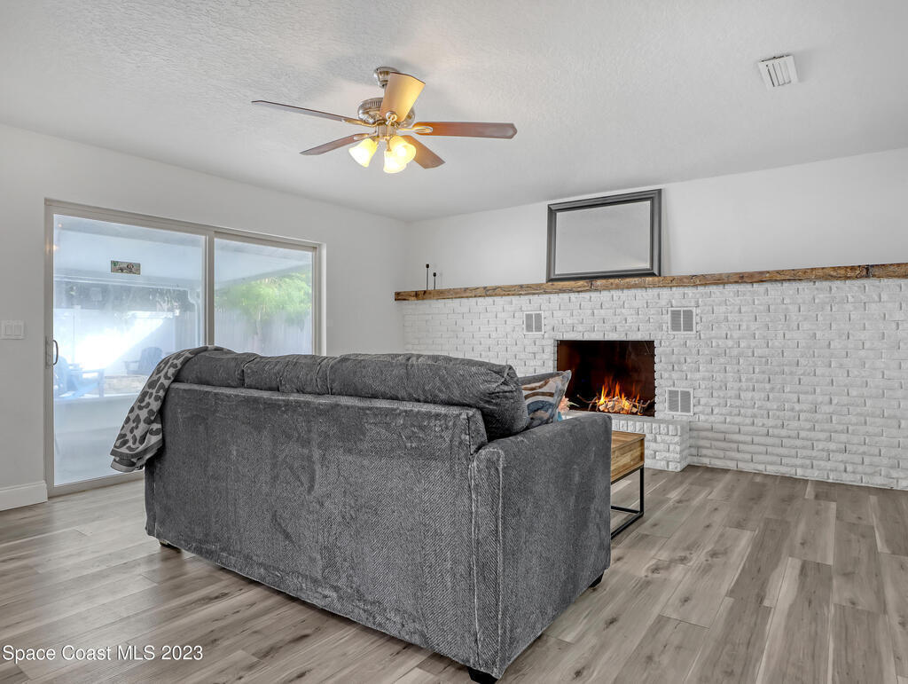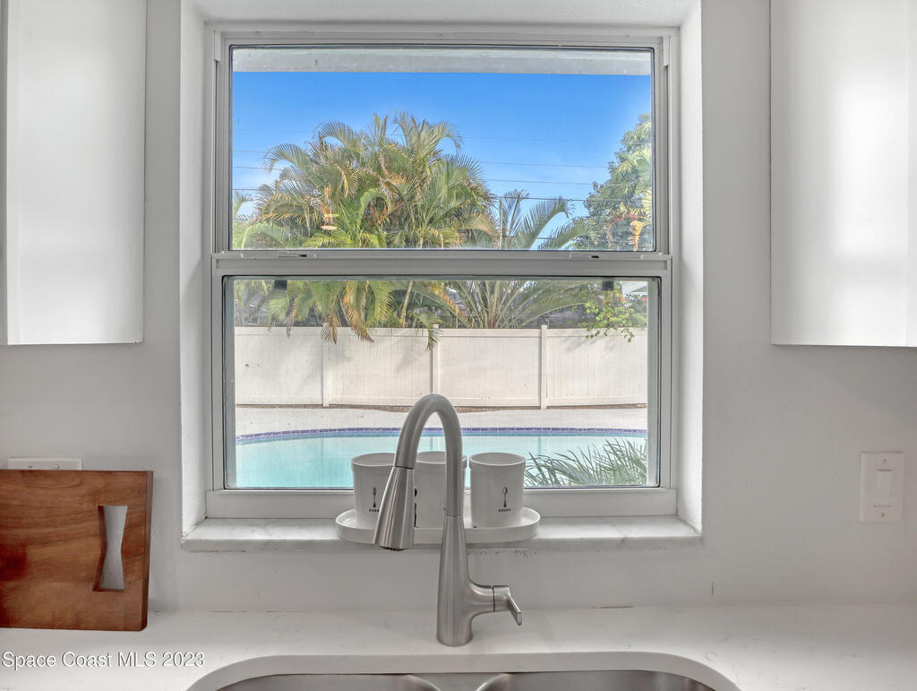 Beautifully updated pool home in the heart of Merritt Island. Gorgeous kitchen with white shaker cabinets with granite counter-tops, huge island and stainless-steel appliances. The kitchen is open into the family room which features an amazing wood burning fireplace and views of the backyard and pool. There is a large living room that is perfect for a growing family. The primary bedroom has a walk-in closet, office and bathroom with double sinks, jetted tub, and shower. The backyard is completely fenced and features a fire pit for outdoor entertainment.
