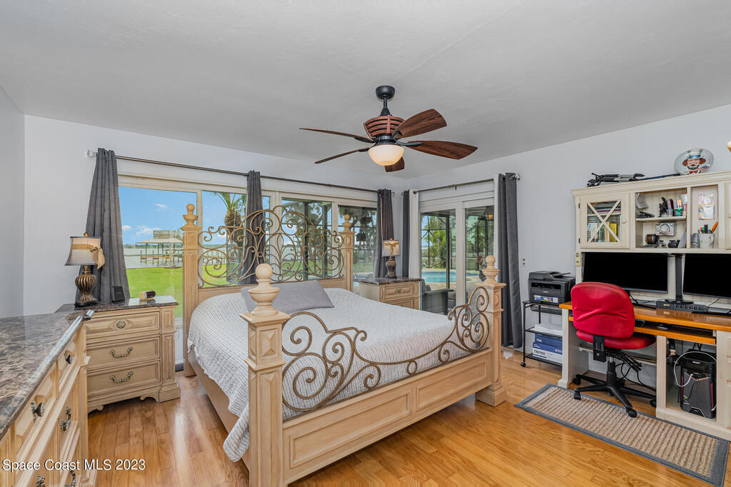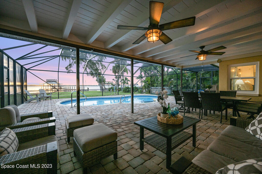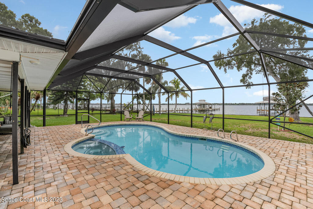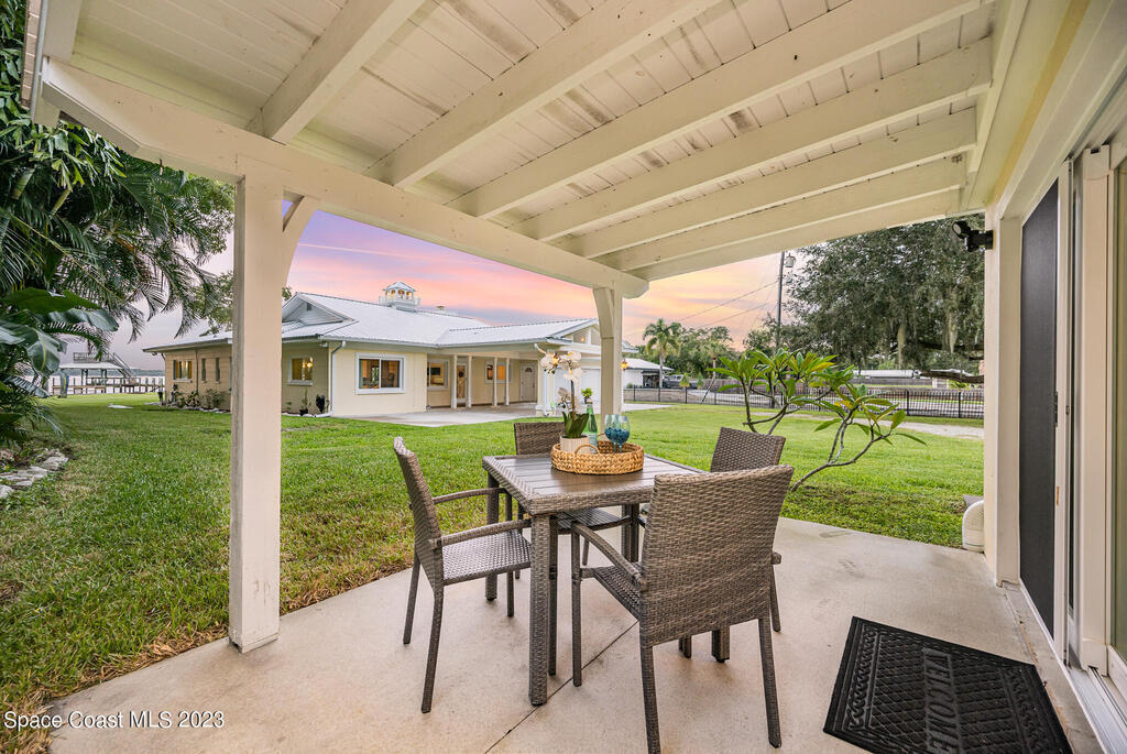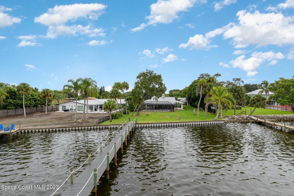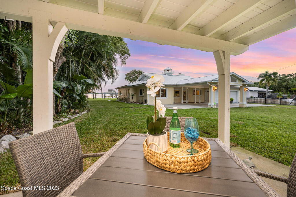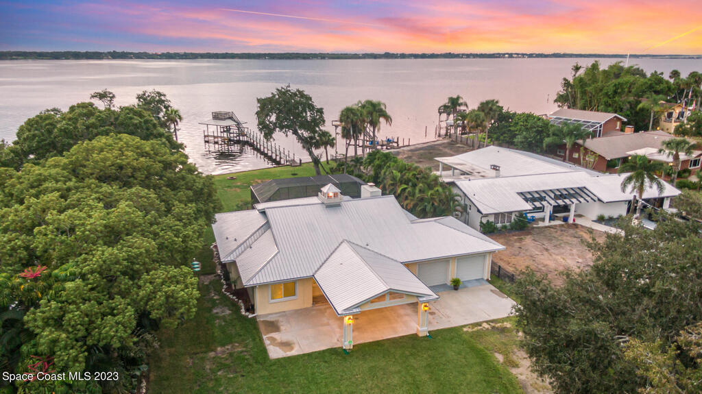 Nestled on a cul-de-sac. The private gated entrance welcomes you home through the canopy of palm and oak trees to a luxurious and exclusive destination. Crows nest atop New trex dock! Over 100' of riverfront facing W. to the intercoastal waterway brings the most breathtaking views of the sunset. Resort-like porte-cochere entrance drenched in natural light from skylights and vaulted ceilings. The open-concept gourmet kitchen has granite counters. Serene M/BR that flows to the spa and backyard retreat, Charming all inclusive 1bedroom guest cottage . Move in ready, extremely well maintained. Metal roof replaced 2018. Hurricane windows & doors, new aerobic septic 2023. Covered RV site with concrete pad!