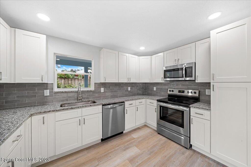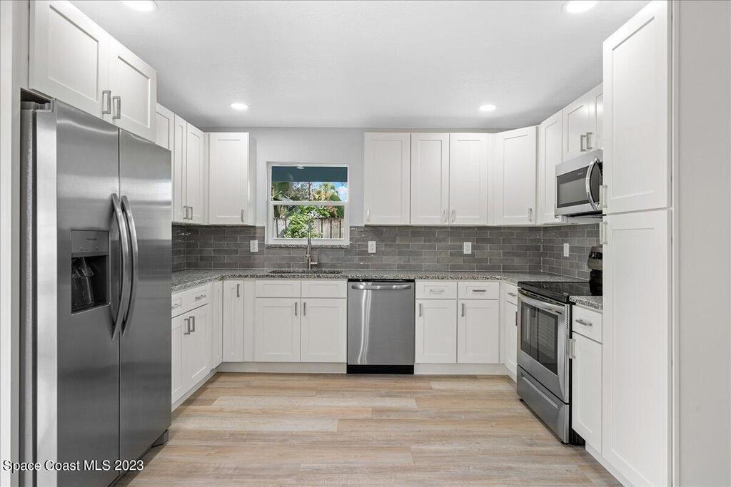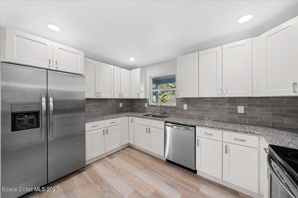 WOW! This jaw dropping Port St John home has been gorgeously remodeled and sits on almost a quarter acre! All of the hard work has been taken care of for you at this 2 bedroom 2 bath beauty! It is completely move-in ready and has NO HOA! This is the perfect starter home or for anybody looking to downsize! Cleaning will be a breeze with vinyl flooring throughout the whole home! Bring all of your toys because there is TONS of room in your backyard! **Shower glass has been installed in the primary bathroom as well as a screened enclosure on the back porch. Both were done after pictures were taken. Come take a look for yourself!** All information listed in the MLS is intended to be accurate but not guaranteed by Broker/Agent/MLS.