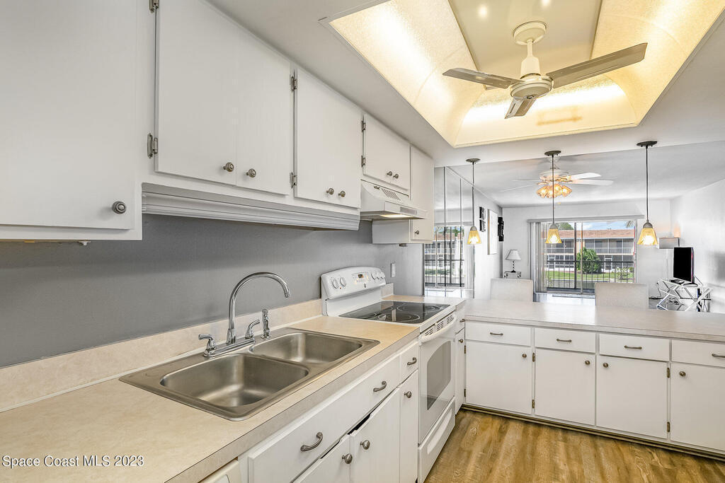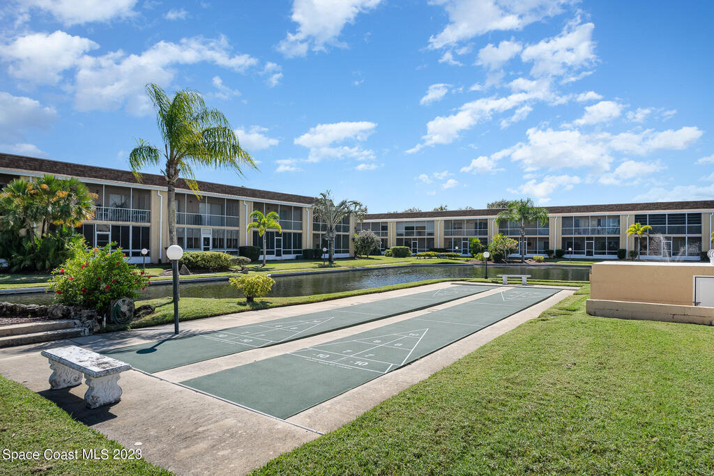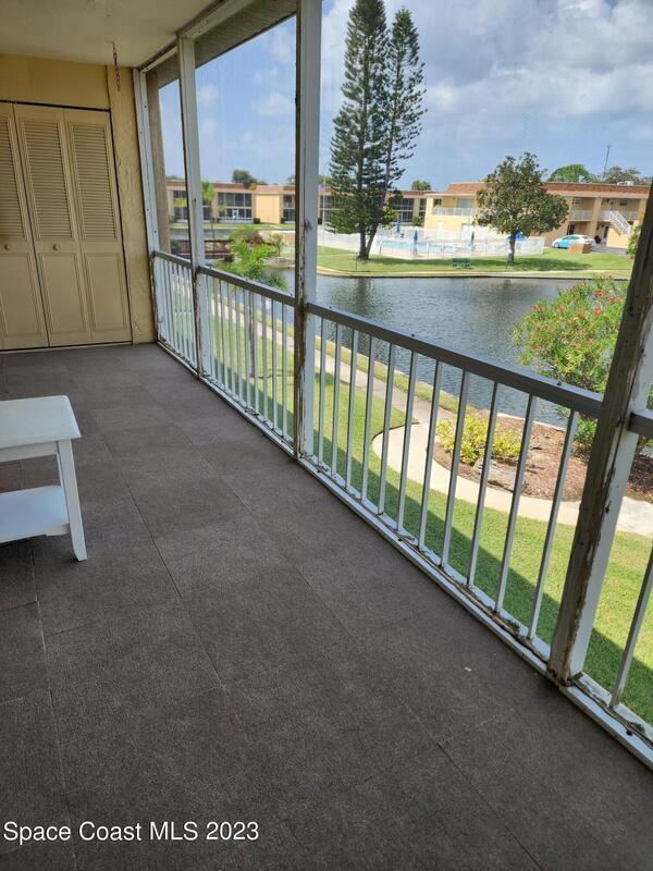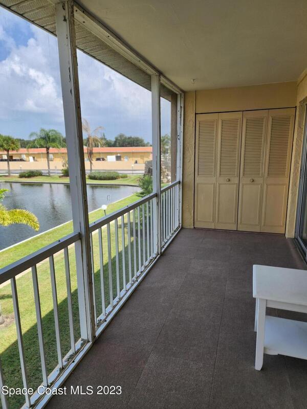 Active 55+ community! Beautiful grounds with multiple ponds and fountains. Fantastic amenities include, Clubhouse with pool, Tennis court, shuffleboard, rv/boat storage and putting green. The unit has some great updates, including all new flooring and a new primary bathroom with zero entry into the shower. In-unit laundry with full size washer and dryer and newer hot water heater. This 2 bedroom split plan has plenty of living space with an eat in breakfast bar, dining area and living room. The screened balcony overlooks the huge pond and water feature as well as 2 storage closets.
