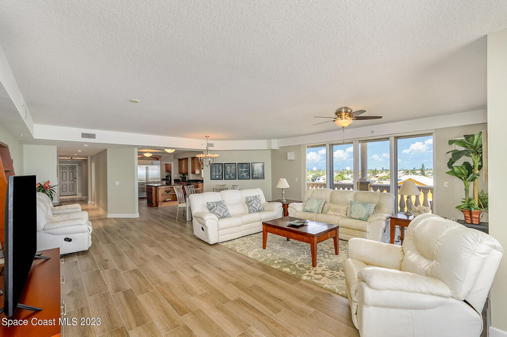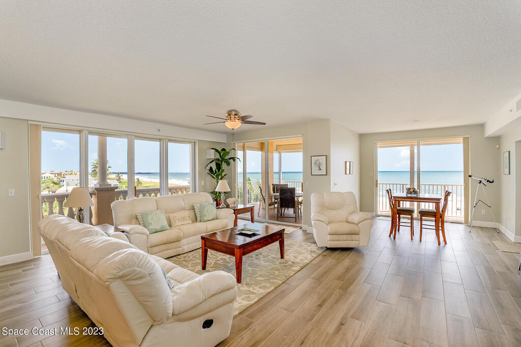 Spectacular opportunity! 5th floor Oceanfront Penthouse encompasses the entire top floor of extremely well-maintained Ocean Estates. Over 4,600 SF of living space plus 4 balconies with Ocean to River views in every direction. 4 bedrooms, 3 & 1/2 bathrooms, and multiple generously sized living and dining areas. Private elevator entry with stately Foyer and Rotunda upon entry. An enormous Living area near the entry is currently used as a game room, leading to a passthrough wet bar with wine fridge, prep sink, ice maker, walk-in pantry, with adjacent Powder Room. The Chef's Kitchen outfitted with Subzero and Meile appliances opens to the spacious Great Room and features water views in multiple directions. A wrap-around balcony off the Kitchen circles the Great Room for entertaining while...