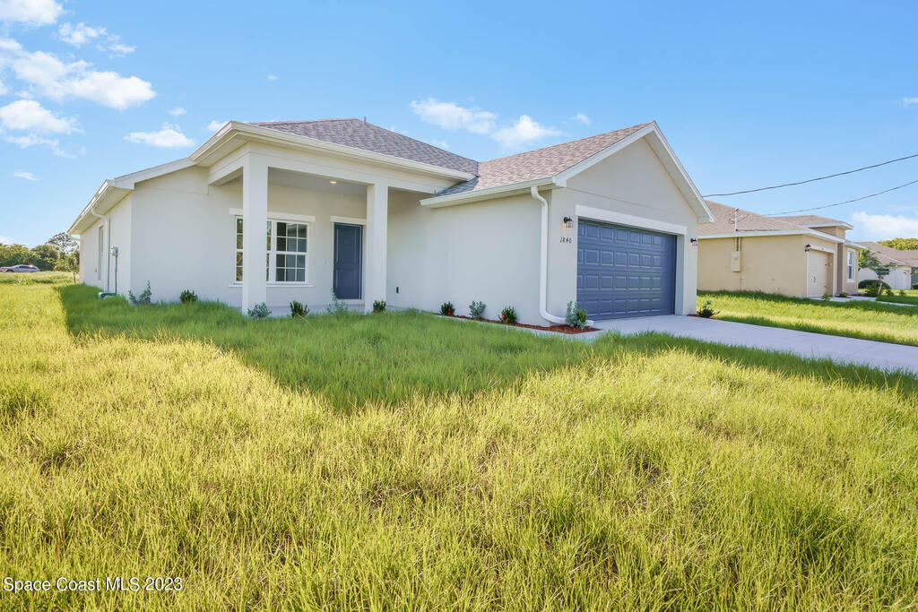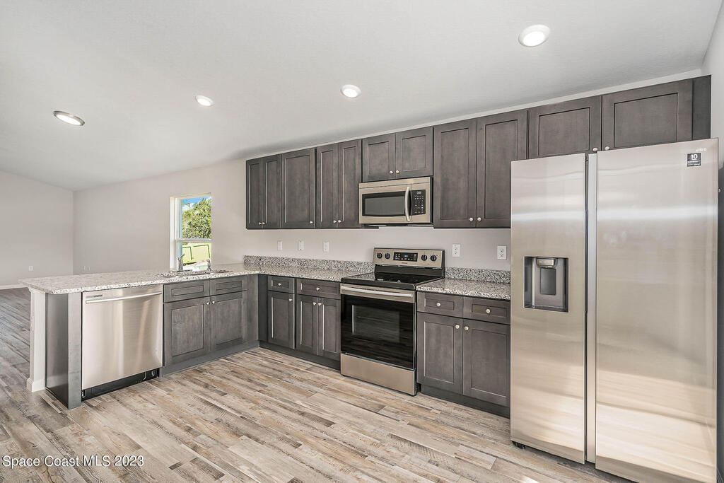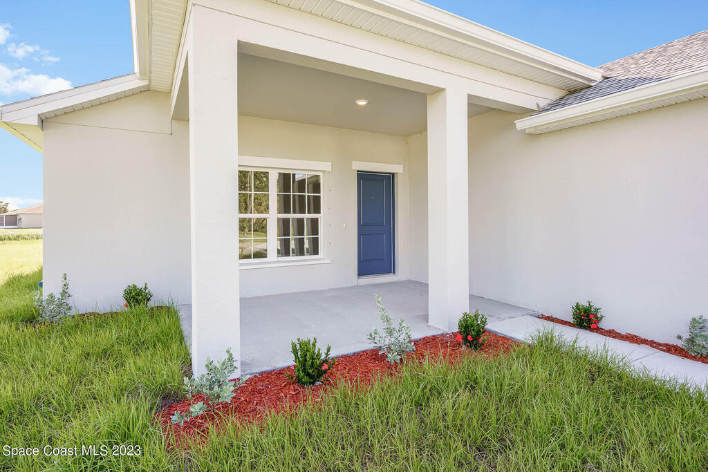 Move in before the holidays! City! Water New construction home includes features considered upgrades with most builder's and not often found in this price range. This home features 4 bedrooms, 2 bathrooms and 2 car garage. Large entry porch leads to vaulted great/dining room with island kitchen. Lots of natural light from large windows and sliding glass doors to the covered lanai. The kitchen offers 36 inch bump and staggered cabinets with soft close doors and drawers, stainless appliances, beautiful granite counters with double under mount sink and side-by-side refrigerator. Luxury vinyl plank flooring and tile throughout. Recessed lighting, 50 gal. hot water tank, R38 insulation, 15 SEER A/C. Smart home. ***Please note photos are of same model, but different home.