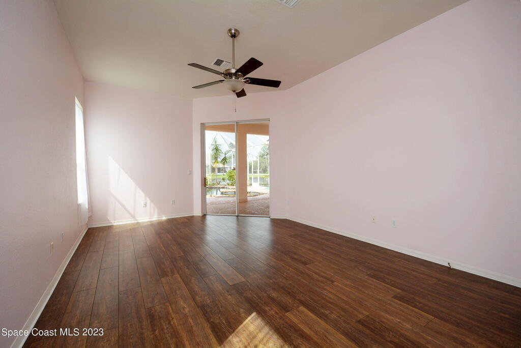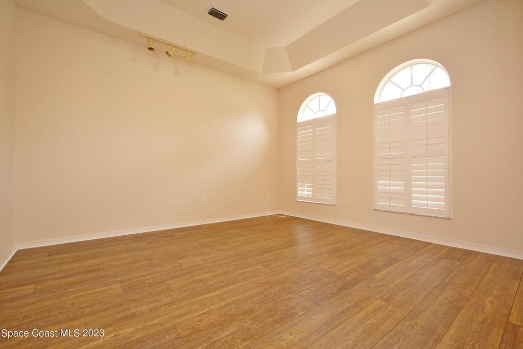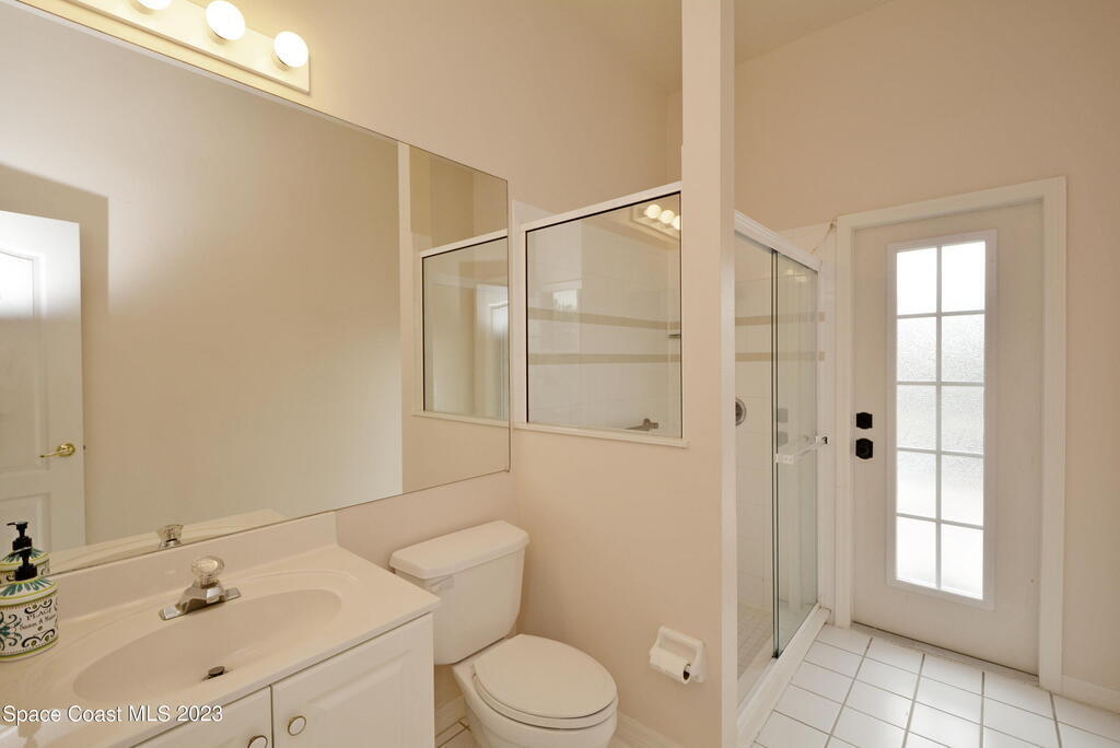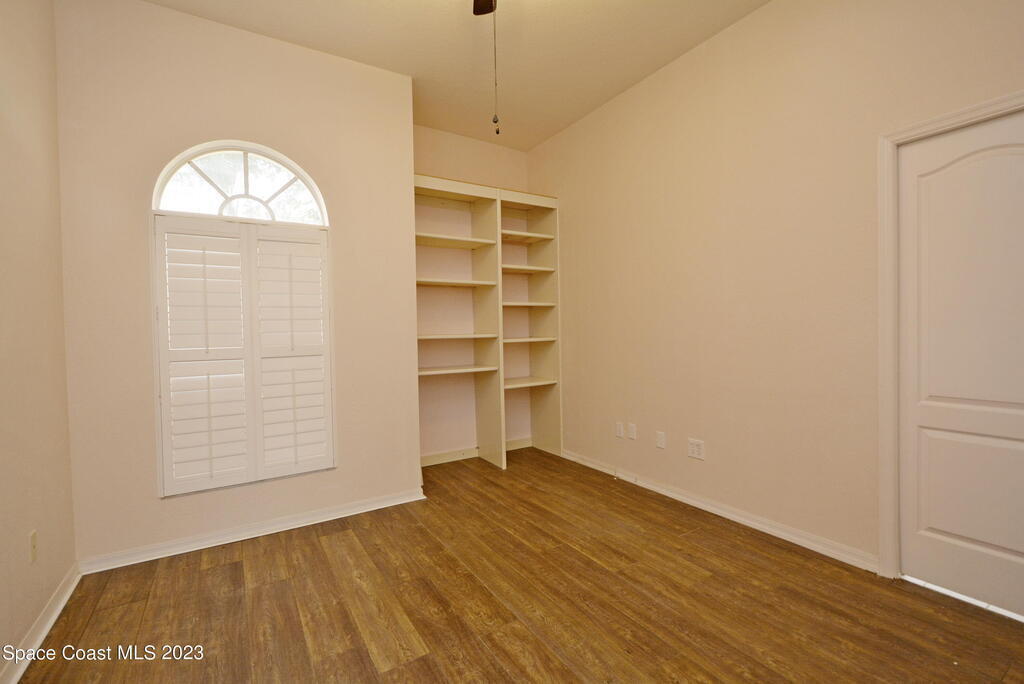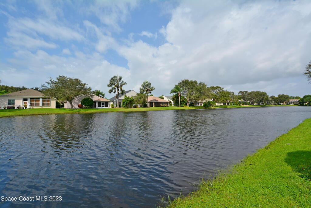 This beautiful lakefront property has 4 bedrooms with a 5th bedroom/office with built-in shelving and includes a second bedroom/bathroom suite, providing an area of extra privacy. The open floor plan with lofty ceilings has sliding glass doors surrounding the pool which welcomes sunlight in from all angles and provides views of the spectacular rock surface pool with waterfall. This home was the model for the tranquil subdivision of Mandarin Lakes in a great central location with easy access to the Suntree golf community, and a short drive to The Avenue in Viera, tennis courts, and the beaches.