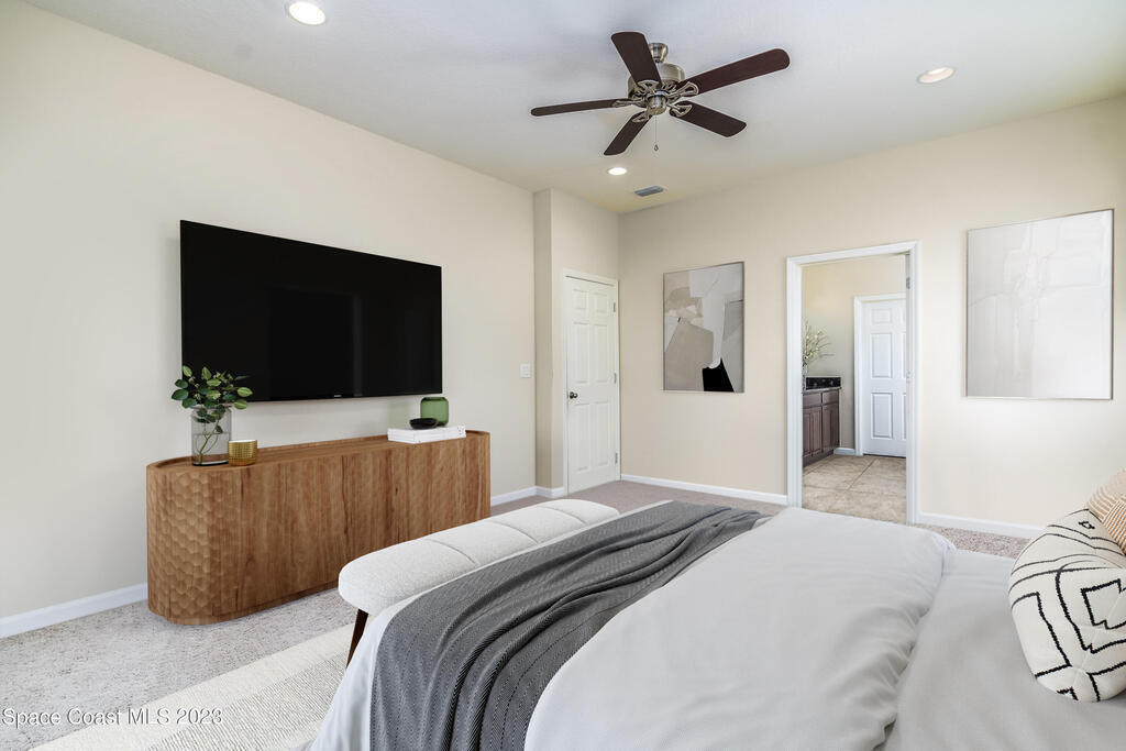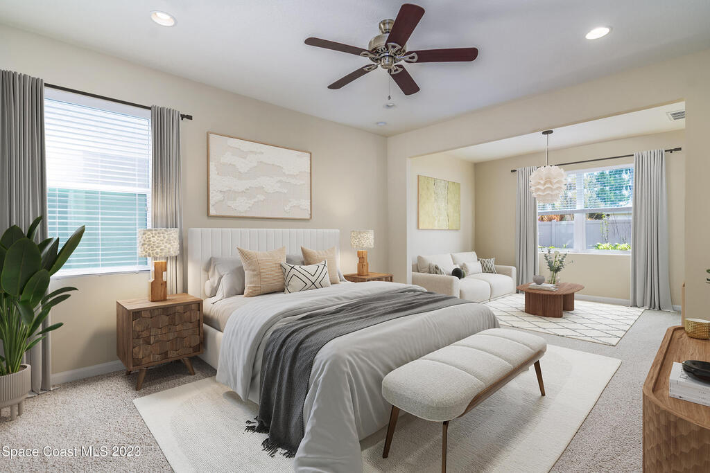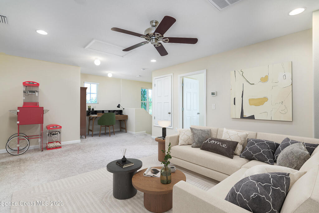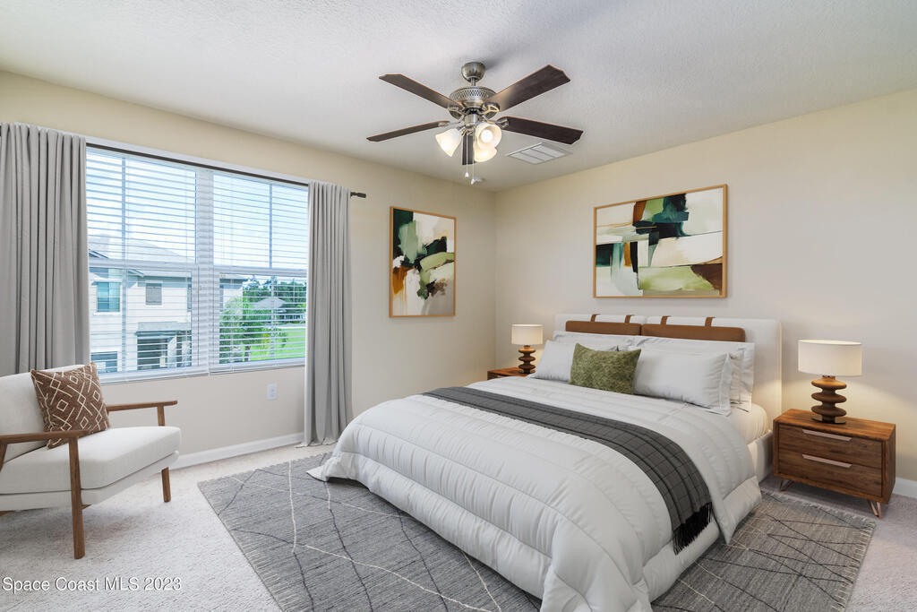 48 hr. Kickout Clause, continue to show. This Viera East 2,619 sqft home offers 4 bdrms, a large loft & 2.5 baths. Alluring details start outside w/brick pavers, decorative shutters, stone accents, & fresh landscaping. The open layout boasts tile floors throughout the main area, large kitchen w/walk-in pantry, staggered cabinets, oversized granite island & SS appliances. The casual dining connects to a welcoming great room w/sliders leading to the ample trussed porch & partially fenced backyard. The ground floor owner's suite offers spacious sitting area, double sinks, large walk-in closet, glass-enclosed shower & relaxing garden tub. Upstairs, 3 large bedrooms share a sizeable loft, perfect for movie nights! A-rated school nearby, strategically located near US1 & I-95, and Viera West!