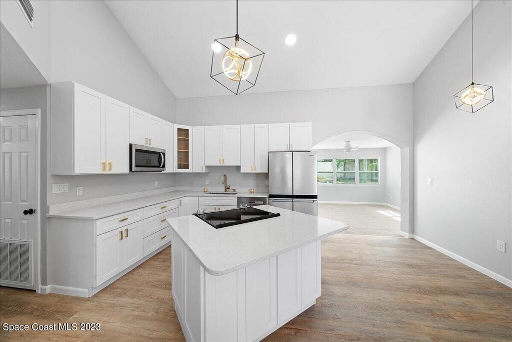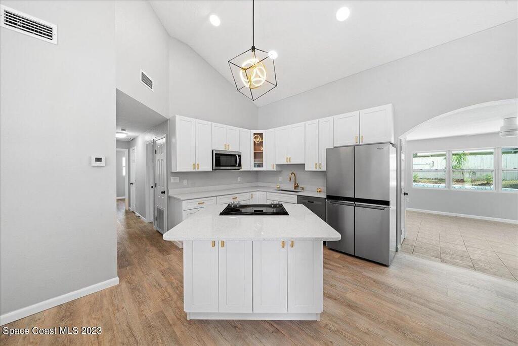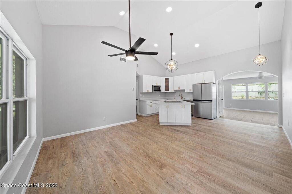 Located right down the street from EFSC, this completely remodeled pool home has four bedrooms and two bathrooms. As you enter the home you are greeted with vaulted ceilings and a brand new kitchen. The home features a split floor plan with an extra living space in the back as well as indoor laundry. New updates include roof, AC, flooring, kitchen, bathrooms, windows, hurricane shutters, and more.