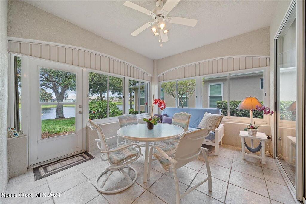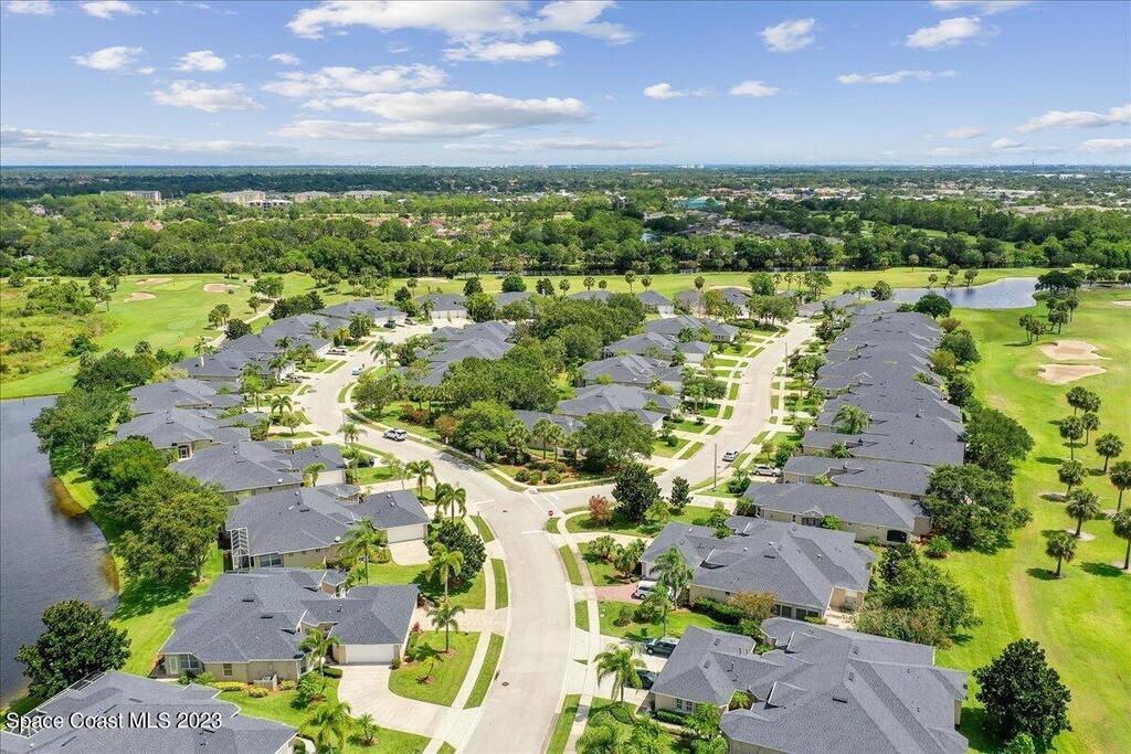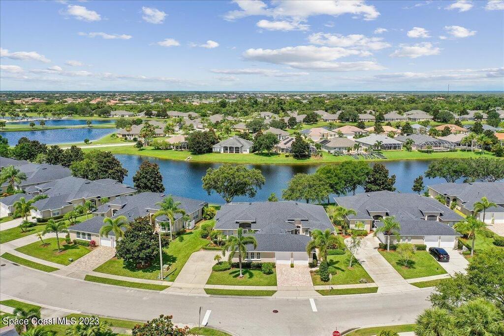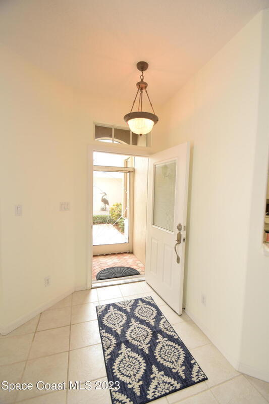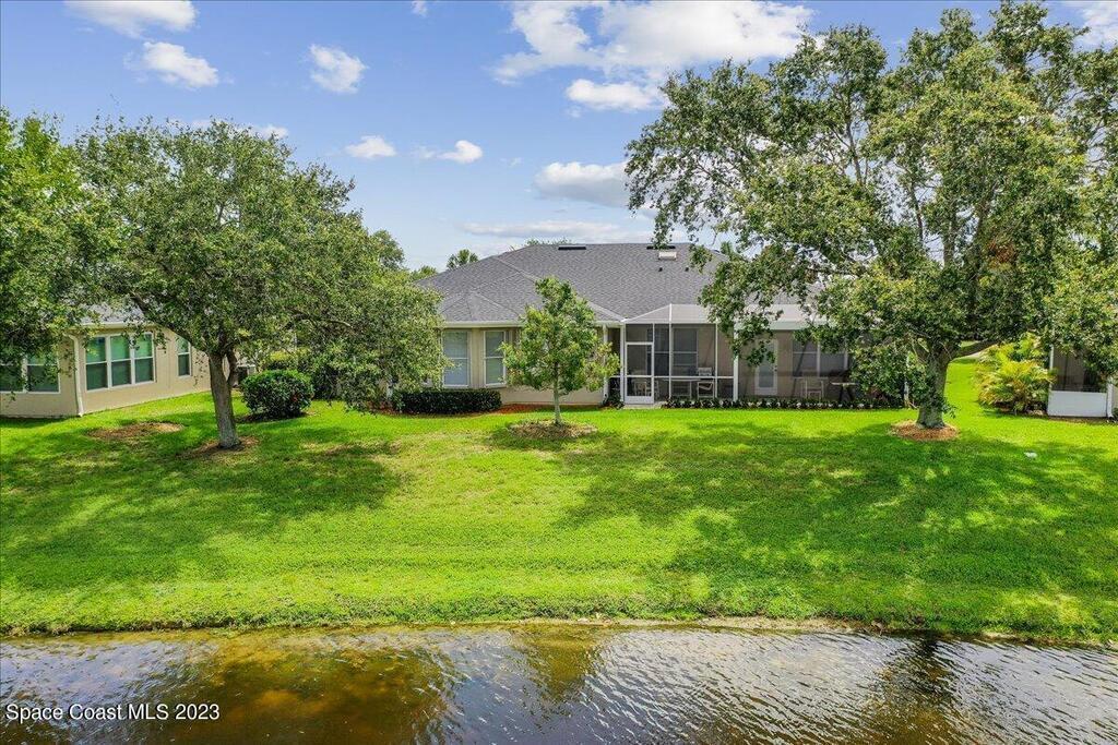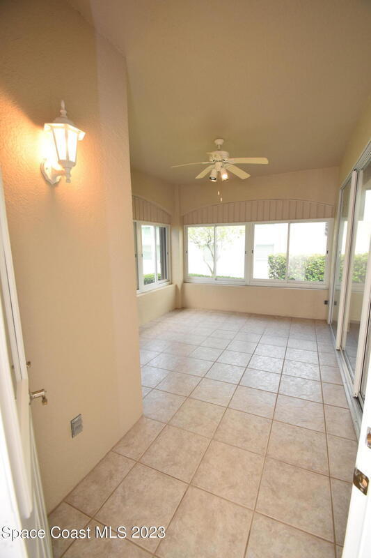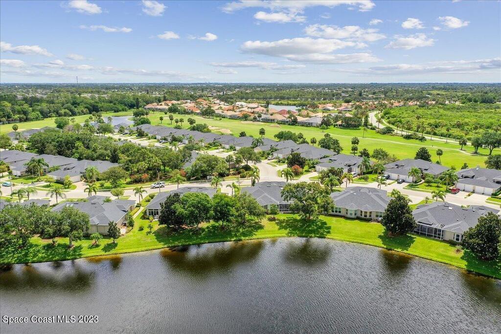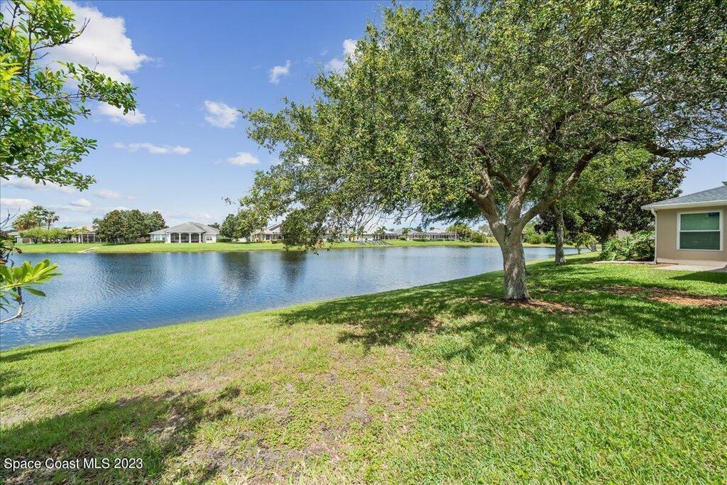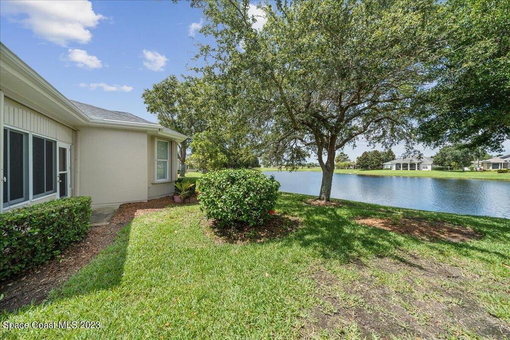 Welcome Home to this light and bright, spacious half-duplex located in the highly desirable community of Woodhall at Viera East Golf Club. This 3 Bedroom/2 Bath Home boasts a large kitchen with breakfast nook, prep island, ample cream-colored cabinetry, and beautiful quartz countertops. The open concept living area has cherry, engineered hardwood flooring and a triple slider leading to the enclosed porch. Enjoy the beautiful lake views from the living area, enclosed porch, and owner's suite. The owner's suite includes a shower, tub, and a large walk-in closet. This well-cared for, one owner home includes storm shutters and is ready for its new owners. HOA fees include lawn maintenance and roof replacement. Newer roof and A/C (approx. 2018), water heater 2022, garbage disposal 2023.