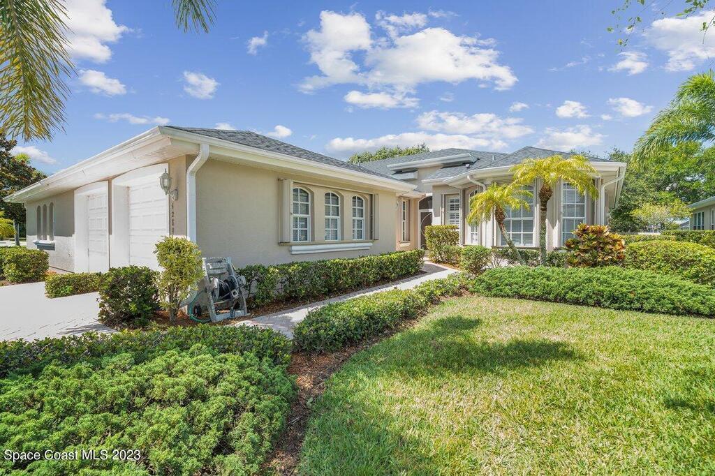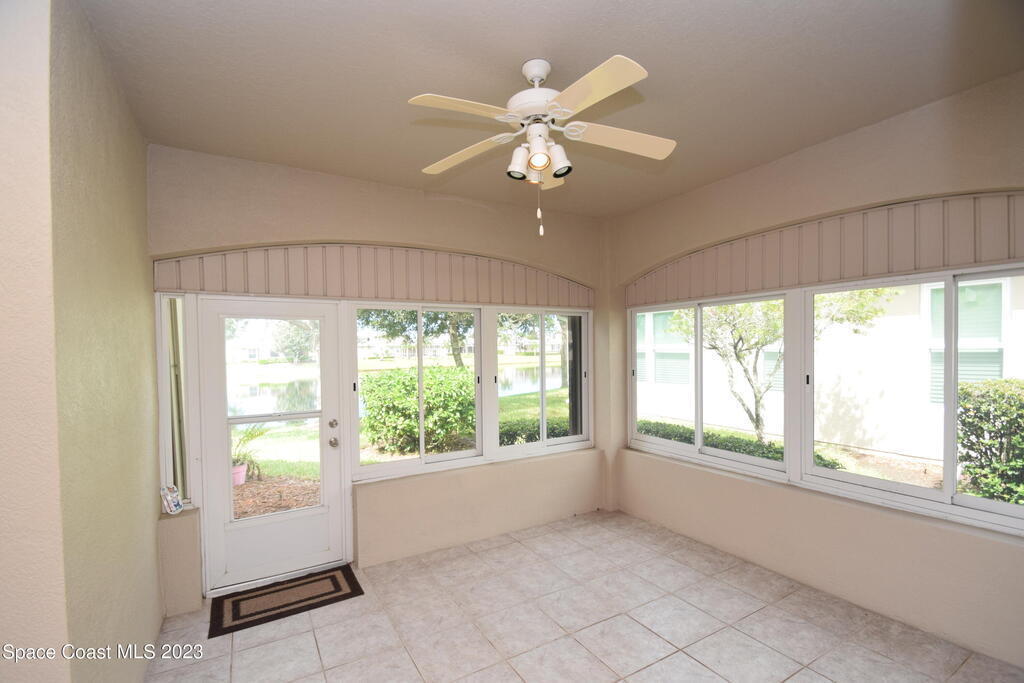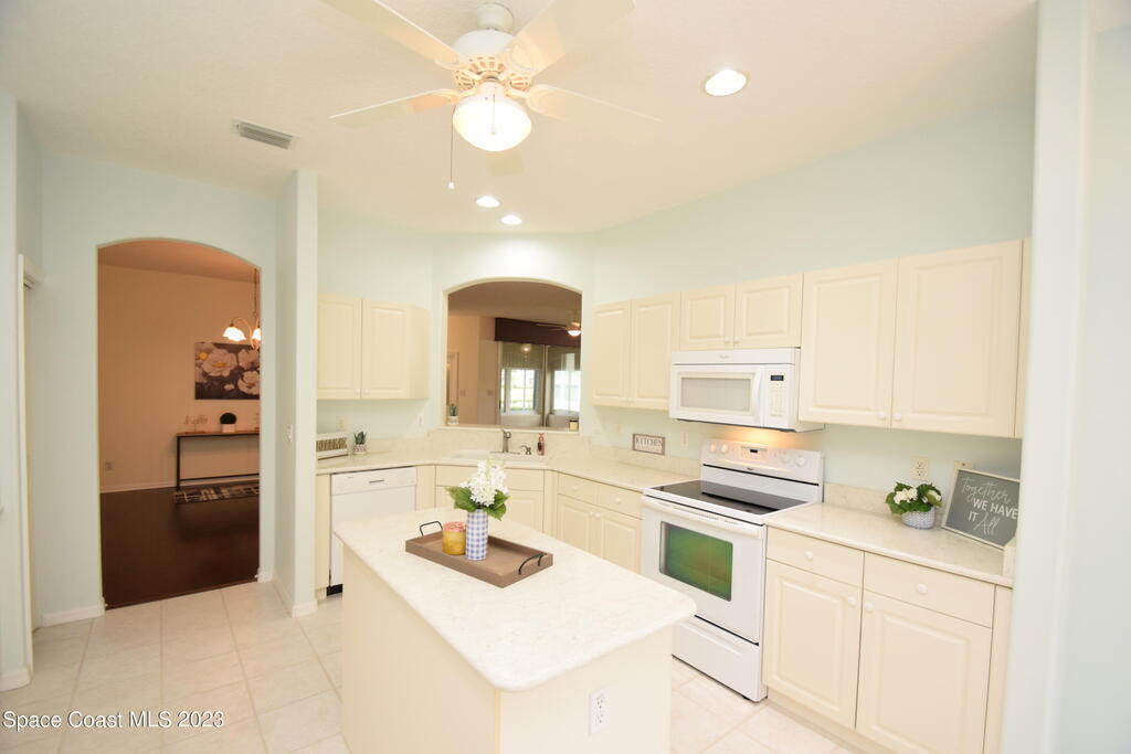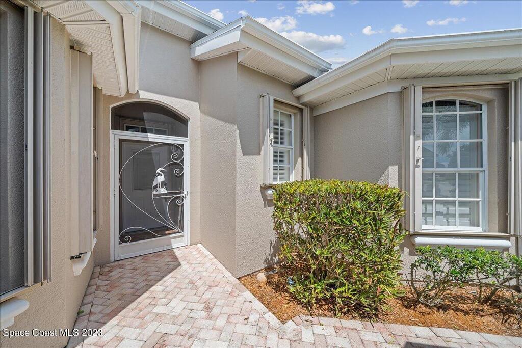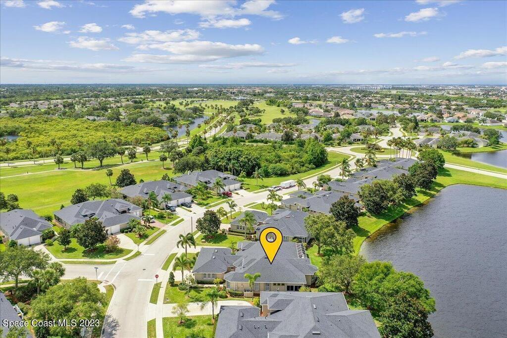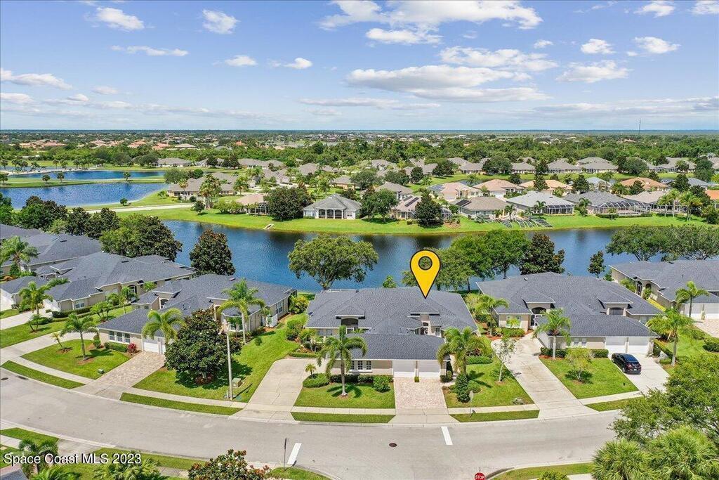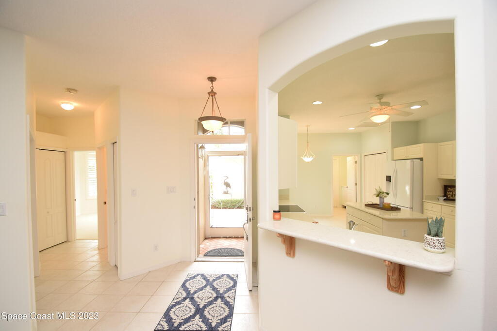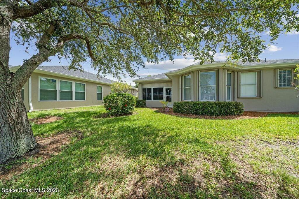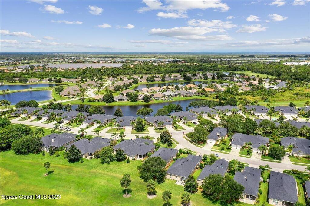 Welcome Home to this light and bright, spacious half-duplex located in the highly desirable community of Woodhall at Viera East Golf Club. This 3 Bedroom/2 Bath Home boasts a large kitchen with breakfast nook, prep island, ample cream-colored cabinetry, and beautiful quartz countertops. The open concept living area has cherry, engineered hardwood flooring and a triple slider leading to the enclosed porch. Enjoy the beautiful lake views from the living area, enclosed porch, and owner's suite. The owner's suite includes a shower, tub, and a large walk-in closet. This well-cared for, one owner home includes storm shutters and is ready for its new owners. HOA fees include lawn maintenance and roof replacement. Newer roof and A/C (approx. 2018), water heater 2022, garbage disposal 2023.