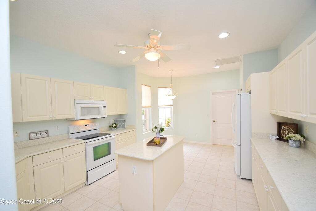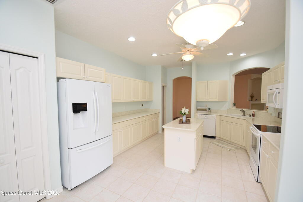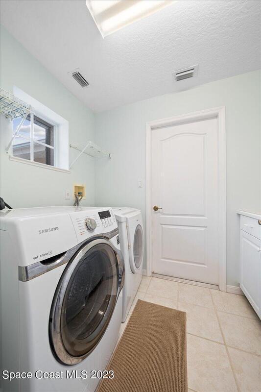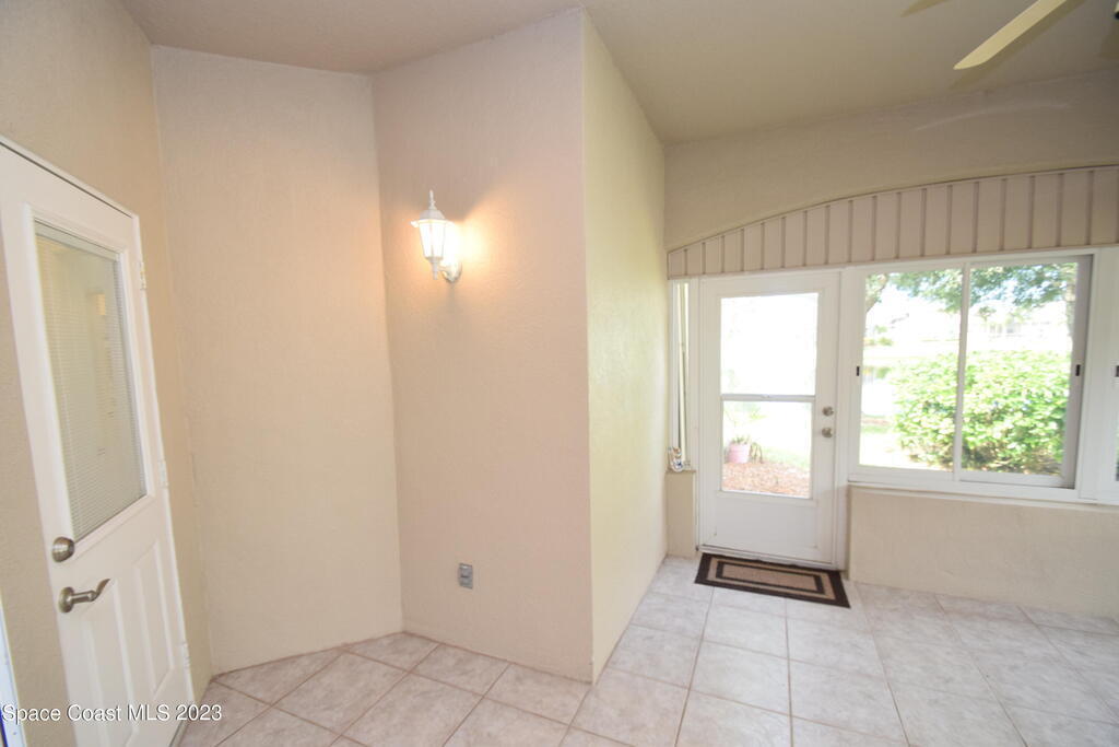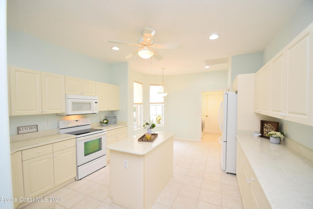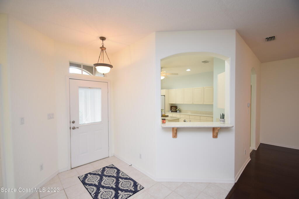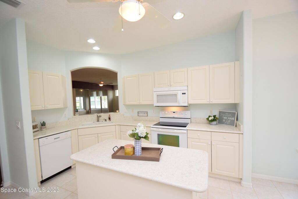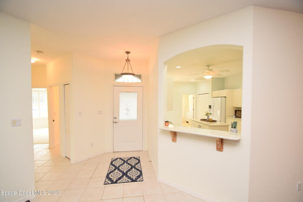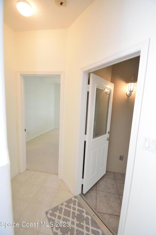 Welcome Home to this light and bright, spacious half-duplex located in the highly desirable community of Woodhall at Viera East Golf Club. This 3 Bedroom/2 Bath Home boasts a large kitchen with breakfast nook, prep island, ample cream-colored cabinetry, and beautiful quartz countertops. The open concept living area has cherry, engineered hardwood flooring and a triple slider leading to the enclosed porch. Enjoy the beautiful lake views from the living area, enclosed porch, and owner's suite. The owner's suite includes a shower, tub, and a large walk-in closet. This well-cared for, one owner home includes storm shutters and is ready for its new owners. HOA fees include lawn maintenance and roof replacement. Newer roof and A/C (approx. 2018), water heater 2022, garbage disposal 2023.