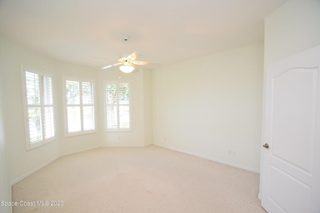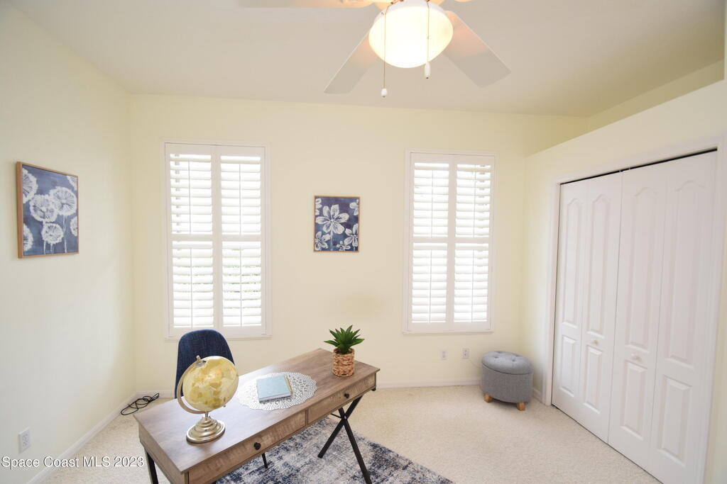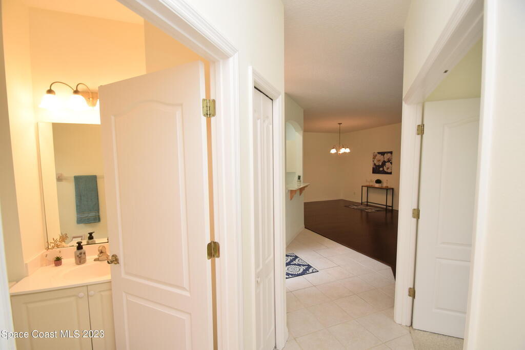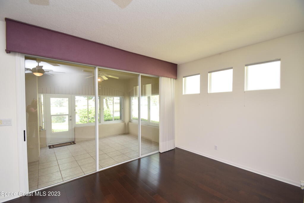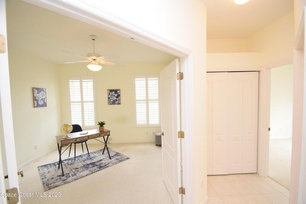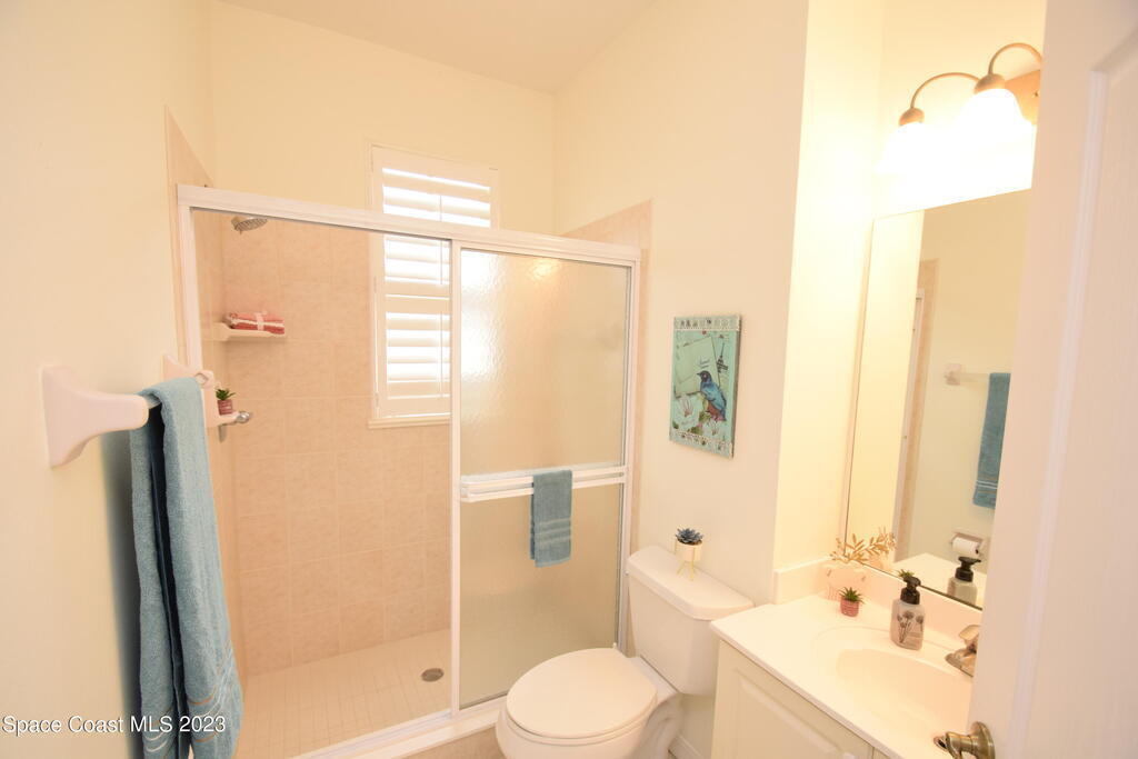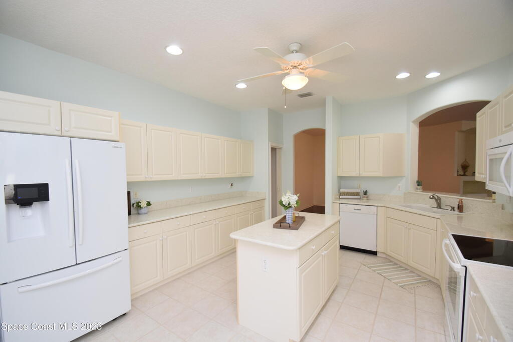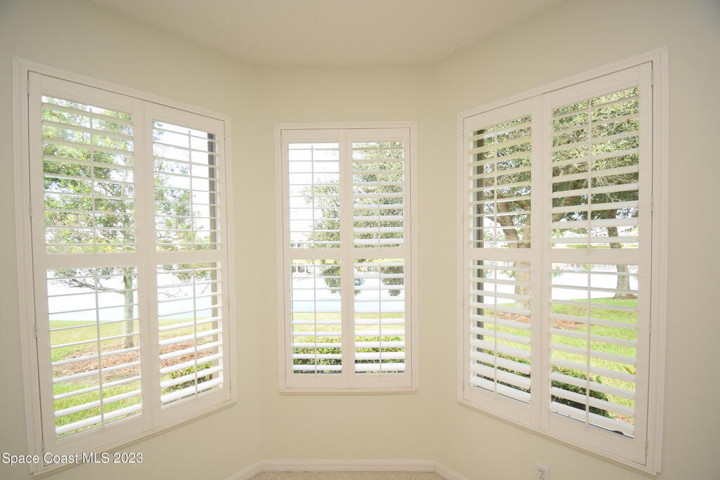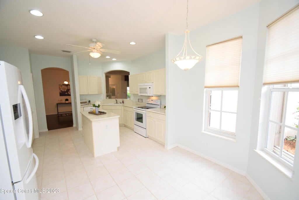 Welcome Home to this light and bright, spacious half-duplex located in the highly desirable community of Woodhall at Viera East Golf Club. This 3 Bedroom/2 Bath Home boasts a large kitchen with breakfast nook, prep island, ample cream-colored cabinetry, and beautiful quartz countertops. The open concept living area has cherry, engineered hardwood flooring and a triple slider leading to the enclosed porch. Enjoy the beautiful lake views from the living area, enclosed porch, and owner's suite. The owner's suite includes a shower, tub, and a large walk-in closet. This well-cared for, one owner home includes storm shutters and is ready for its new owners. HOA fees include lawn maintenance and roof replacement. Newer roof and A/C (approx. 2018), water heater 2022, garbage disposal 2023.