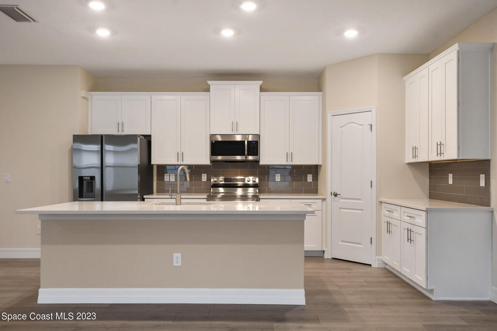 Construction about to be finalized on this stunning 4-bedroom 3-bathroom 2 car garage home in a central location! Builder didn't scale back any finishes with upgraded design options including stainless-steel Samsung appliance package w/ washer and dryer, water and scratch resistant Revwood flooring throughout the common areas, Calacatta White Quartz countertops, and designer tile bathrooms. The owner's retreat features His & Hers walk-in closets, dual sink vanity, stunning shower with glass enclosure, and tray ceiling. Guest bathroom also features a dual sink vanity and tub/shower combo with floor to ceiling tile. Bedroom with en-suite bathroom is perfect for a guest room or can be used as in-law suite. You will fall in love with this modern, light and bright, open layout!