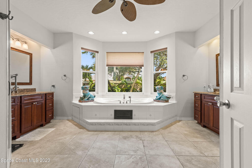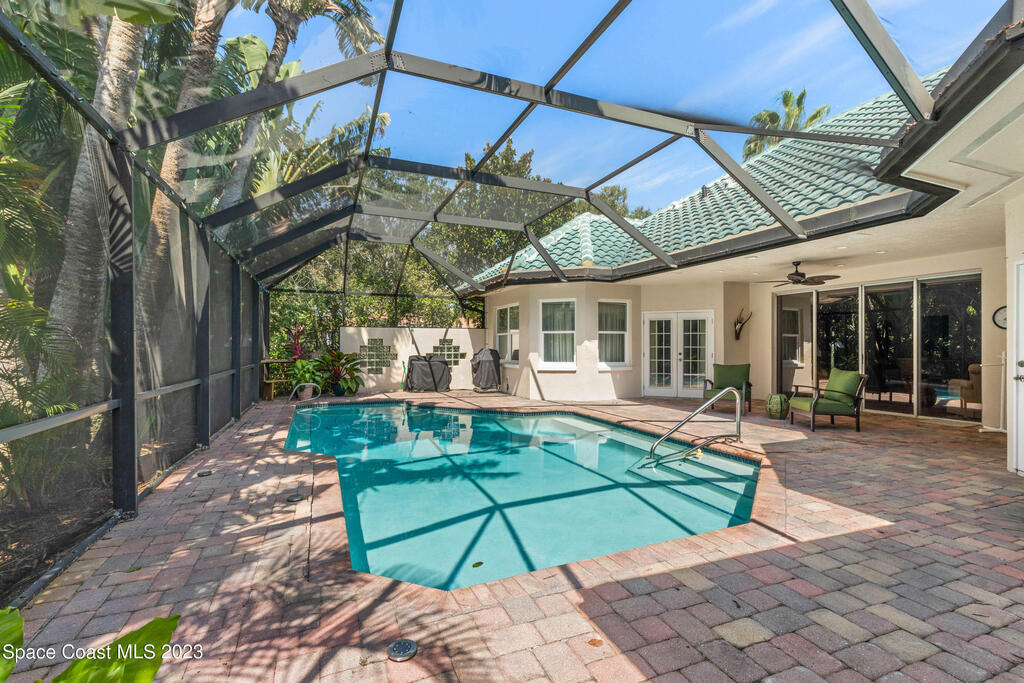 Beautiful pool home located in Indialantic's most prestigious gated community, The Cloisters. This 3 bedroom 2 and a half bathroom home is perched on a corner lot surrounded by matured landscaping that creates a private feel. Step inside, and you'll be immediately captivated by the open-concept design, flooded with natural light. The spacious kitchen is perfect for entertaining featuring Granite countertops, plenty of storage, center island with cooktop, and stainless steel appliances. The extra large master suite is an excellent space to unwind - featuring his and hers walk-in closets, a light and bright en-suite bathroom, and exterior door with convenient access to the pool.