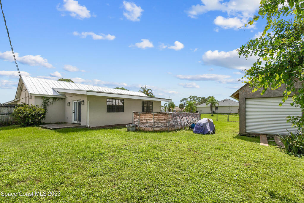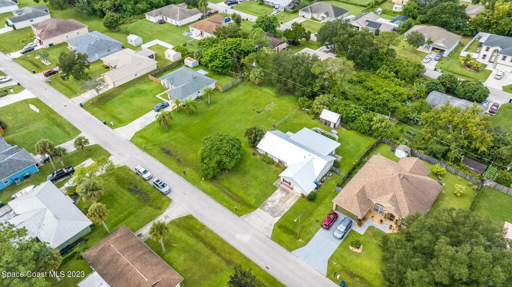 MOTIVATED SELLERS! Double lot in Palm Bay on sewer and city water!! Lot can be divided or kept as is. This home features 4 Bedrooms, 2 Baths, 1 car garage and a spacious 28x13 family room. Look at this list of improvements, roof replacement 2022, air conditioner 2022, water heater 2021 and electrical panel in 2021. Appliances are 2020 with a gas range. The whole home has been re-plumbed in 2022 for years of worry free living. Storage shed has new roof and plenty room for toys and extra storage. Close access to highways, schools, restaurants and shopping too! The extra lot can be split by the property appraisers office with a form.