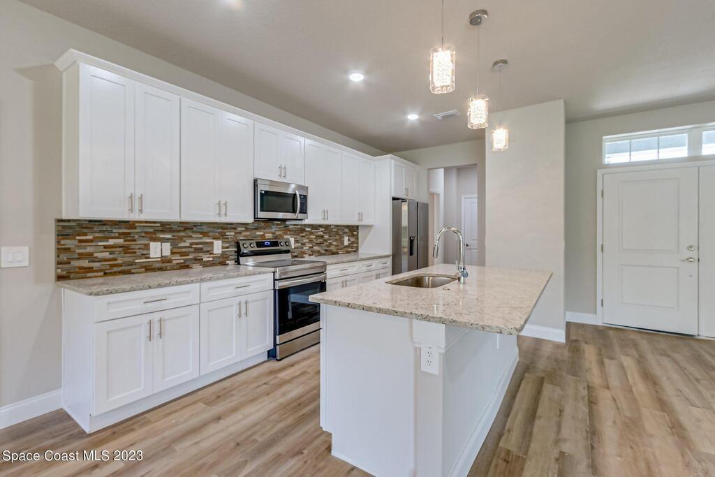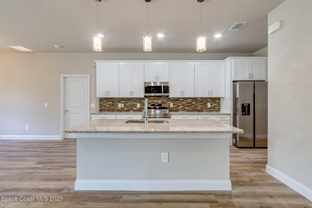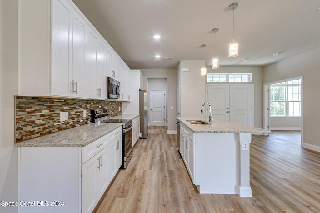 Move in Ready! This Villa Porto plan features an open foyer with den /office as you enter the home. Open plan with large kitchen, dining room and great room with coffered ceiling & sliders to the covered lanai. Gorgeous kitchen has granite counters and an island for extra seating. 42'' uppers, stainless appliances including refrigerator. Luxury vinyl plank throughout main living area and bedrooms. The owners suite offers a walk in shower with glass enclosure and designer tile finishes. Step from your walk in closet into the spacious laundry room. An adjacent half bath is perfect for guests. Nice size guest bedrooms & luxurious guest bath on the other side of the house. Plus, an oversized 2 car garage for additional storage. Ask about preferred lender incentives.