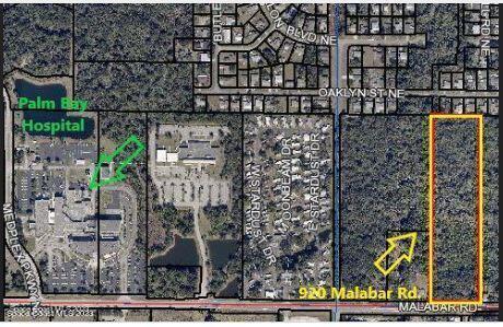 Incredible opportunity to own 9.5+ acres on Malabar Rd. Current zoning is RR65 (single family with 1.5 acre lots). Malabar has indicated that they would allow rezoning to OI (Office Institutional). This property is just East of the Palm Bay hospital and OI allows for doctors offices. Currently there is a small 2/1 house being rented out but the value is in the land. The property is absolutely gorgeous with mature oaks and a small stream.