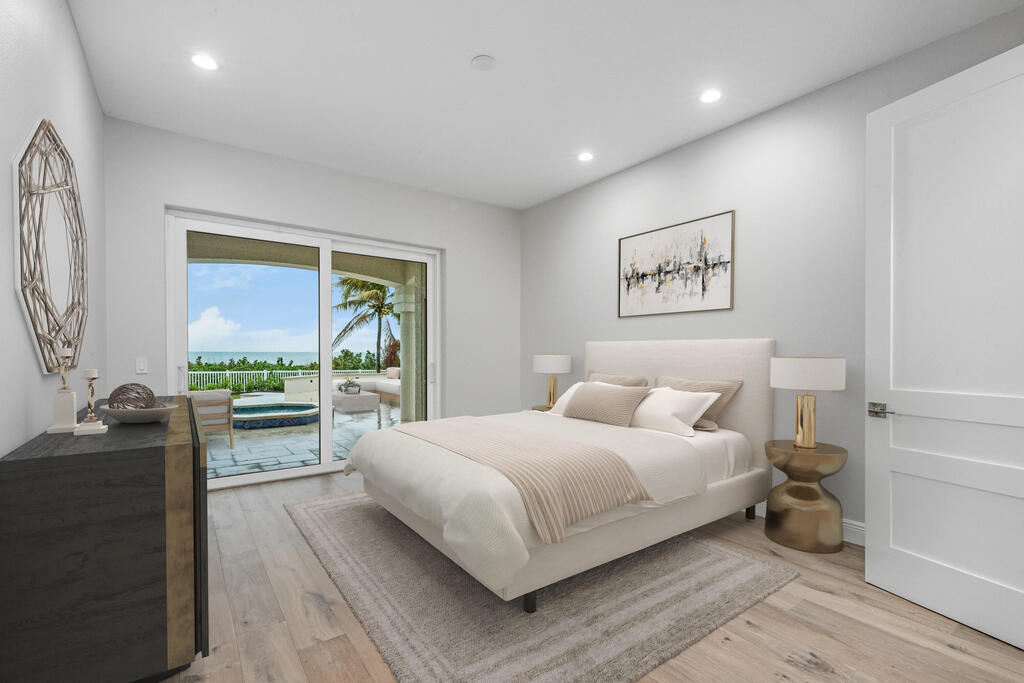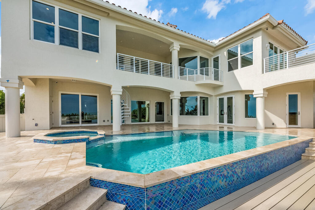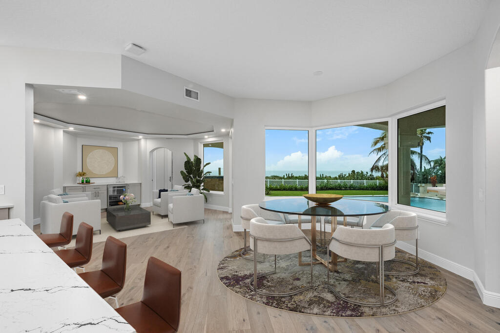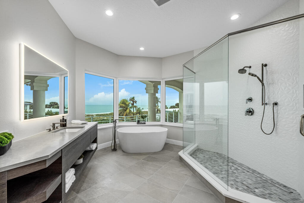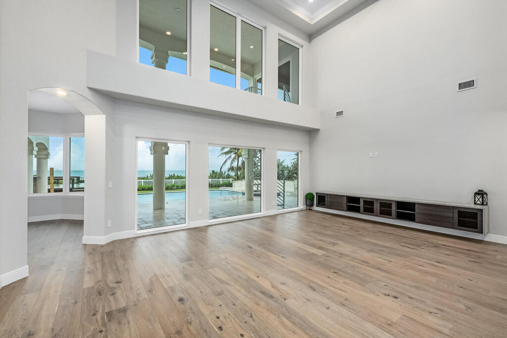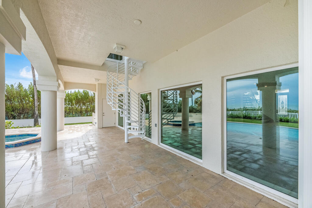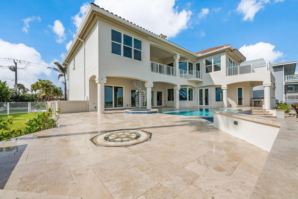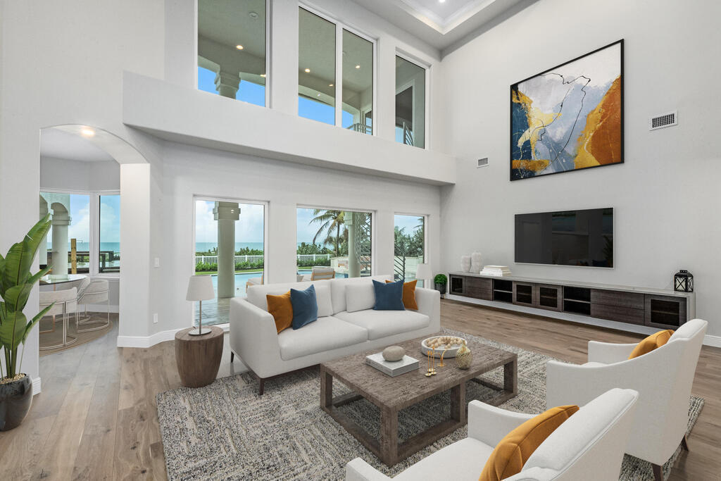 Welcome to this exquisite custom-built home, constructed in 1996, offering a generous living space of 4,758 sq ft. Nestled on a .58-acre lot with 100 feet of oceanfront, this property provides an idyllic coastal living. Recently remodeled and redesigned, this home showcases a modern aesthetic and impeccable craftsmanship. The highlight of the interior is the custom-built monostringer staircase, featuring 4'' white oak floating treads and elegant clear glass railings. This architectural masterpiece adds a touch of sophistication and serves as a focal point of the home. With two primary bedrooms, one on the main floor and another on the second floor, this home offers flexibility and convenience. The second-floor bedroom can be easily accessed via an elevator ensuring ease of movement throughout the home.The gourmet kitchen is a chef's dream, equipped with top-of-the-line Subzero refrigerator and Viking cooking appliances. The kitchen's open concept design allows for seamless