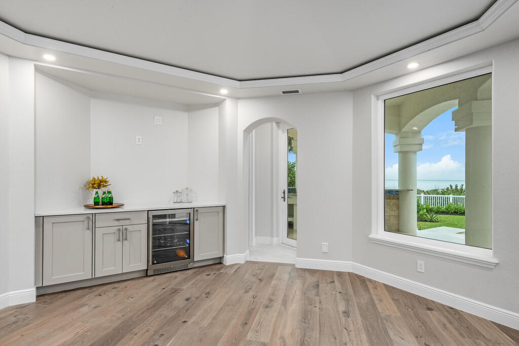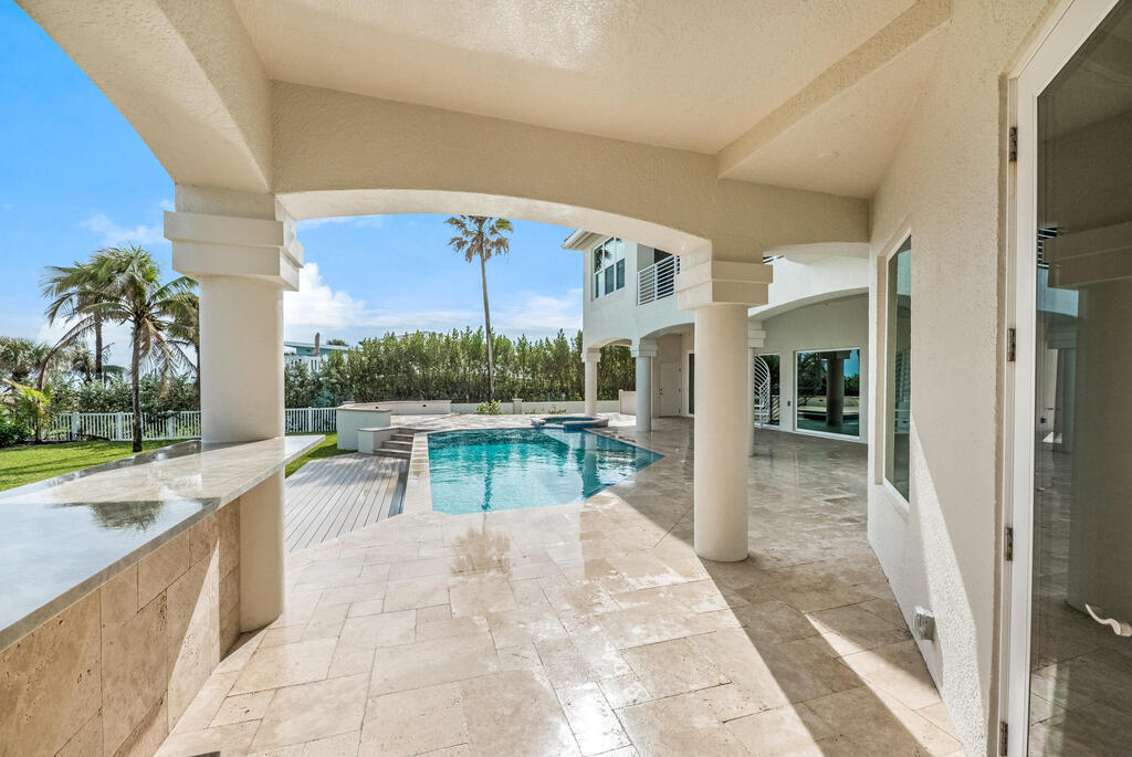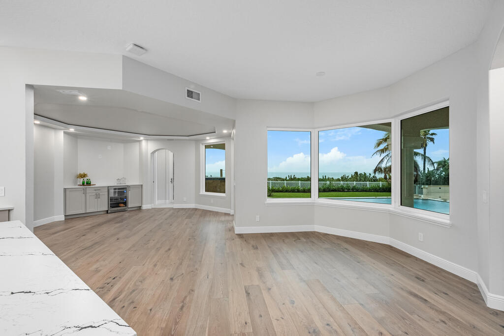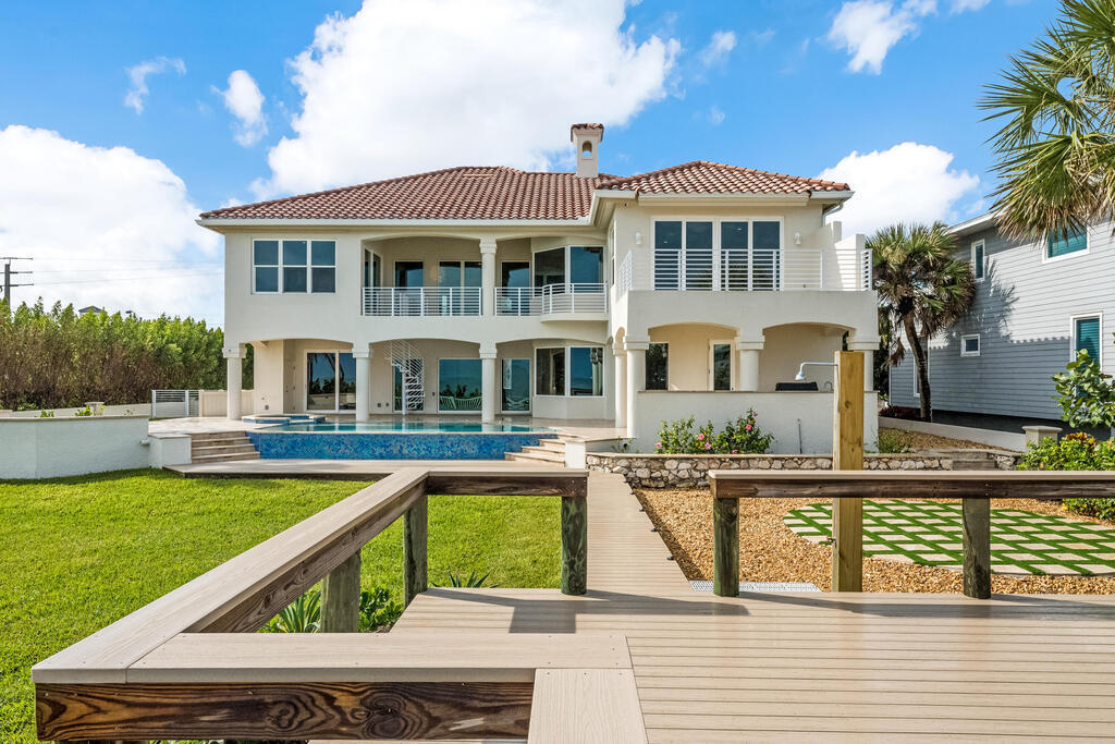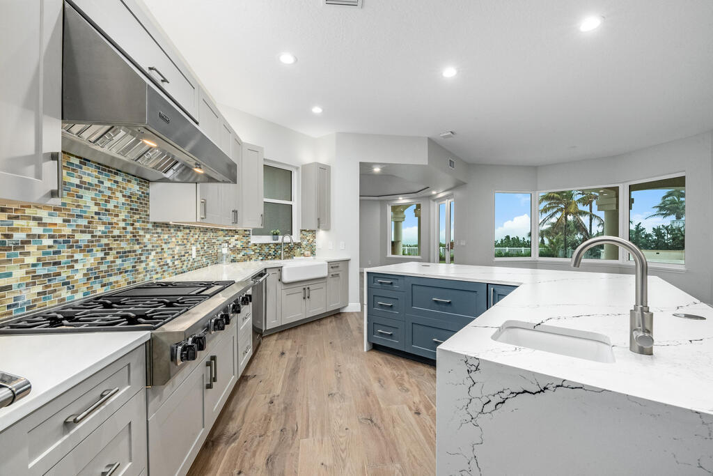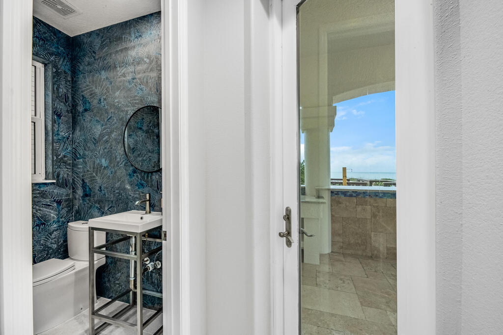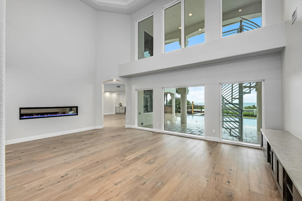 Welcome to this exquisite custom-built home, constructed in 1996, offering a generous living space of 4,758 sq ft. Nestled on a .58-acre lot with 100 feet of oceanfront, this property provides an idyllic coastal living. Recently remodeled and redesigned, this home showcases a modern aesthetic and impeccable craftsmanship. The highlight of the interior is the custom-built monostringer staircase, featuring 4'' white oak floating treads and elegant clear glass railings. This architectural masterpiece adds a touch of sophistication and serves as a focal point of the home. With two primary bedrooms, one on the main floor and another on the second floor, this home offers flexibility and convenience. The second-floor bedroom can be easily accessed via an elevator ensuring ease of movement throughout the home.The gourmet kitchen is a chef's dream, equipped with top-of-the-line Subzero refrigerator and Viking cooking appliances. The kitchen's open concept design allows for seamless